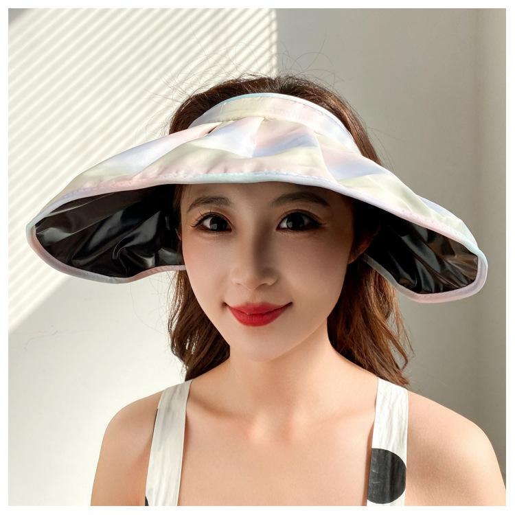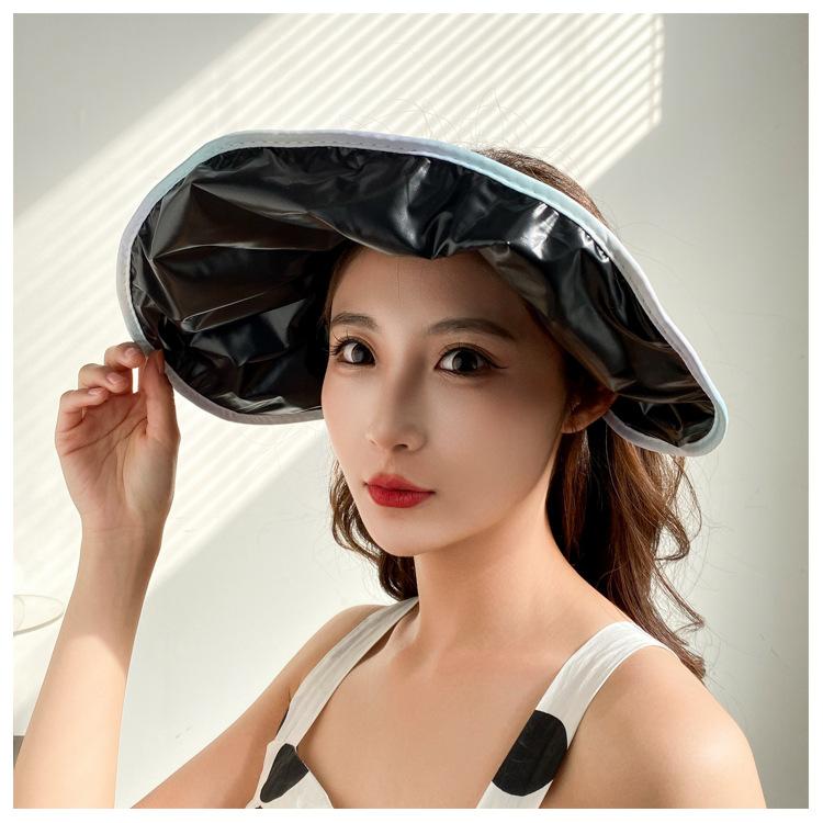 Compra Sombrero Visera de Goma Negra para Mujer Verano Transpirable Sombrero de Copa Vacía para Viaje Vacaciones Playa Sombrero Anti-UV Sombrero Protector Solar para Mujer al por mayor en Joom.pro