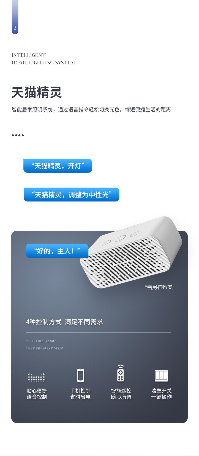 Smart three colors, Stepless dimming (upgraded version can be used with tmall elf), Offline clouds