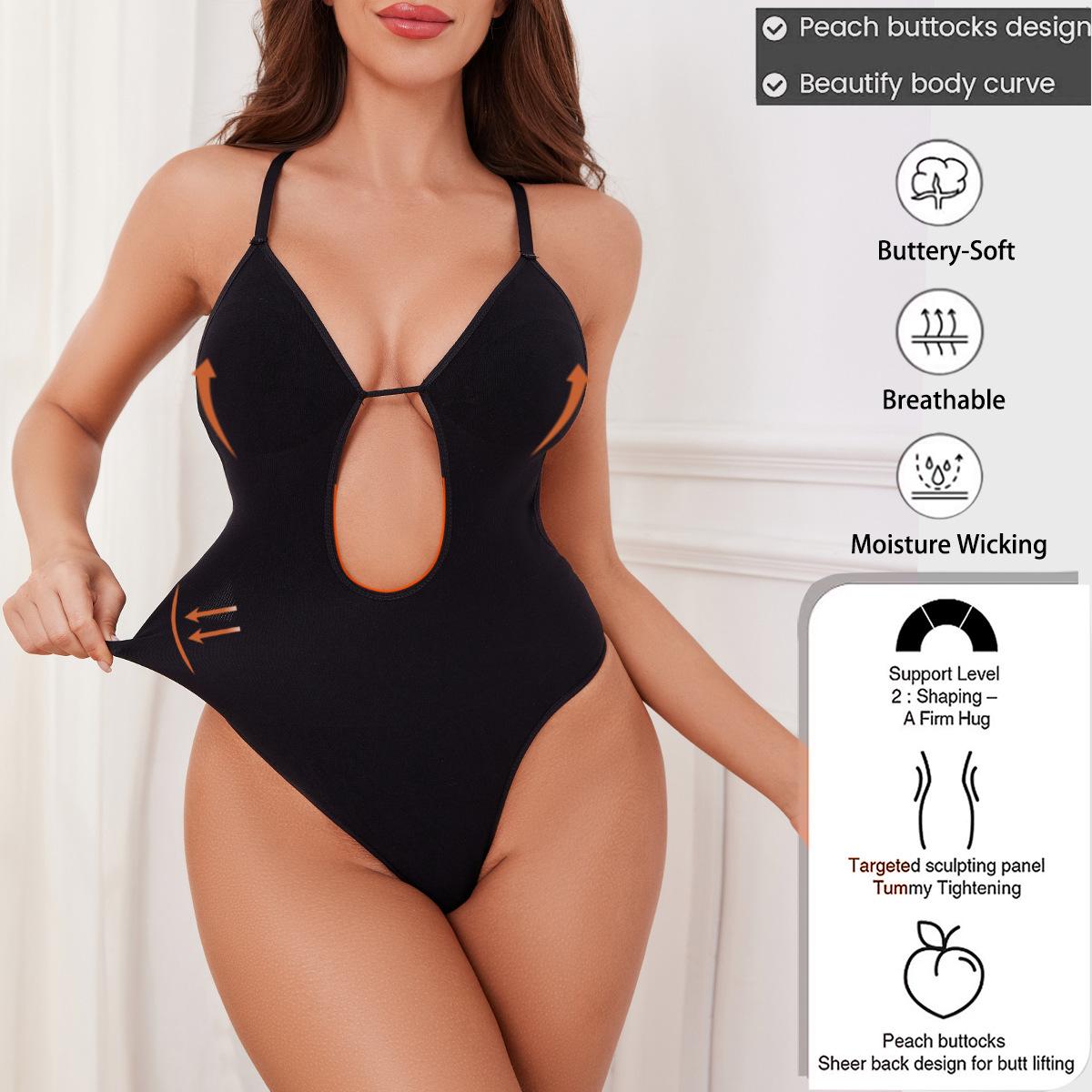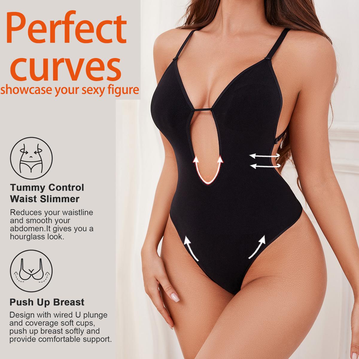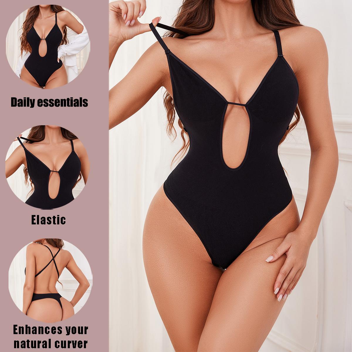 Body Reductor Seamless Europeo y Americano Transfronterizo con Profundo Escote en V, Vestido Interior sin Espalda, Cinturilla Moldeadora de Cintura, Tanga Levanta Glúteos, Faja Moldeadora Ajustada