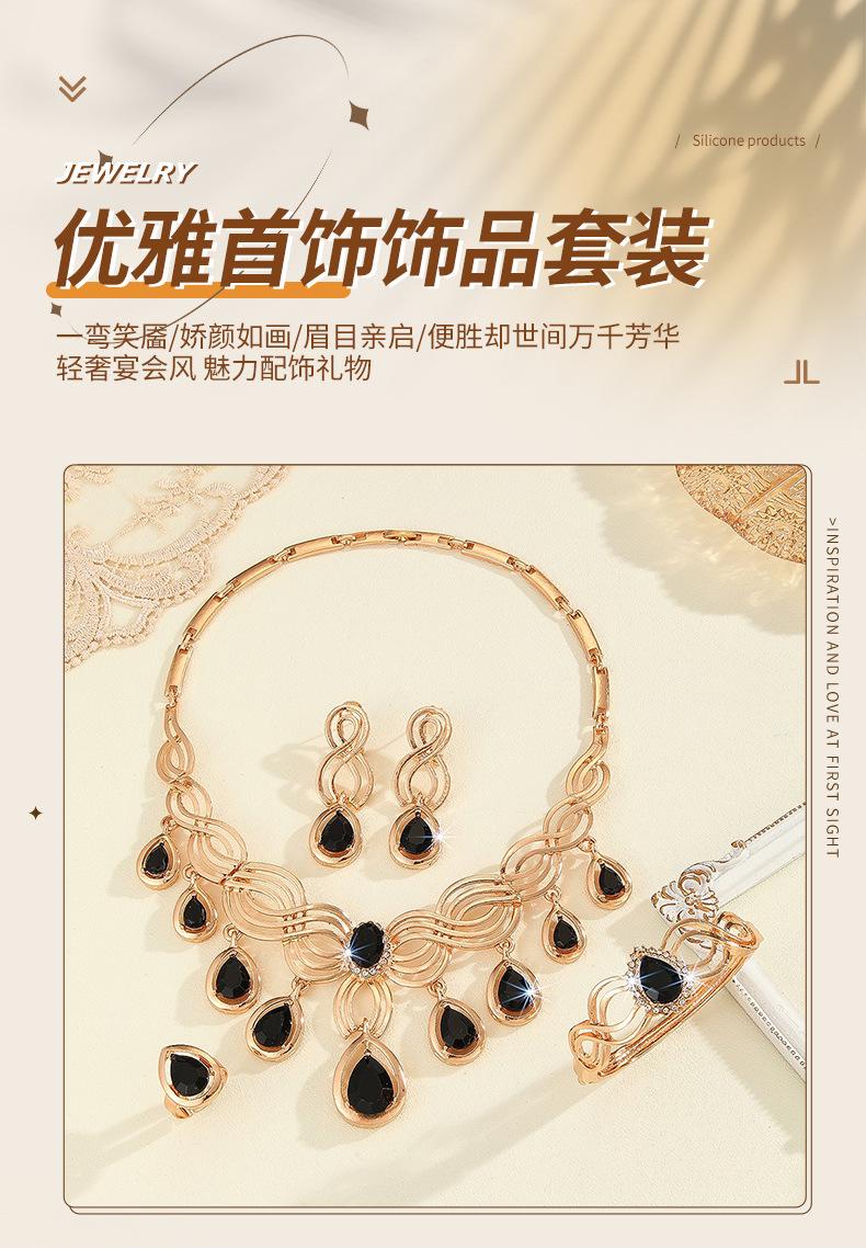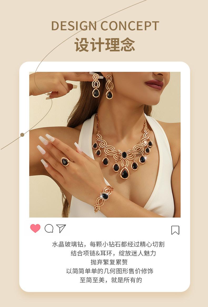 Collar, pendientes, anillo y pulsera de resina negra exagerada de moda europea y americana, conjunto de cuatro piezas, joyería de boda para mujer.