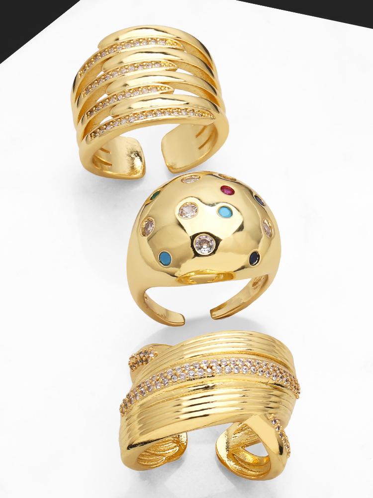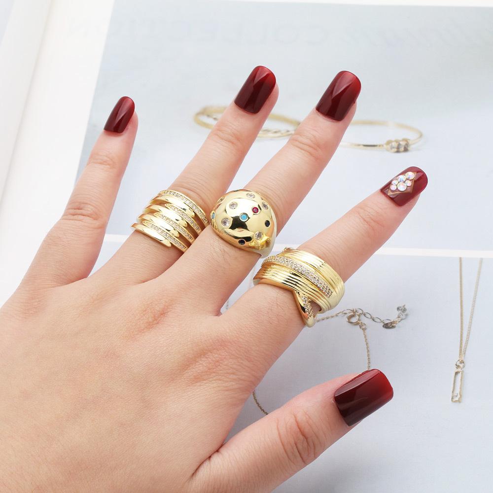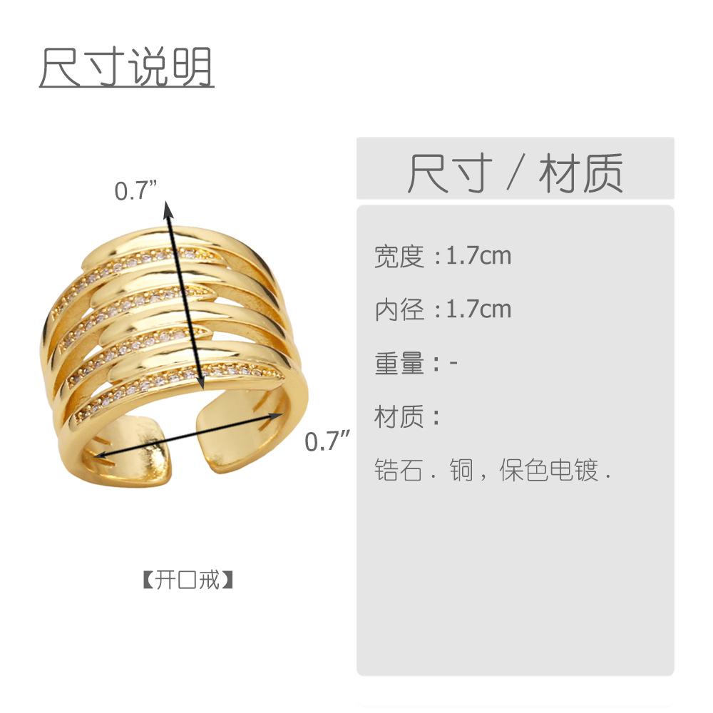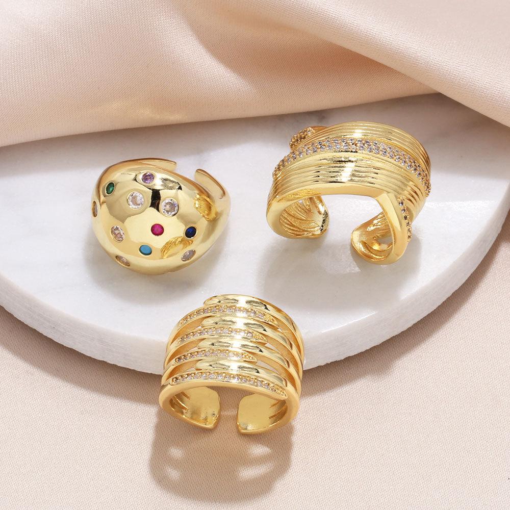 Anillo Asimétrico de Doble Capa de Moda Transfronteriza Europea y Americana para Mujer Estilo Frío Ins con Circonita Anillo Chapado en Oro Joyería Rh41