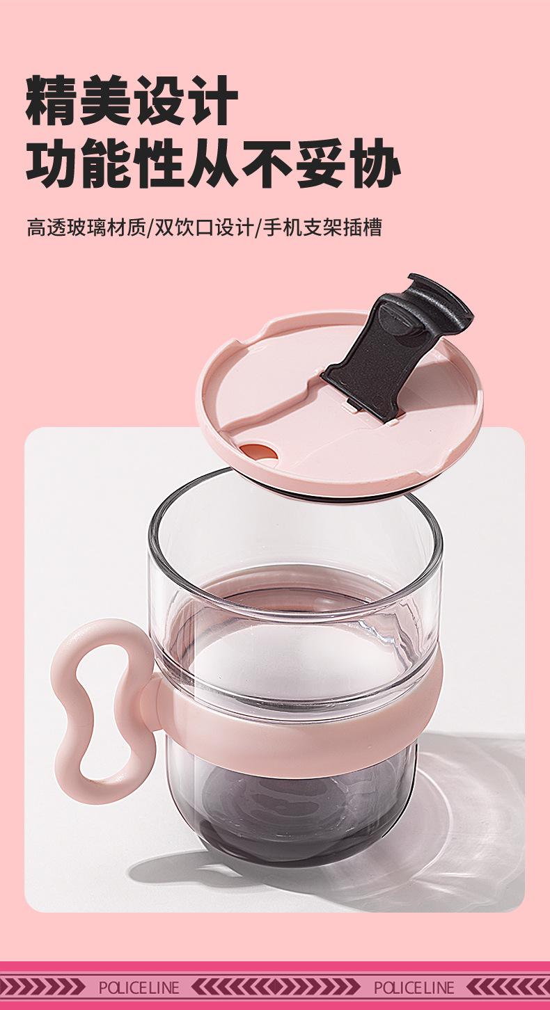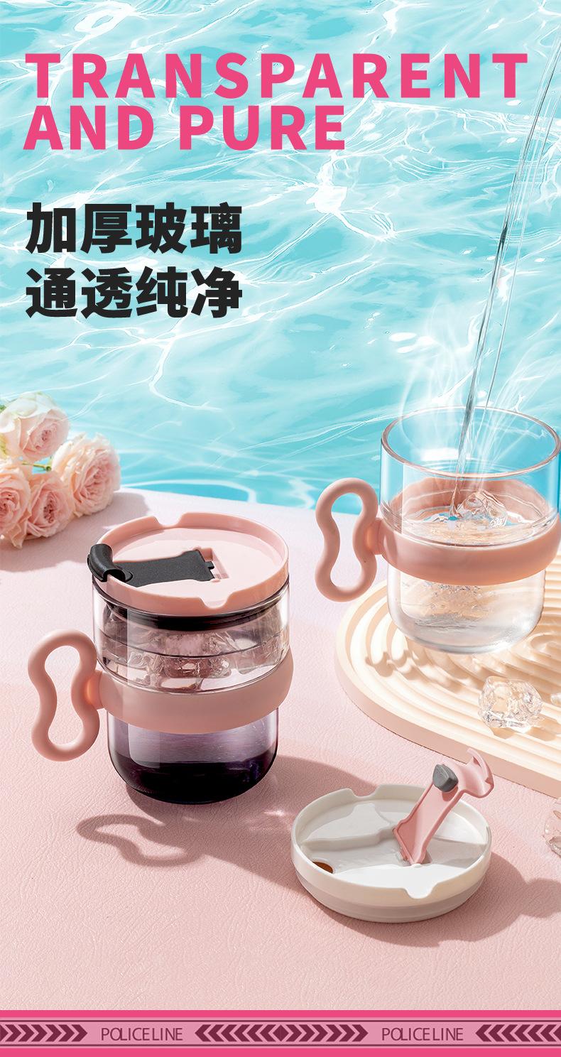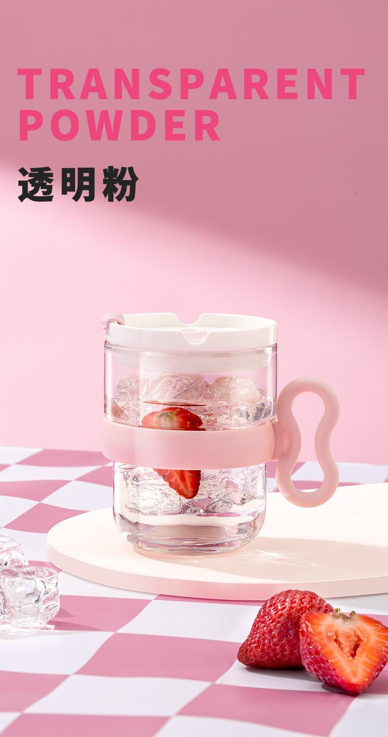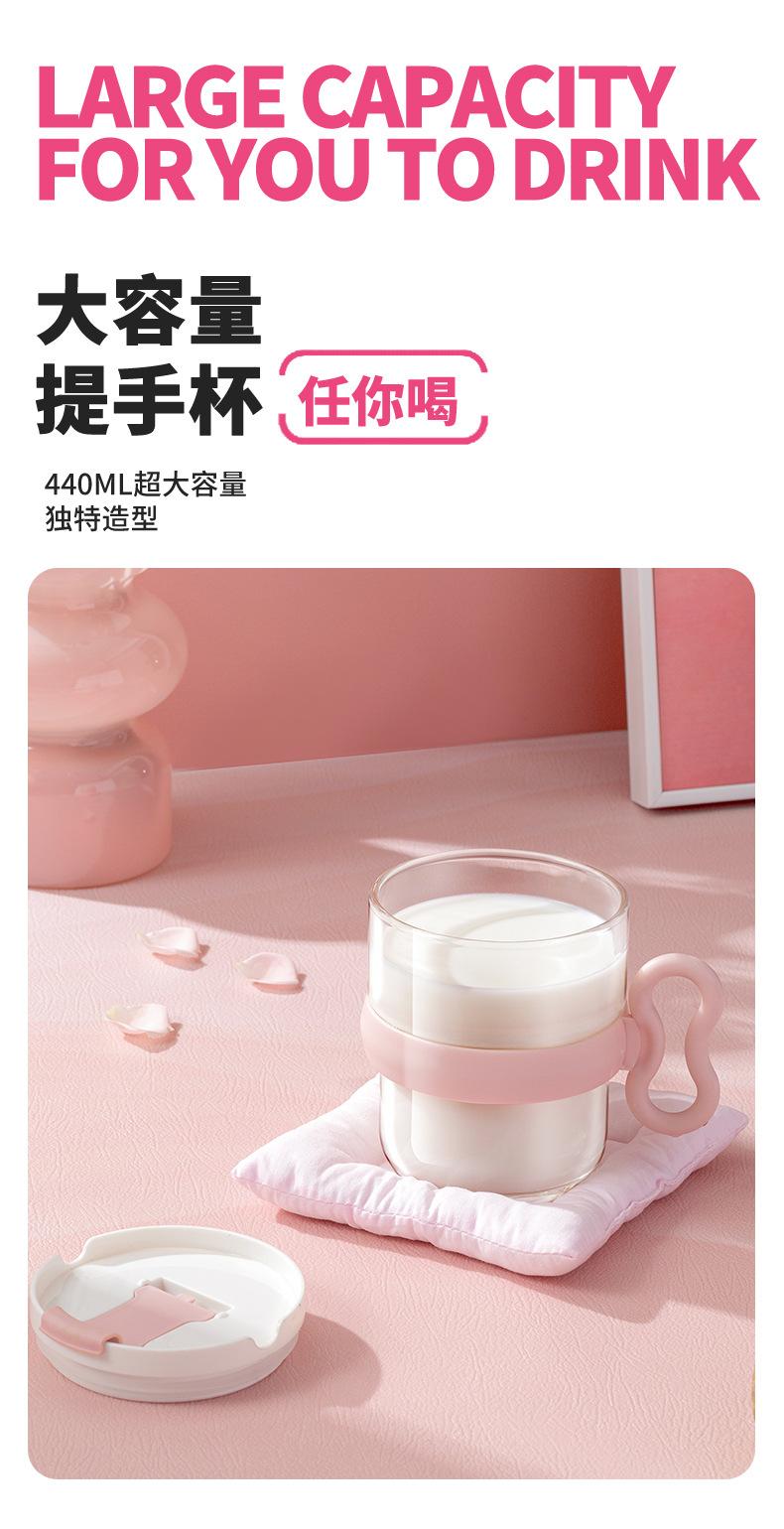Taza de vidrio con asa, taza de agua de alta apariencia, taza de leche premium para mujer con tapa, taza de vidrio para el desayuno doméstico con ventosa, regalo