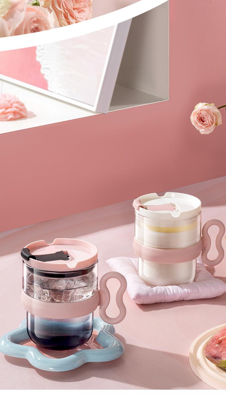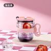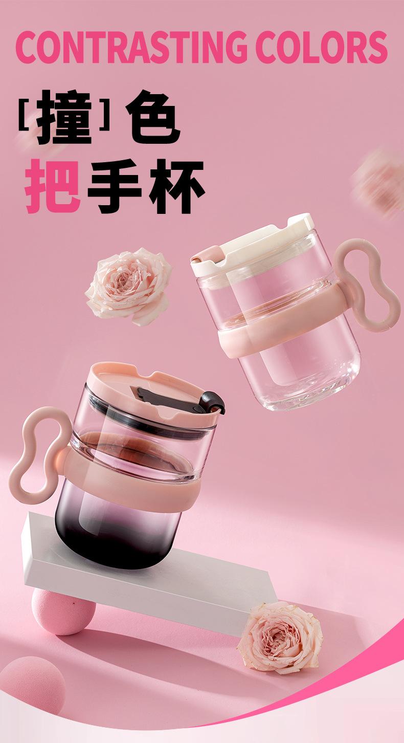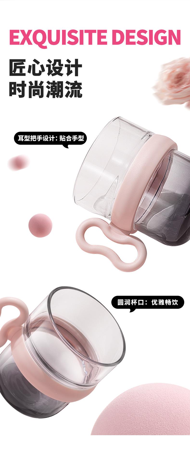 Taza de vidrio con asa, taza de agua de alta apariencia, taza de leche premium para mujer con tapa, taza de vidrio para el desayuno doméstico con ventosa, regalo