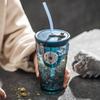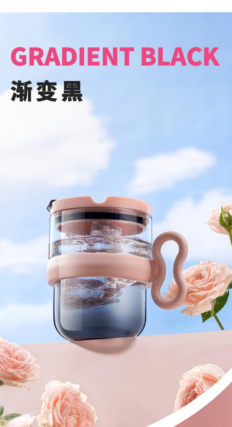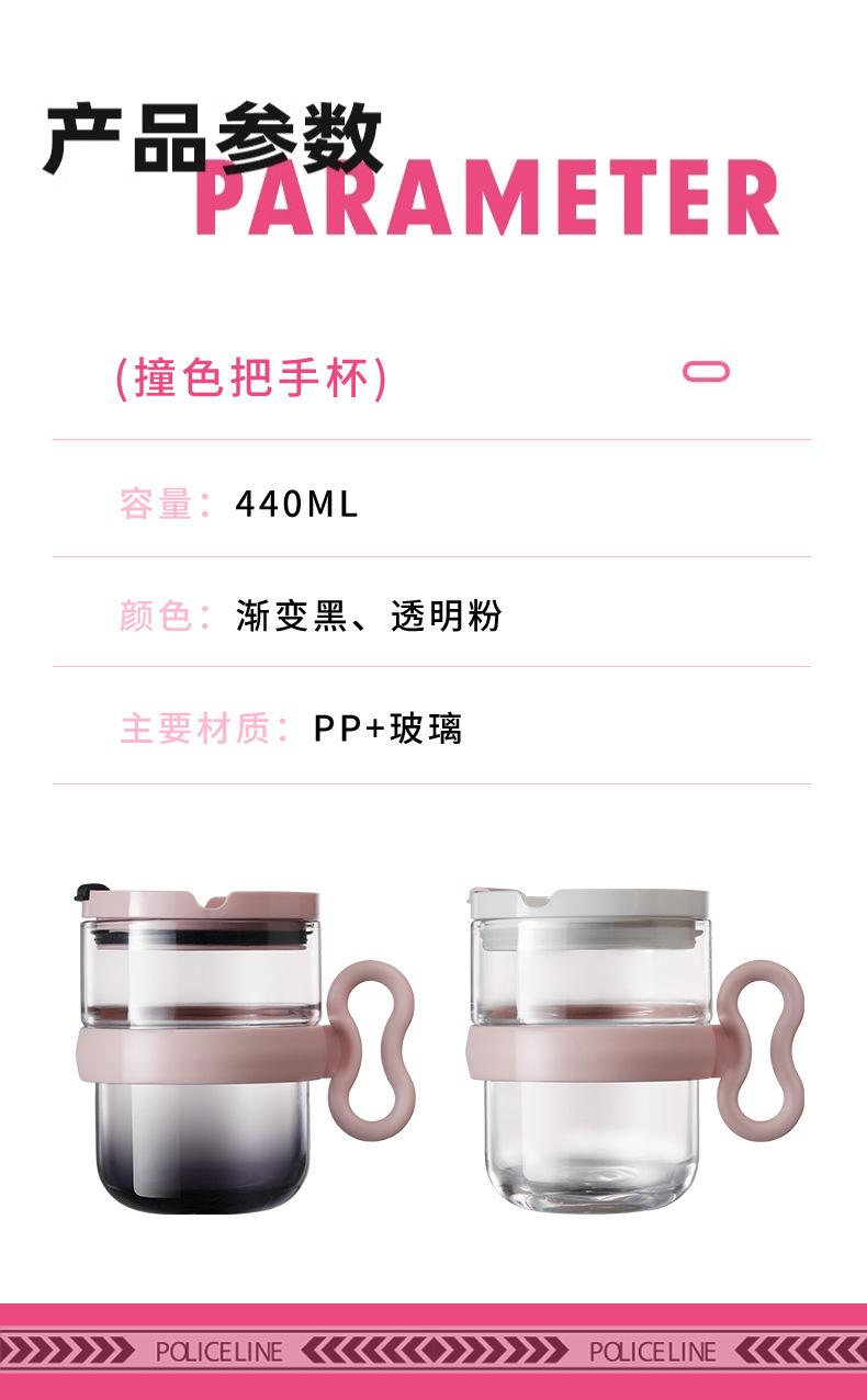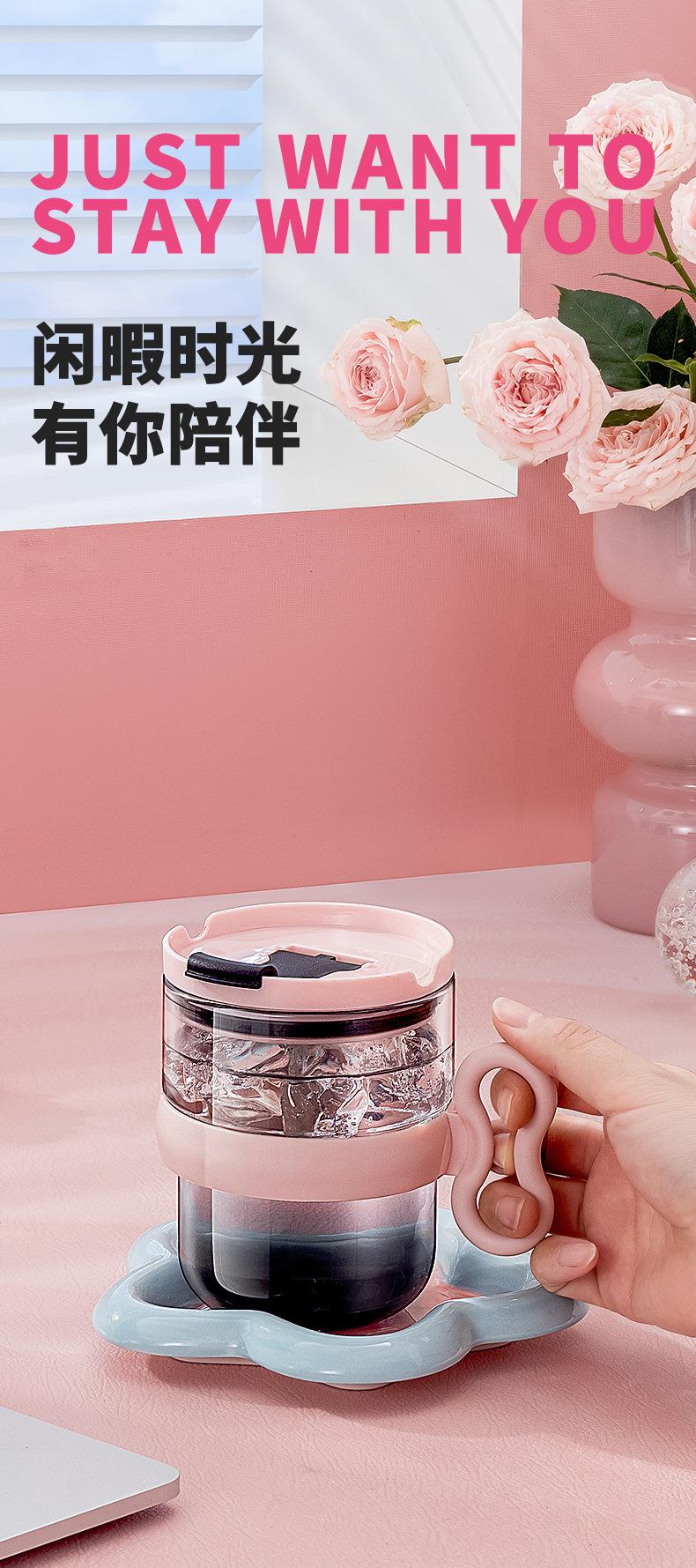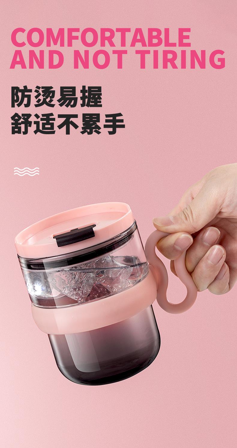 Taza de vidrio con asa, taza de agua de alta apariencia, taza de leche premium para mujer con tapa, taza de vidrio para el desayuno doméstico con ventosa, regalo