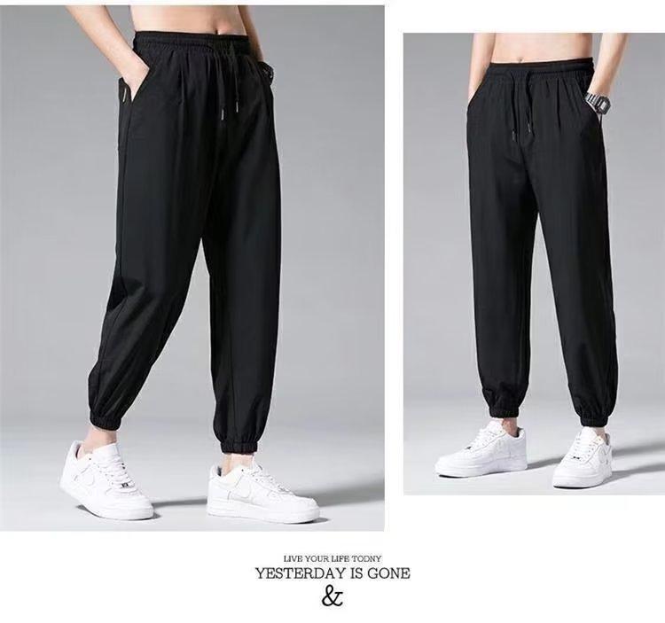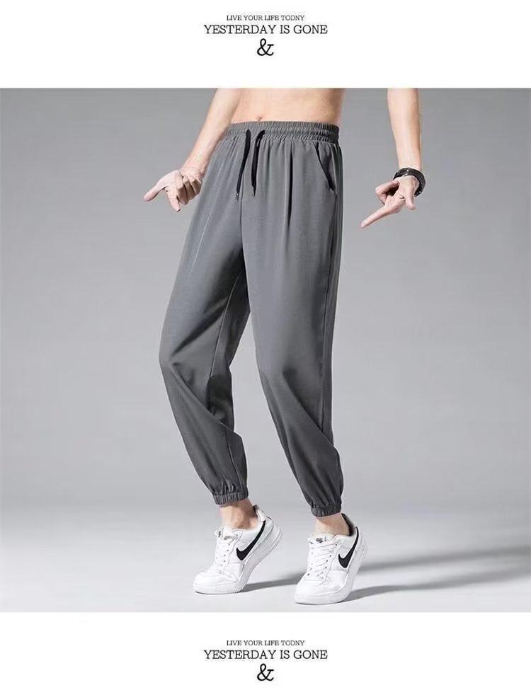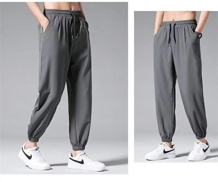 Pantalones deportivos holgados de seda de hielo para hombre, de verano, ligeros, con aire acondicionado, de color liso, cortos, informales