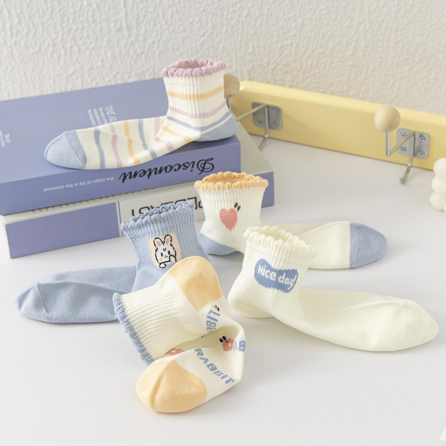 Calcetines de otoño e invierno, calcetines de encaje para mujer, absorbentes del sudor, transpirables, antibacterianos, lindos, estilo dulce, calcetines de algodón versátiles y de moda para estudiantes.