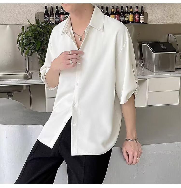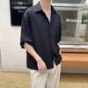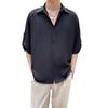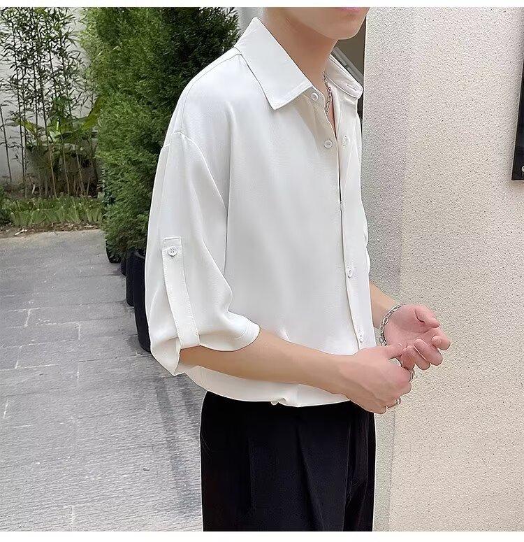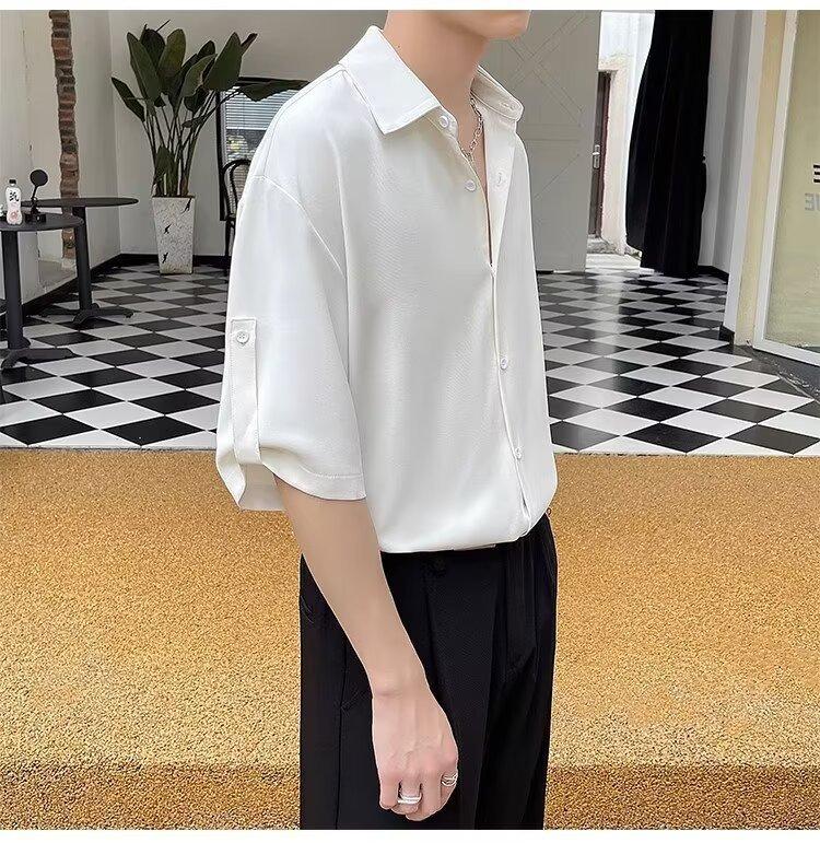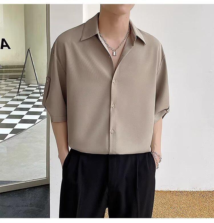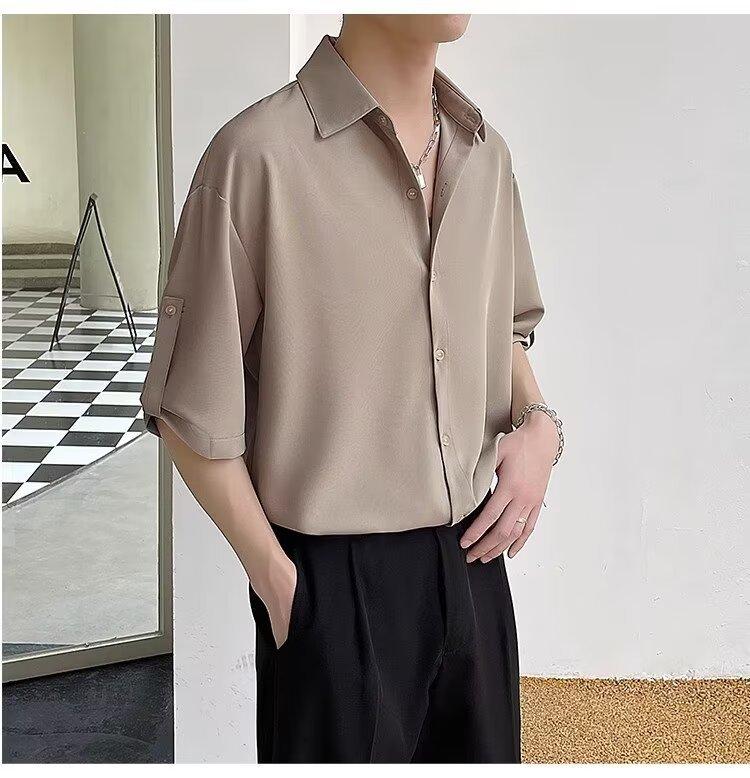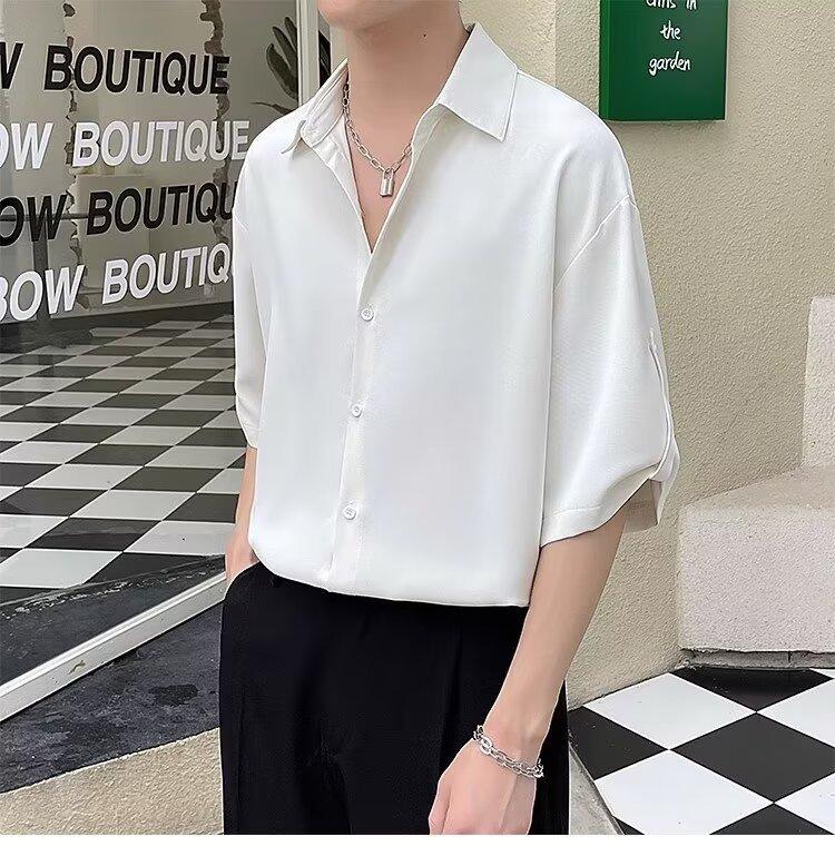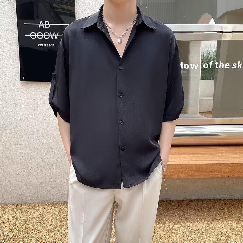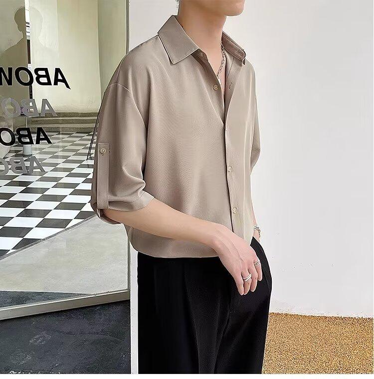 Camisa de Verano de Manga Siete Cuartos para Hombre de Manga Corta Estilo Coreano a la Moda Camisa para Hombre Estilo Madurez Ligera Sensación de Caída Seda Helada Top de Alta Gama