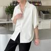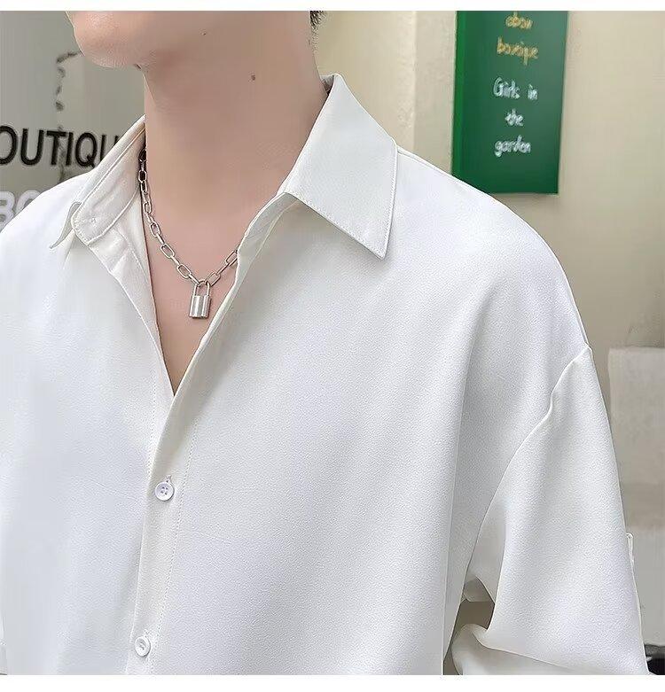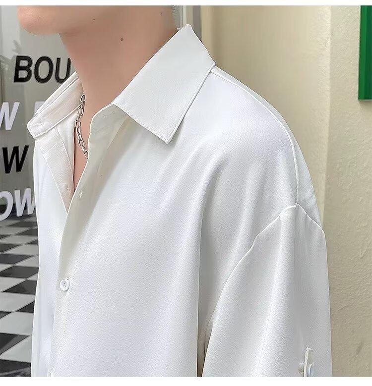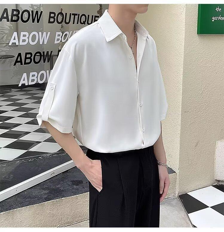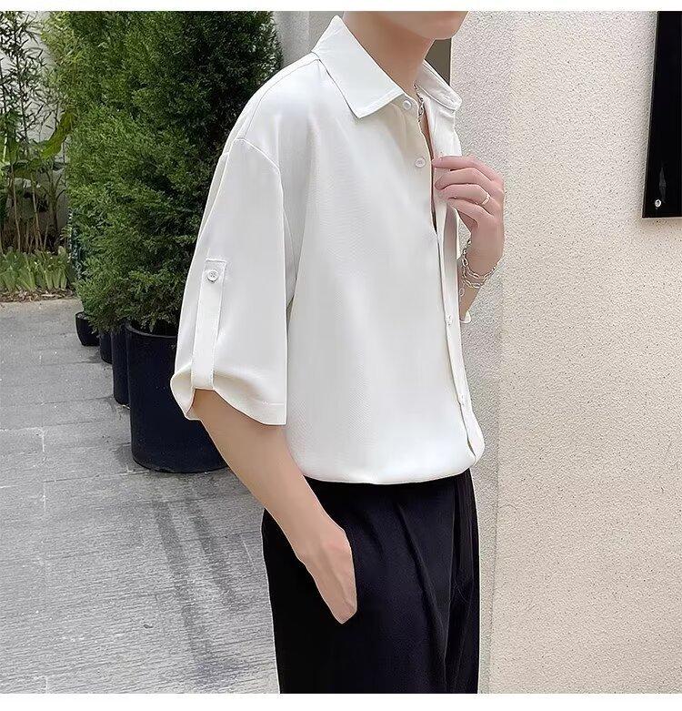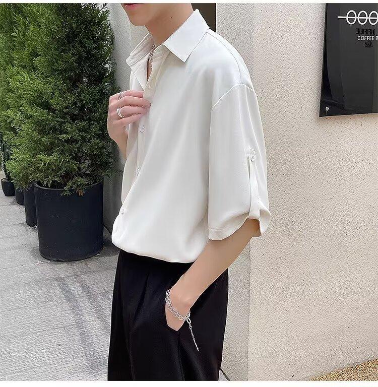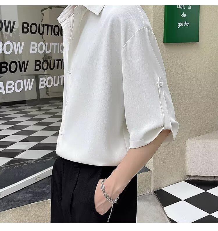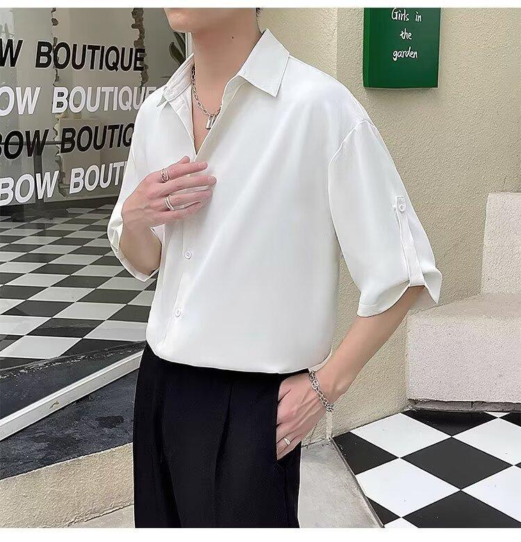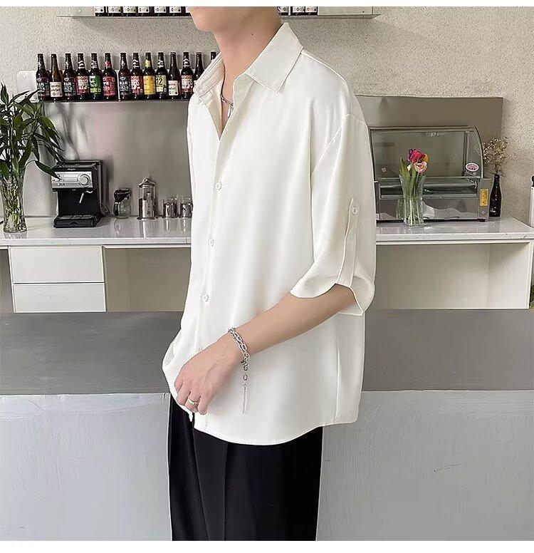 Camisa de Verano de Manga Siete Cuartos para Hombre de Manga Corta Estilo Coreano a la Moda Camisa para Hombre Estilo Madurez Ligera Sensación de Caída Seda Helada Top de Alta Gama