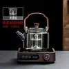 Tetera con Asa, Tetera de Vidrio, Tetera Resistente a Altas Temperaturas, Tetera Eléctrica Pequeña, Té al Vapor, Prosperidad Año tras Año