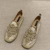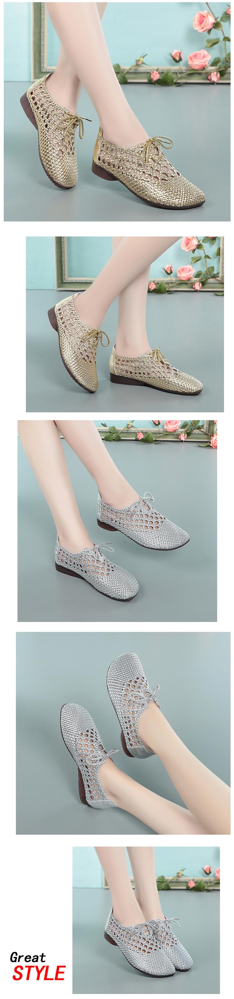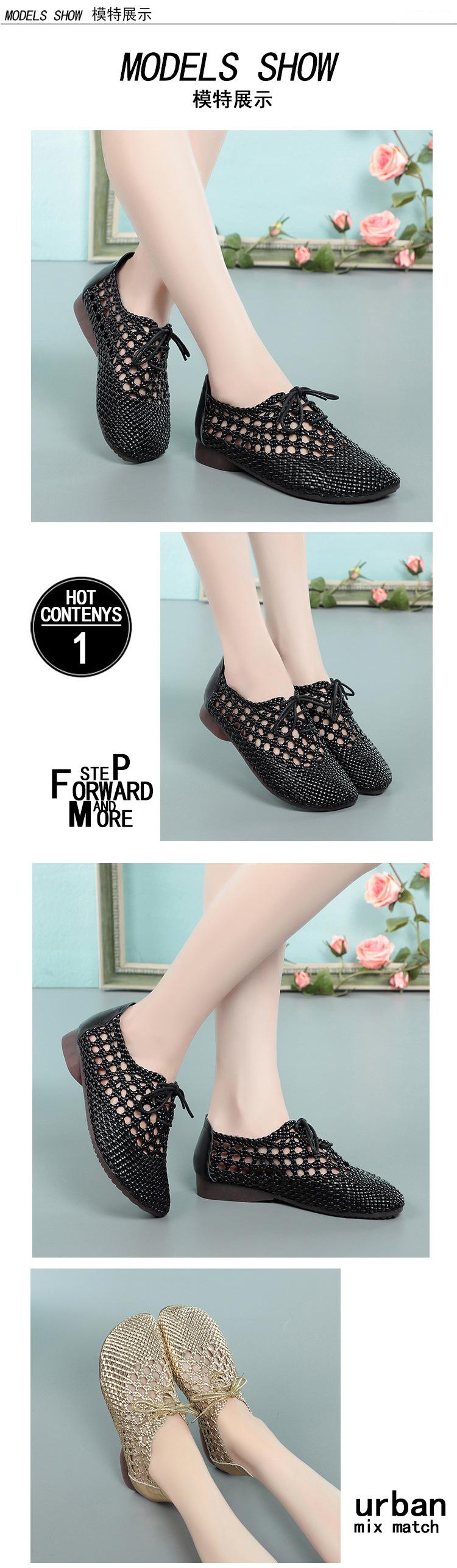 Sandalias Tejidas de Cuero Suave de Verano para Mujer Verano 2024 Nuevos Zapatos de Mamá Suela Suave Superficie Suave Zapatos de Mujer Flats Pies Grandes Zapatos de Pescador