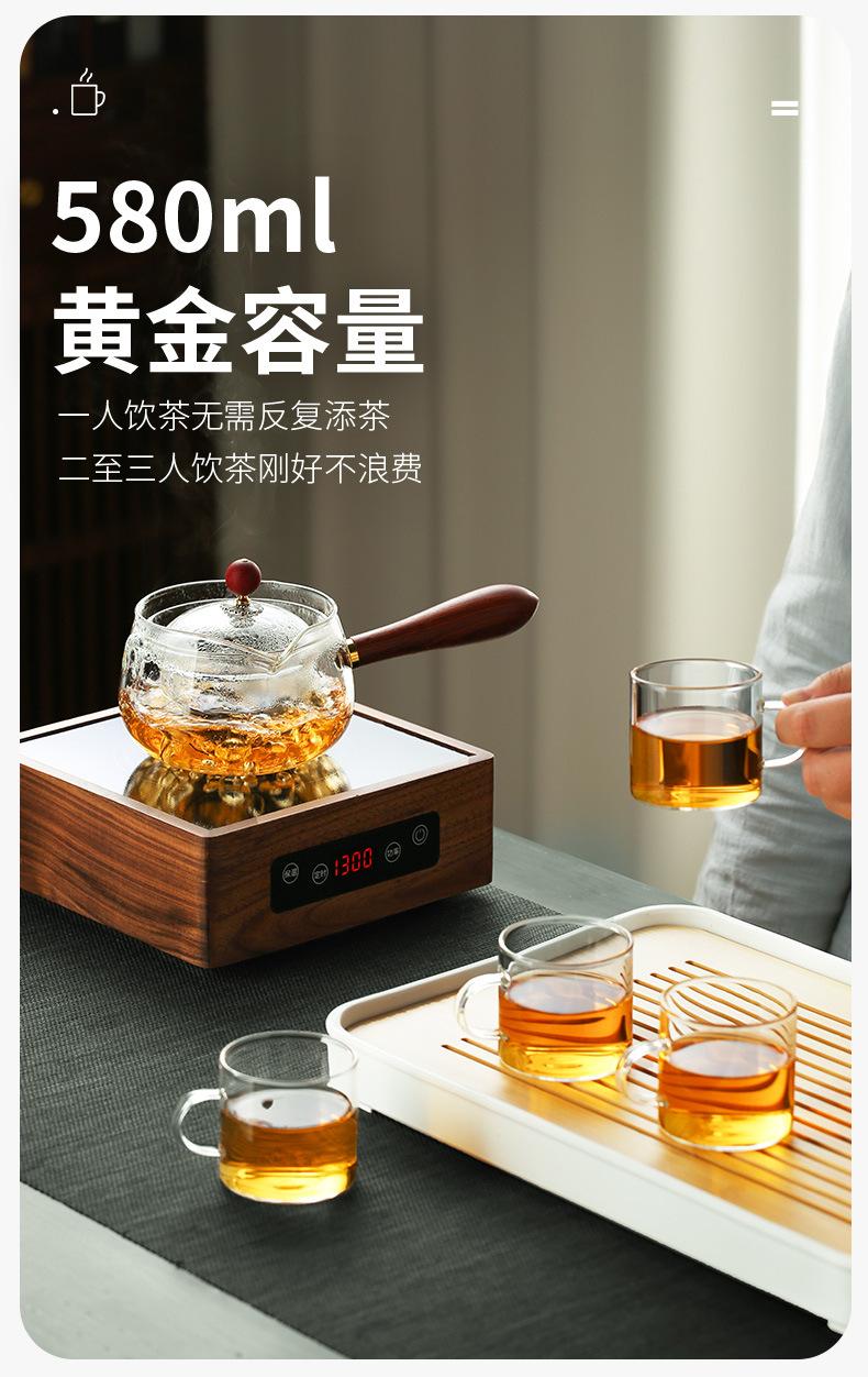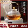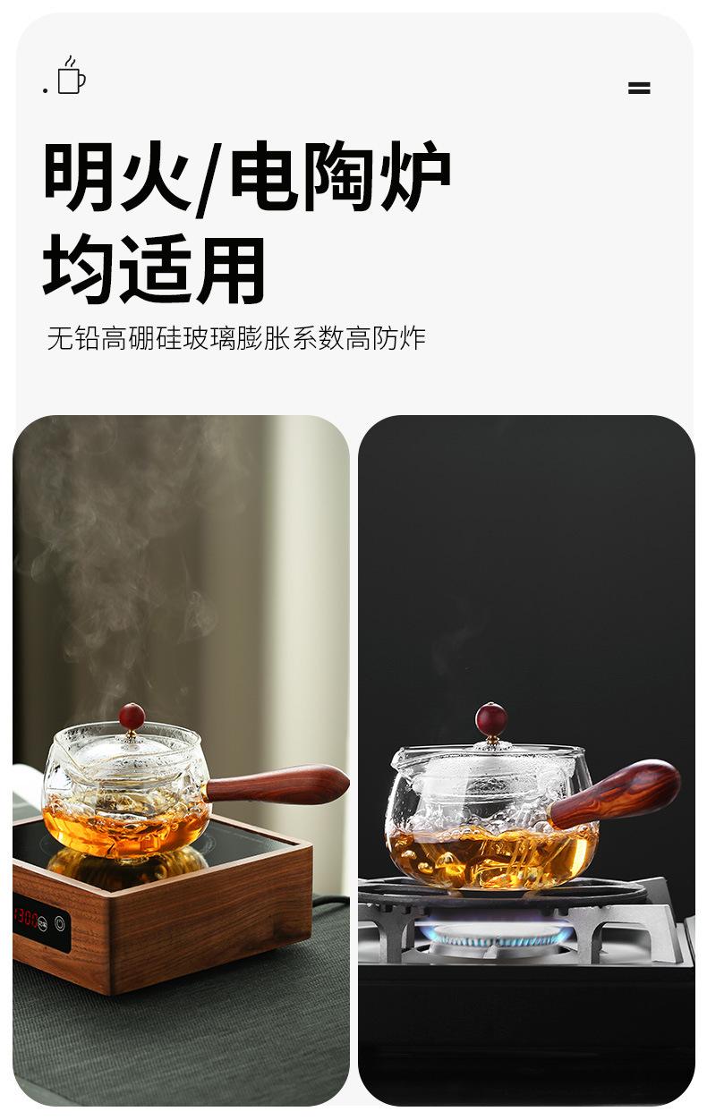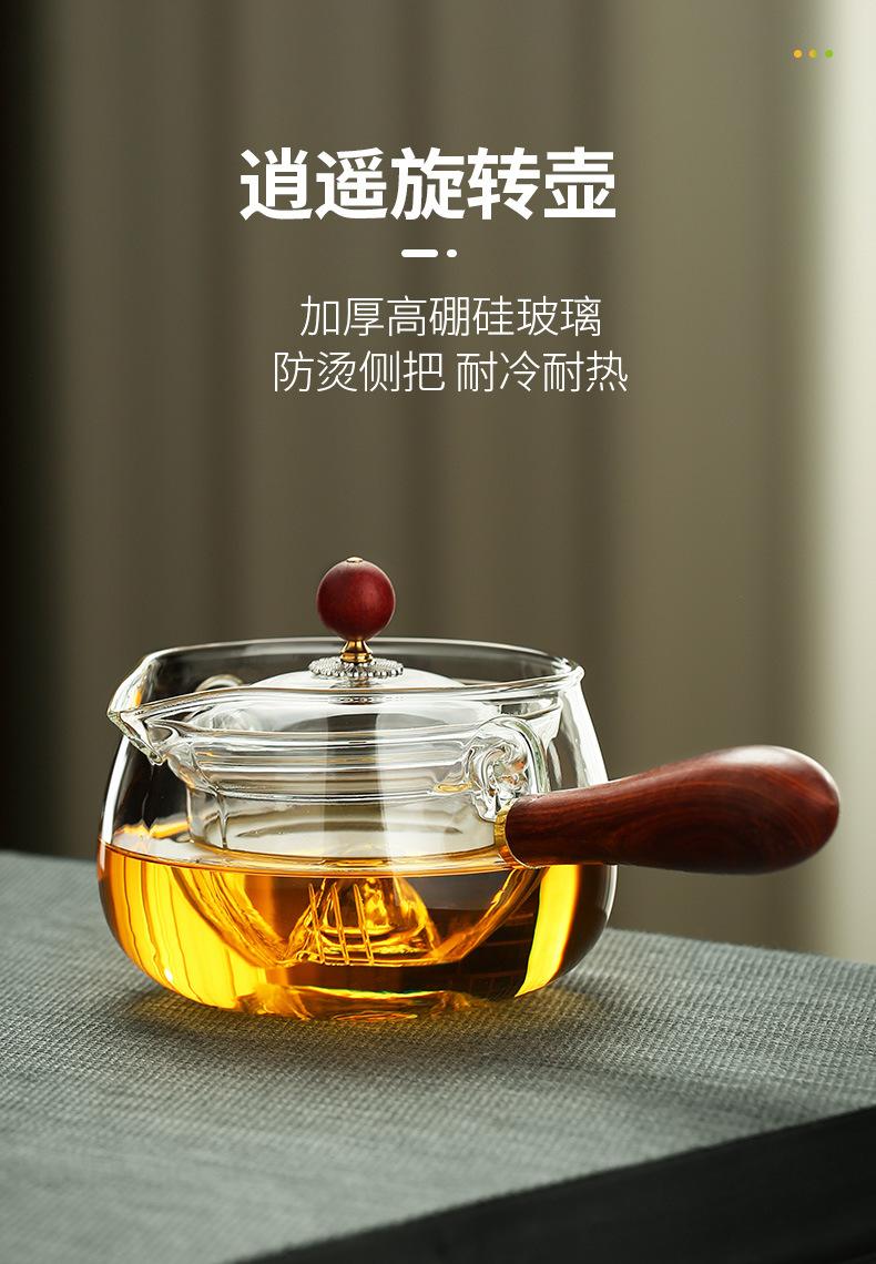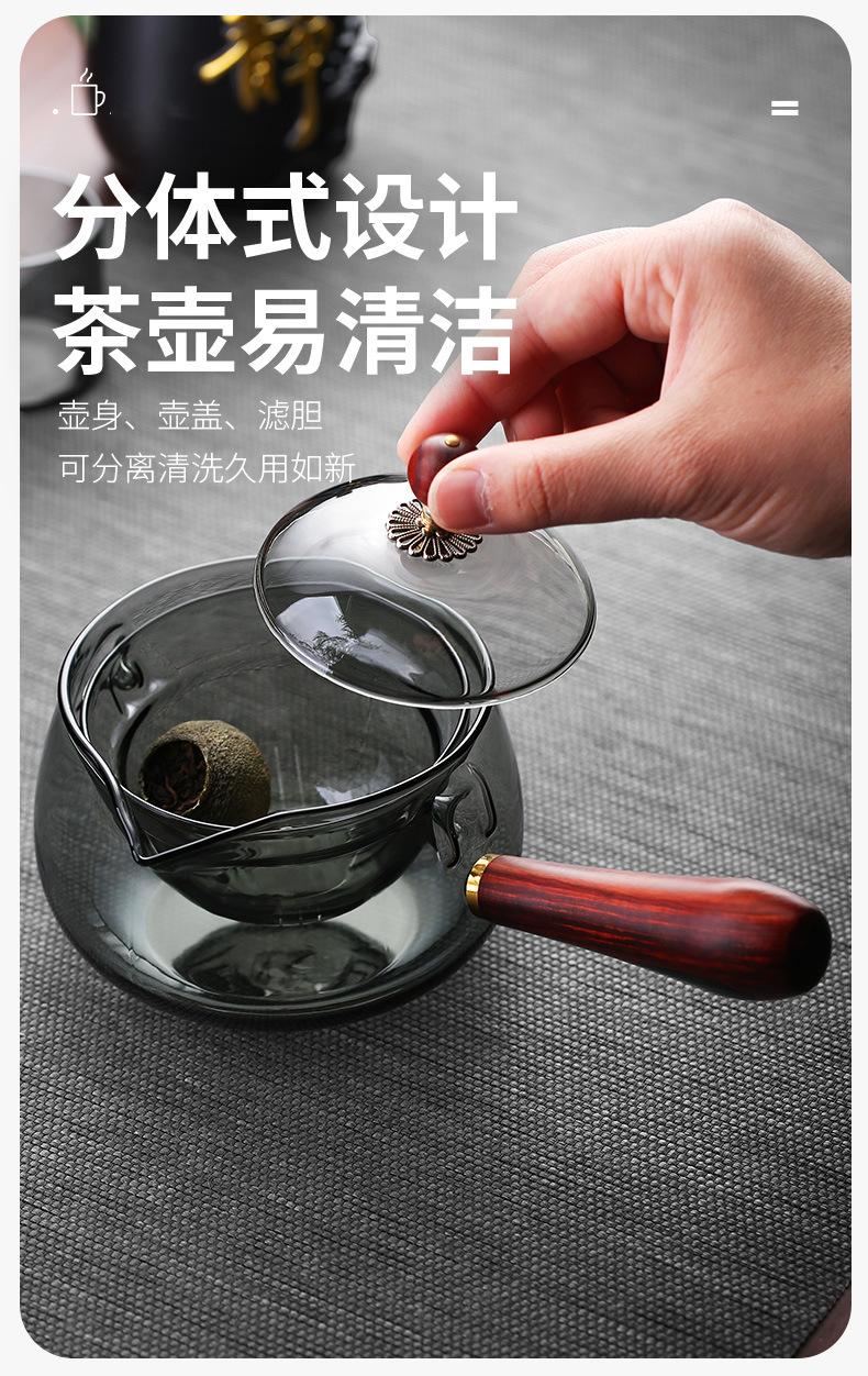 Tetera pequeña de vidrio con burbujas de color verde y naranja resistente a altas temperaturas, tetera Xiaoyao, juego de té de kung fu, tetera con asa lateral para el hogar