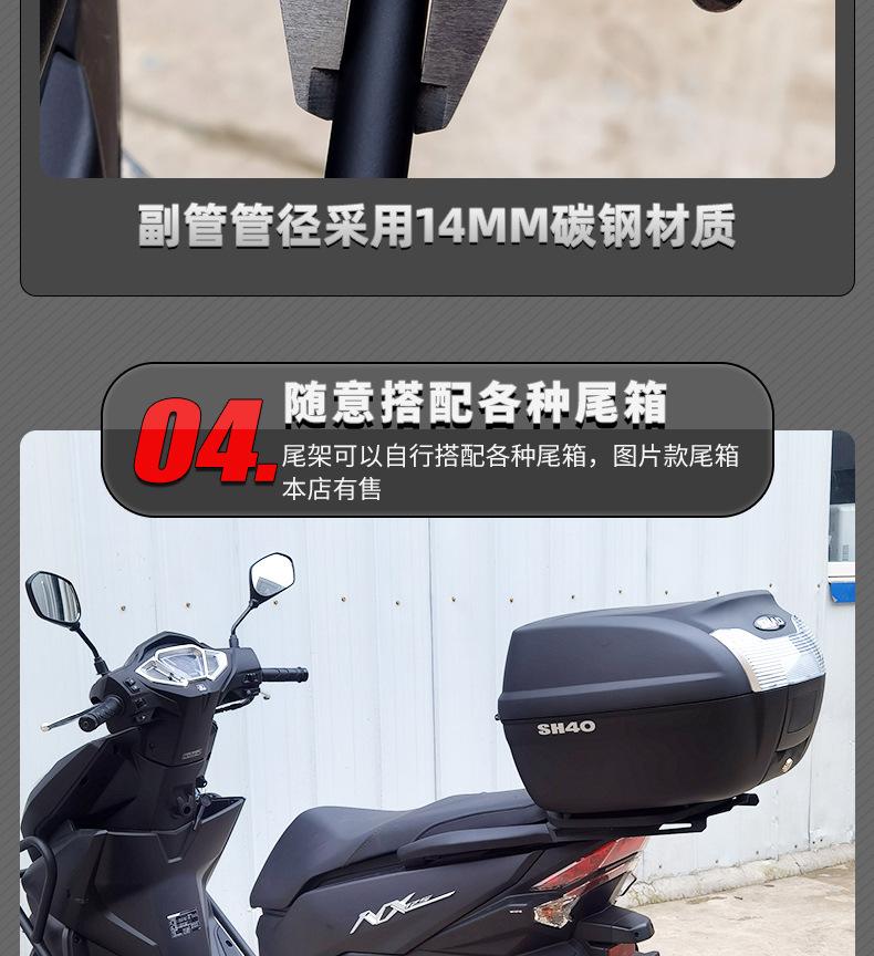 Adecuado para Wuyang Honda nx125 modificado portaequipajes trasero estante trasero soporte caja trasera barra de seguro accesorios de motocicleta