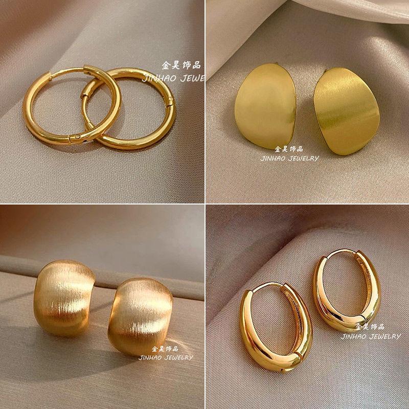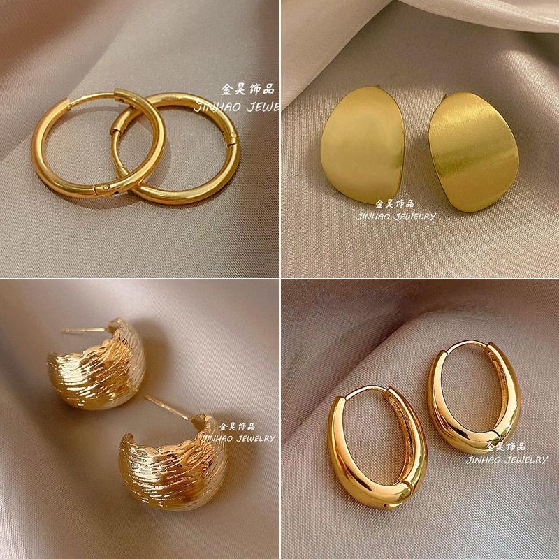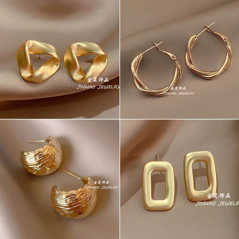 74#Silver frosted square earrings, 5#Gold bright gold earrings, 2#Bright gold circle earrings, 3#Gold irregula...