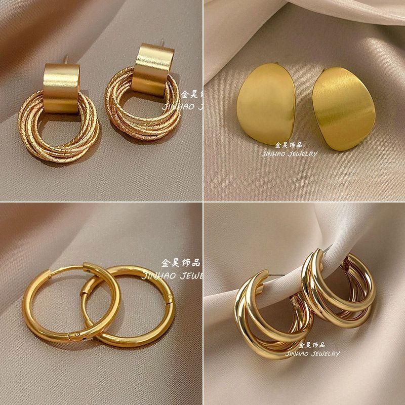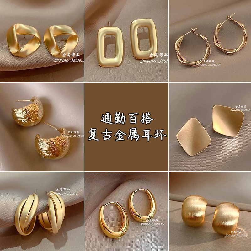 Aretes Metálicos Retro de Alta Gama para Mujer 2025 Nuevo Diseño de Estilo Caliente Elegantes Aretes Estilo Europeo y Americano Aretes para Mujer