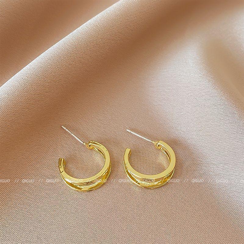2# bright golden circle stud earrings