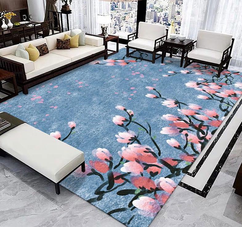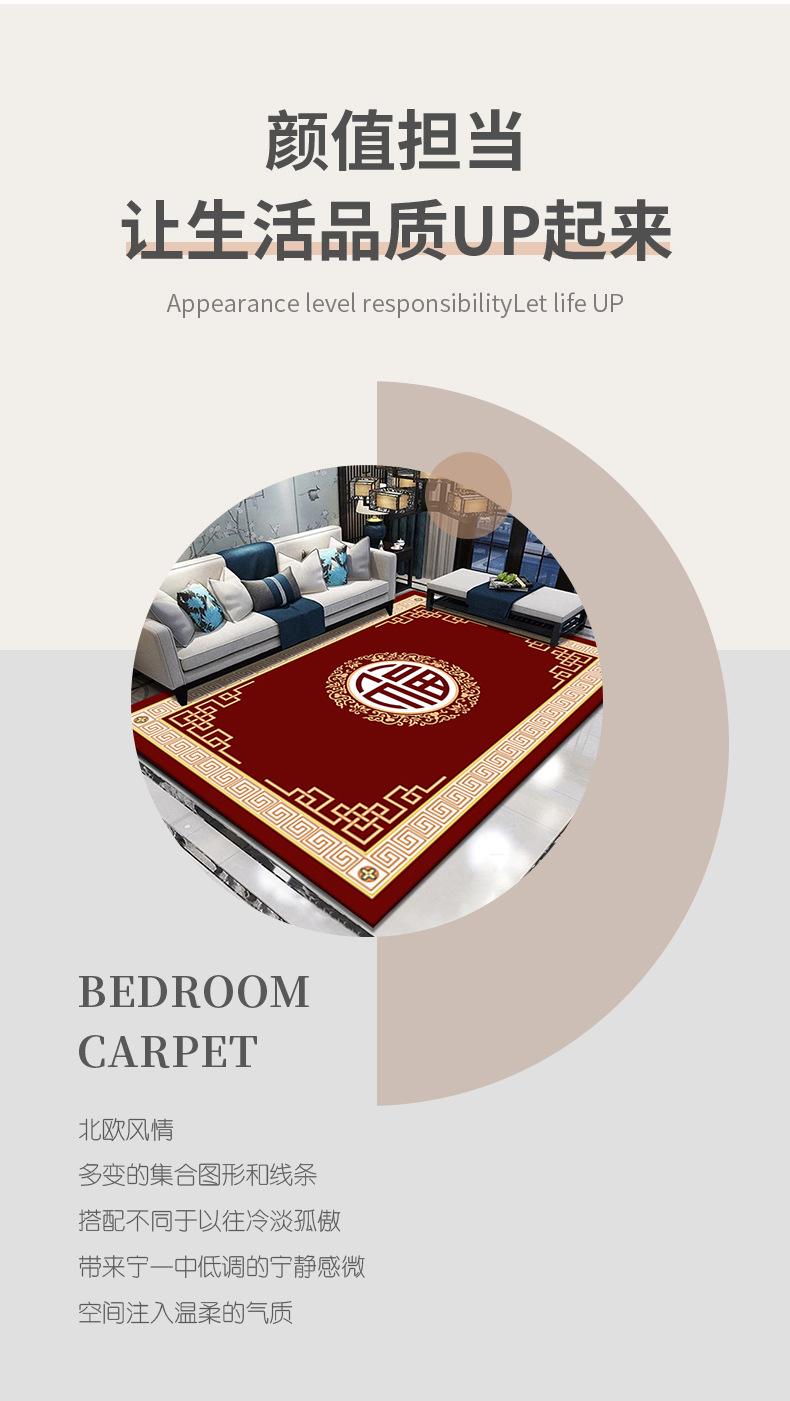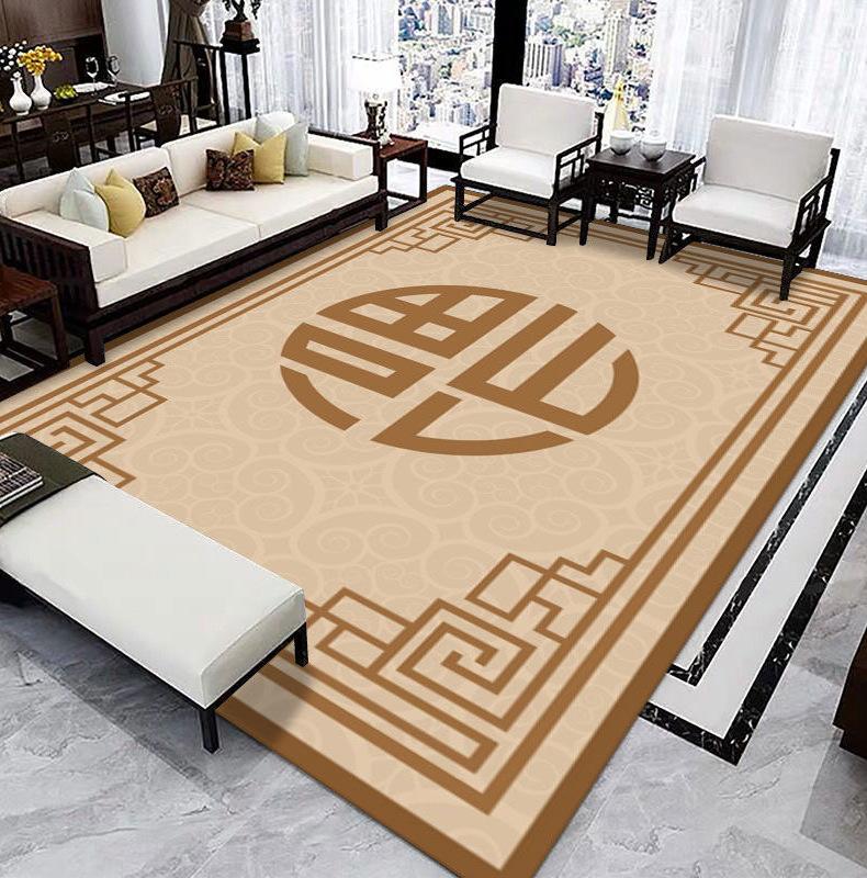 Alfombra Sala de Estar Resistente a la Suciedad Fácil de Cuidar Sofá Mesa de Centro Manta Lavable Estilo Chino Antideslizante Estudio Decorativa Alfombra de Terciopelo Cristal