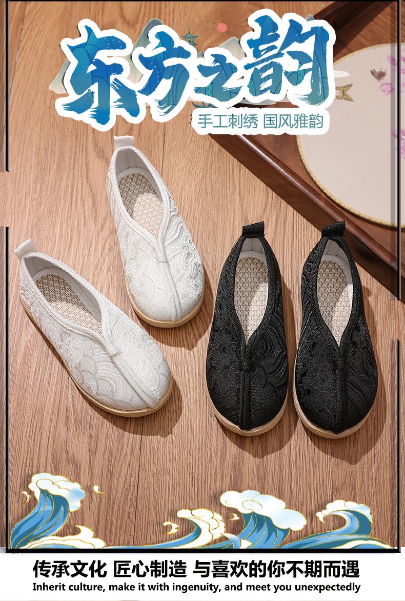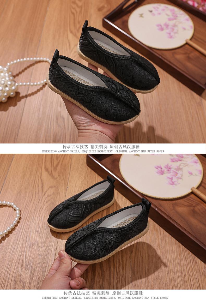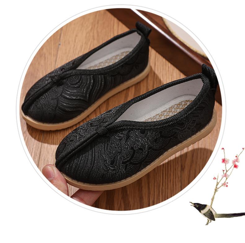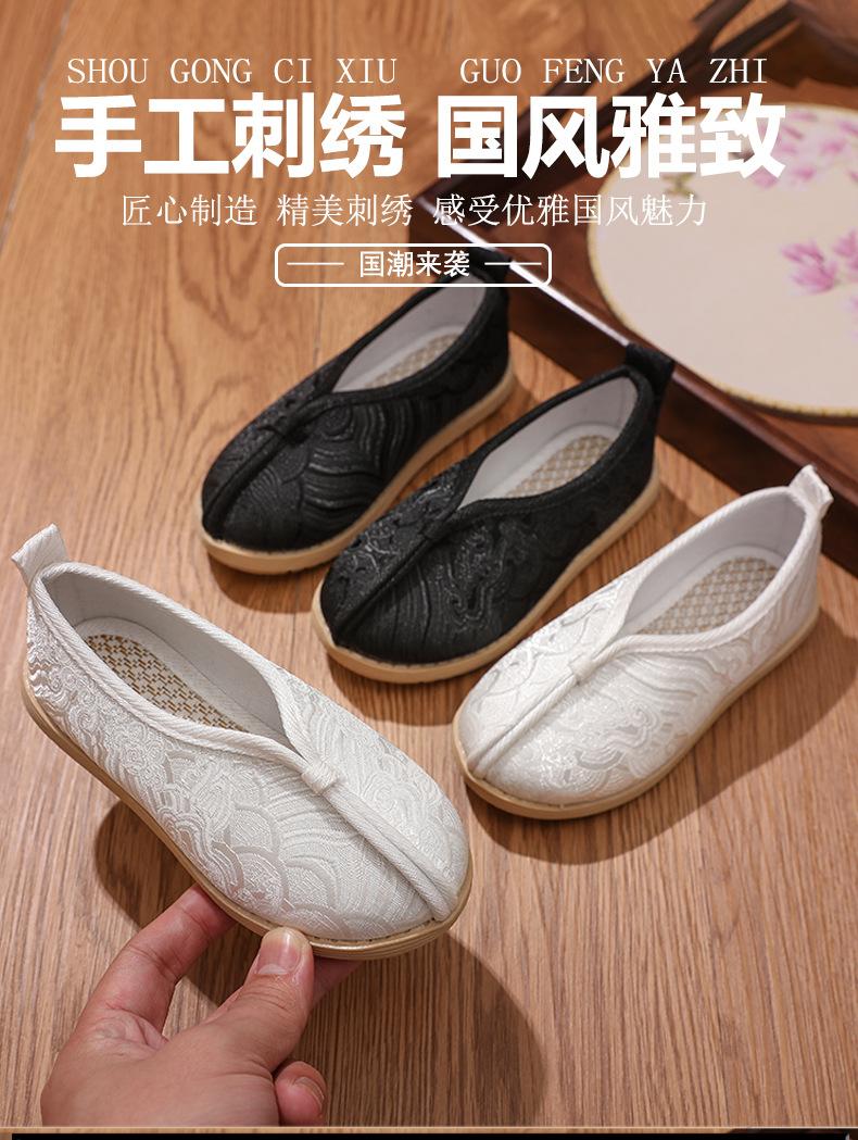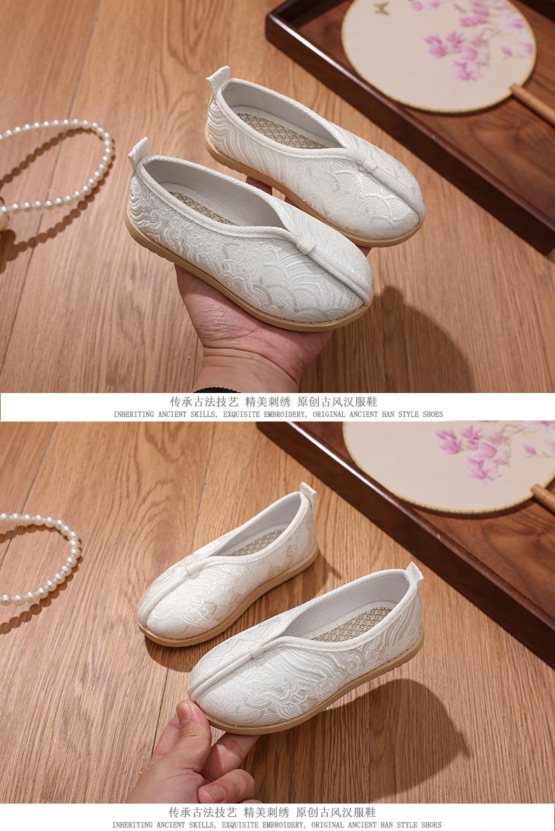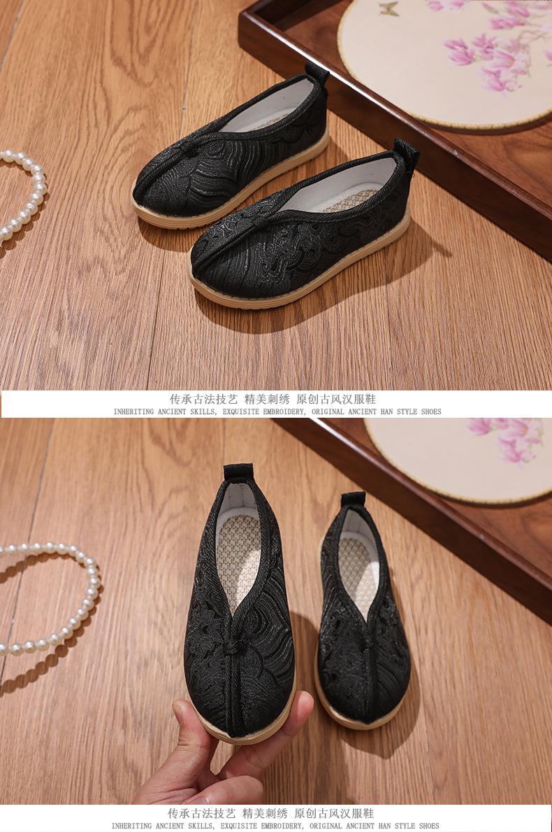Zapatos Hanfu para niños, zapatos antiguos bordados para niños, traje antiguo, estilo étnico, zapatos con falda con cara de caballo, zapatos de tela antiguos hechos a mano de Beijing
