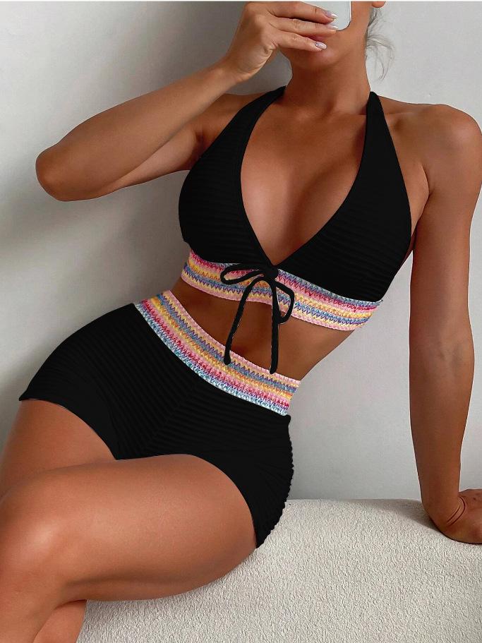 Trajes de baño nuevos 2024, comercio exterior europeo y americano, bikini de cintura alta dividido para damas, fábrica de trajes de baño transfronterizos, bikini al por mayor