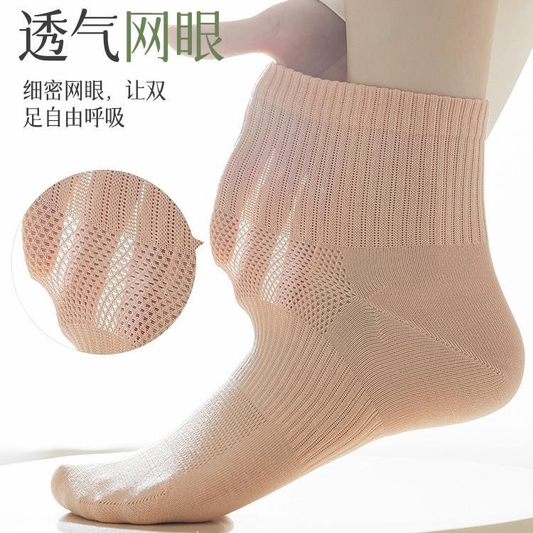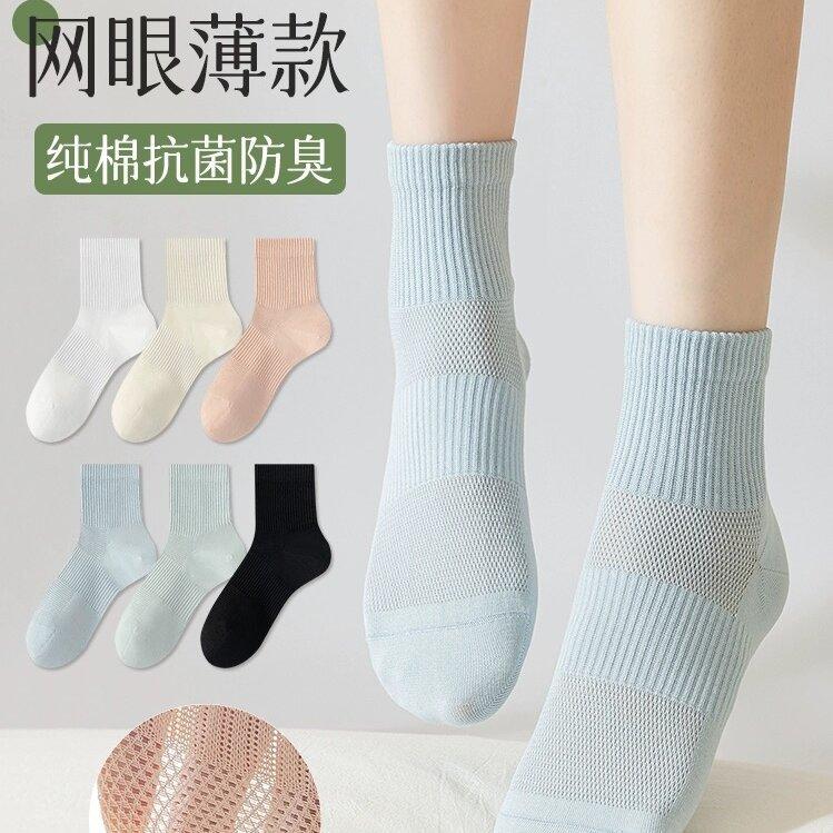 Calcetines de mujer hasta media pantorrilla, de primavera y otoño, antibacterianos, desodorantes, de malla, transpirables, de verano, finos, de color sólido, deportivos, sin hueso, medias