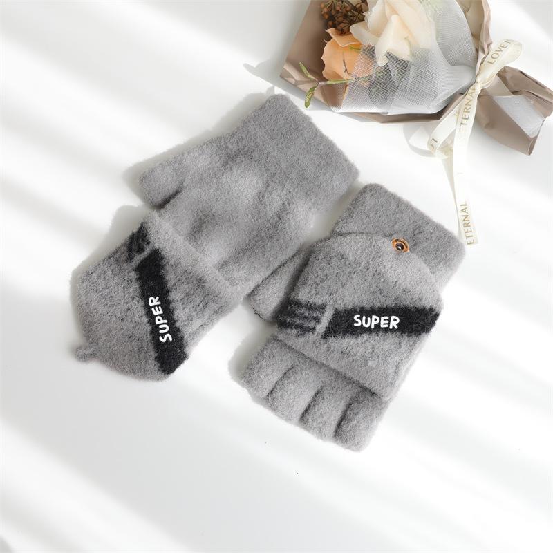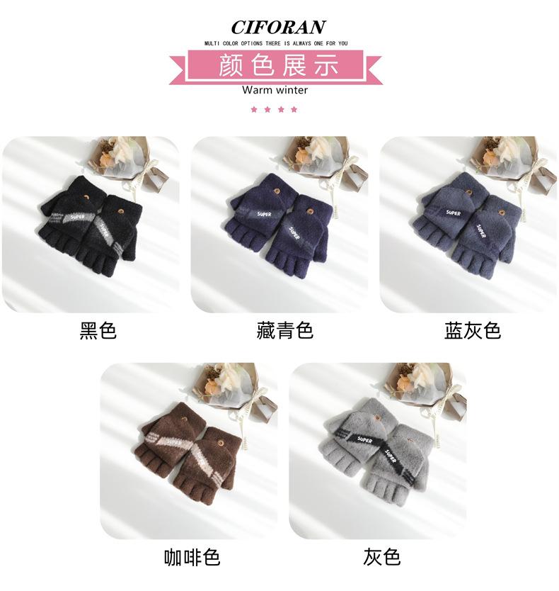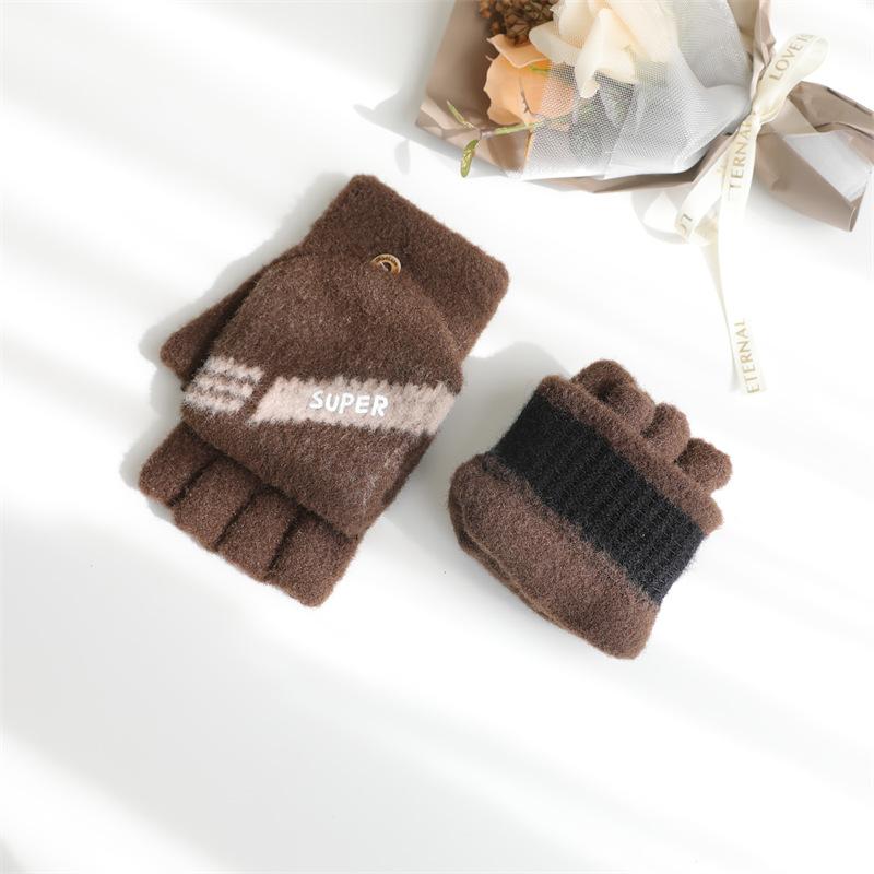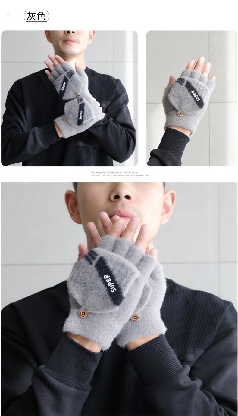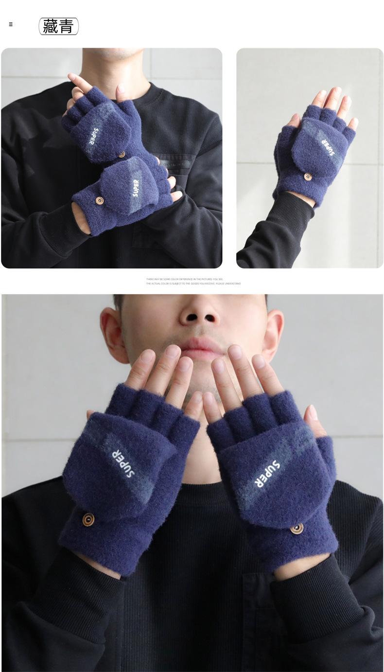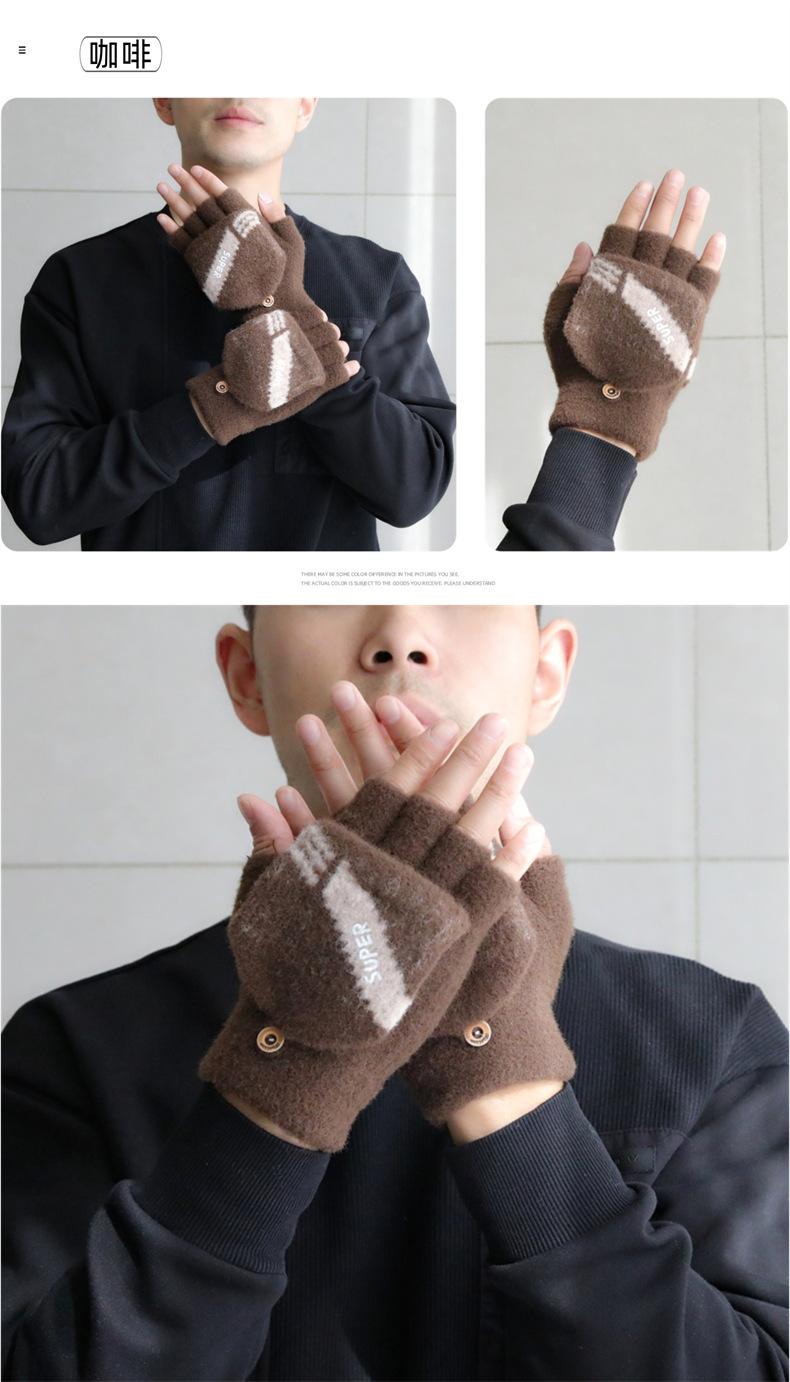 Guantes de medio dedo para hombre invierno guantes de cinco dedos de media sección de dedo abierto abatibles invierno estudiantes escritura mecanografía más terciopelo para mantener el calor