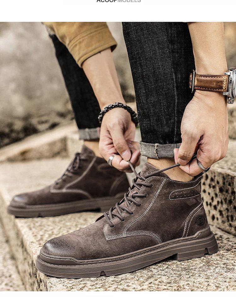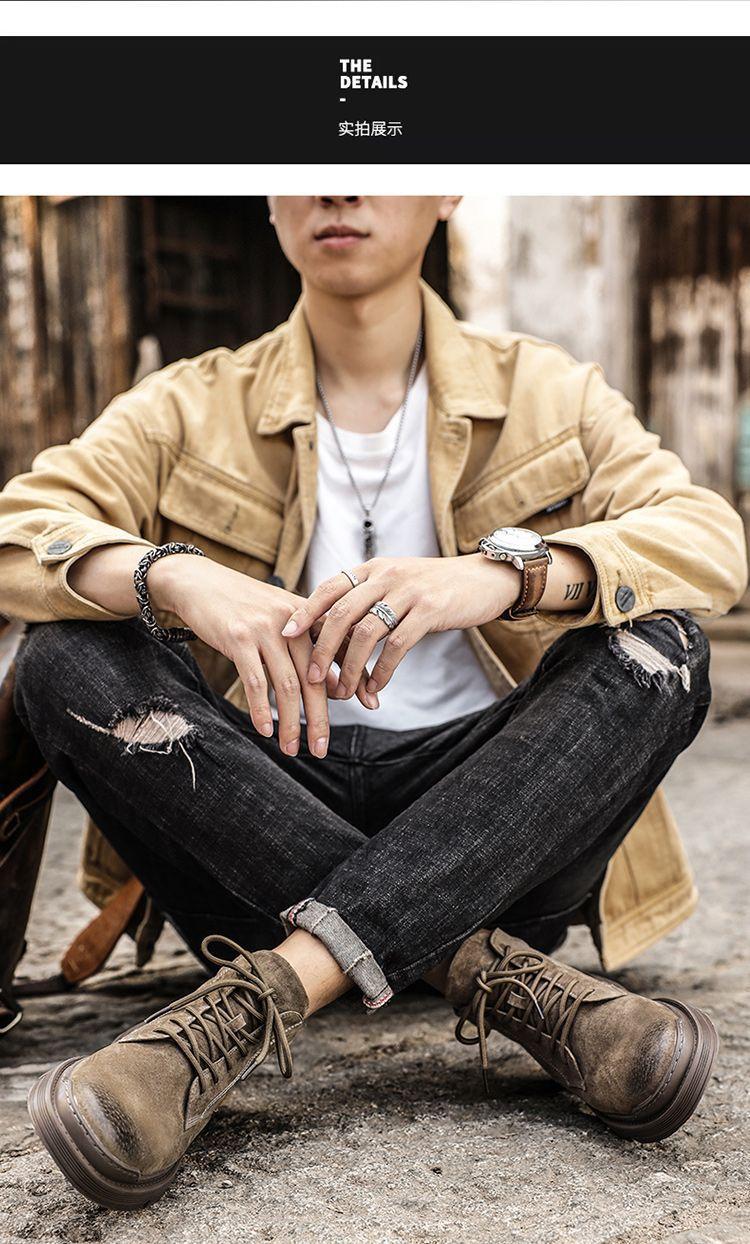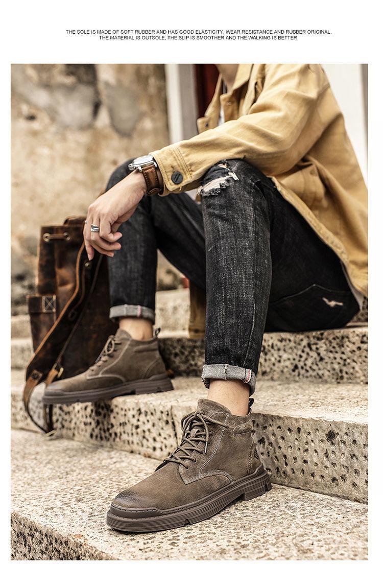 Botas Martin para hombre, de caña alta, transpirables, otoño 2024, nuevas botas hasta el tobillo, estilo británico, de caña media, de cuero genuino.