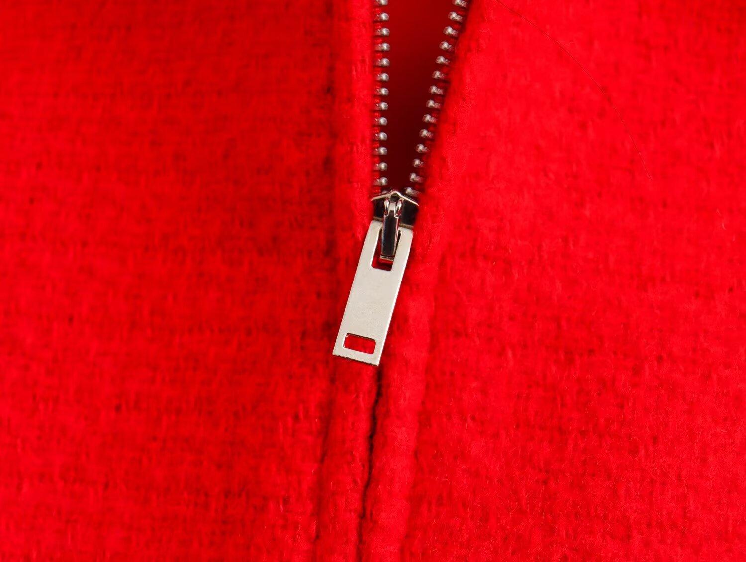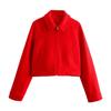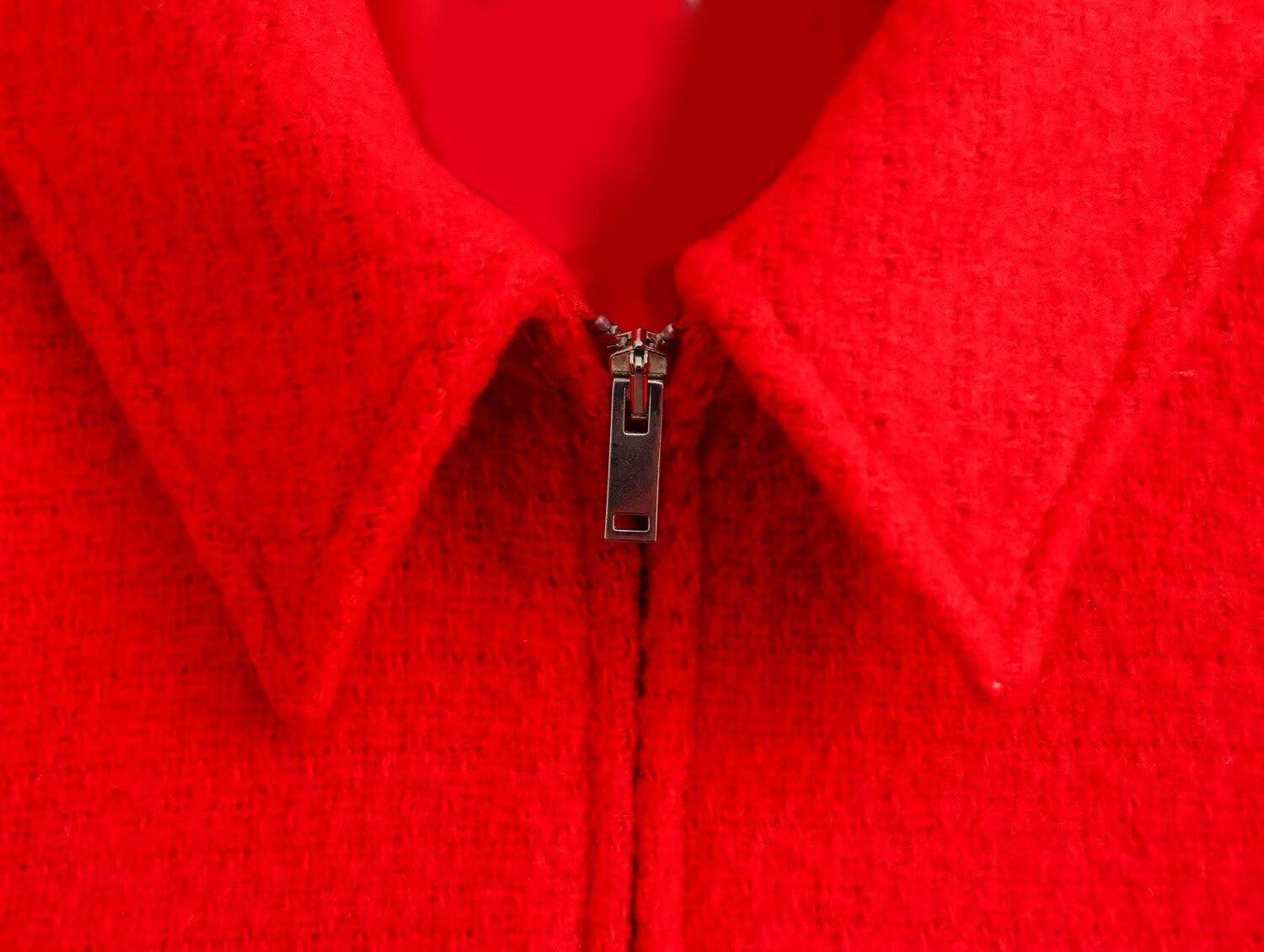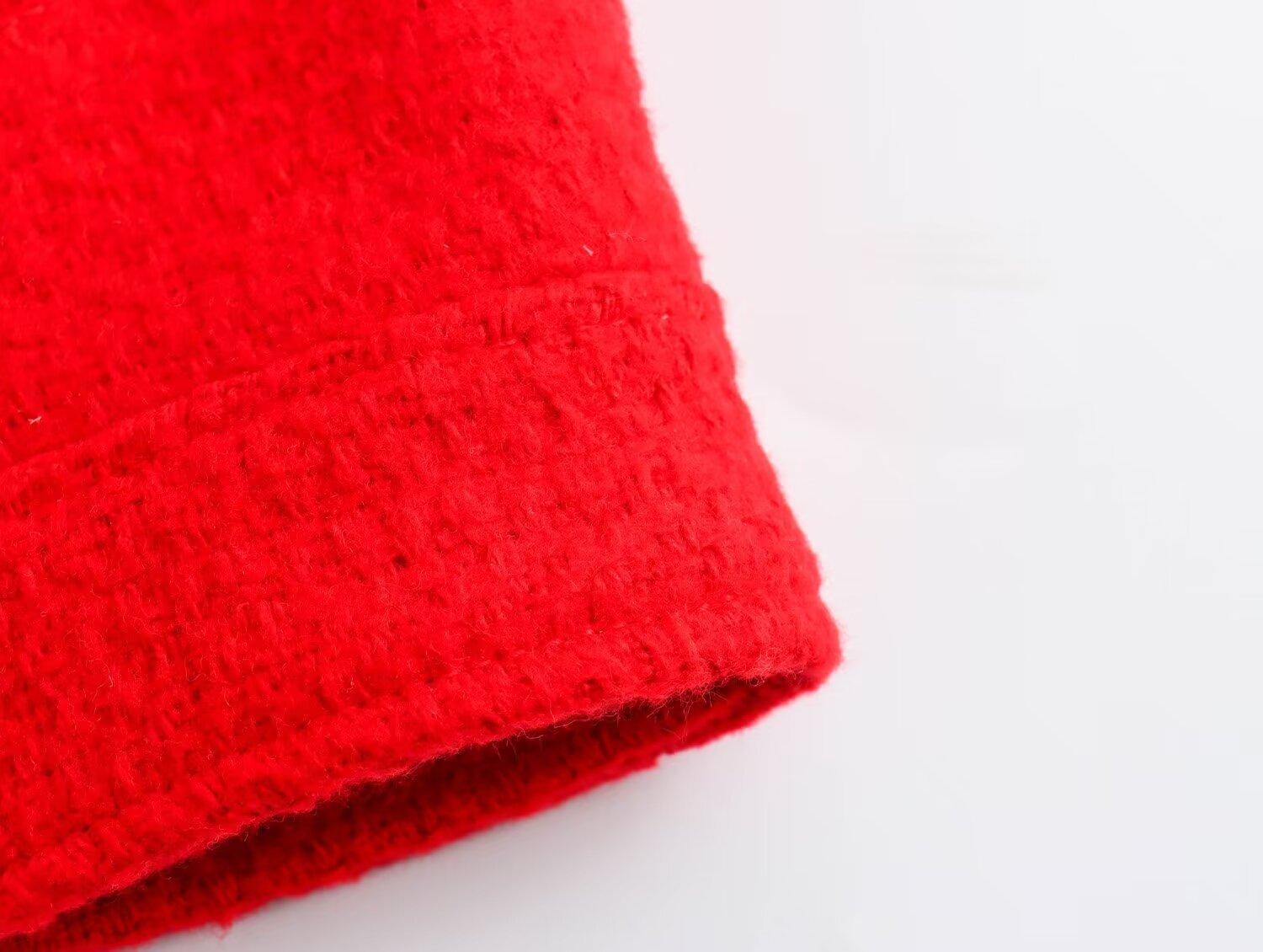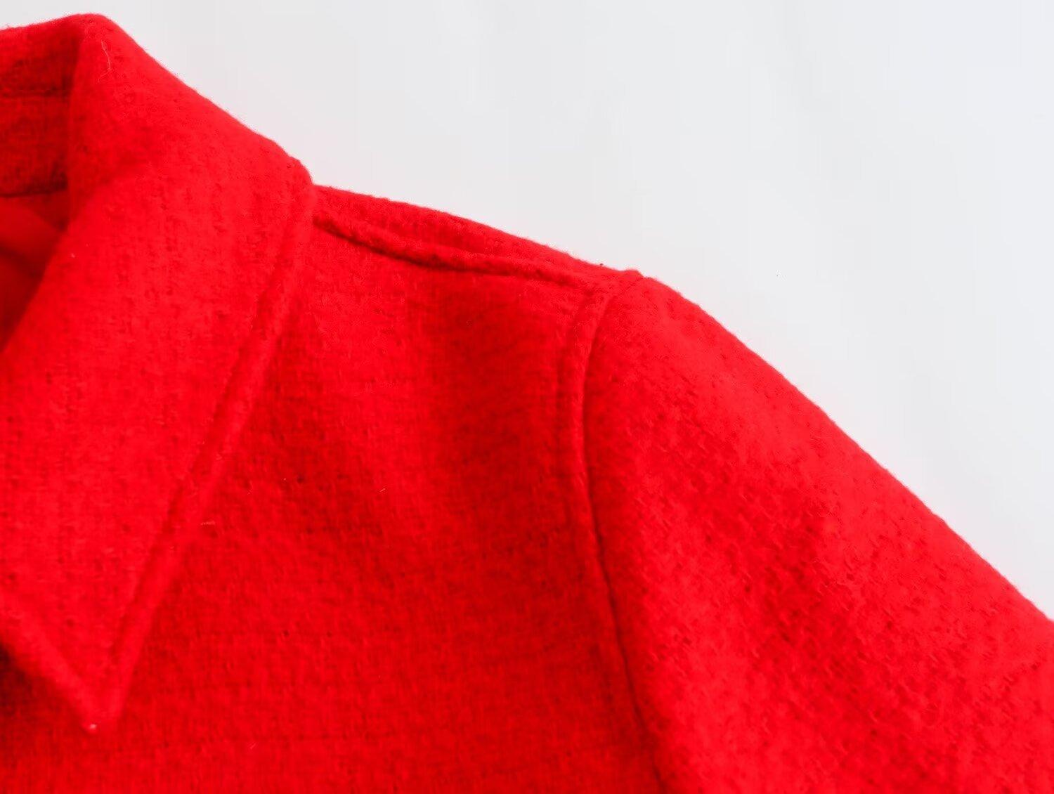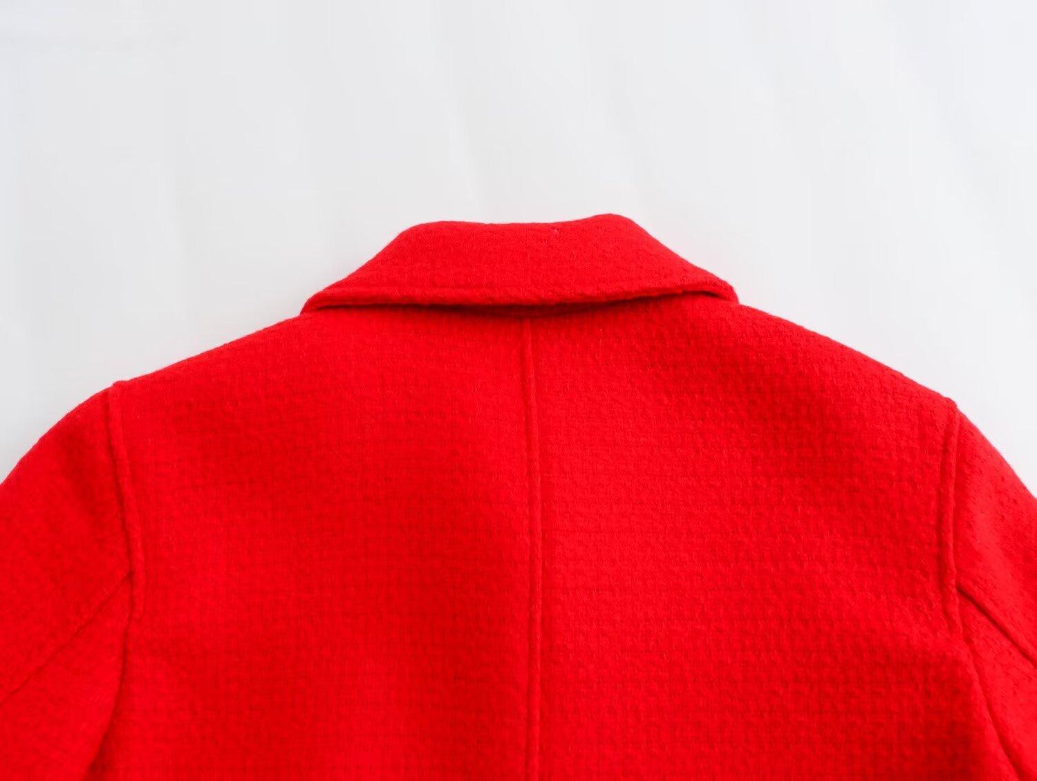 2024 Primavera Nuevo Europeo y Americano Transfronterizo para Mujer Rojo Chaqueta de Solapa Slub a la Moda + Falda Línea A