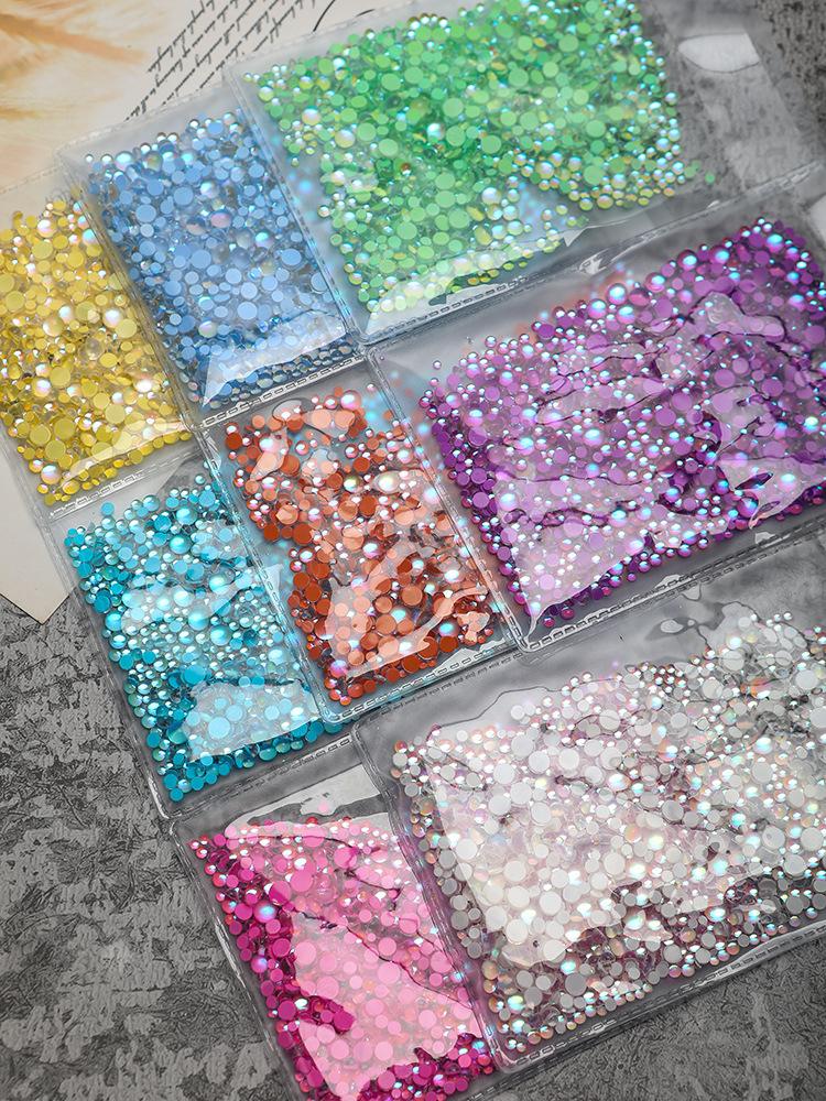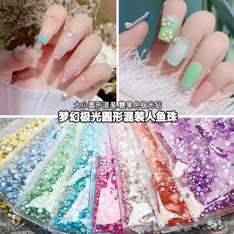 Compra Decoración de uñas con cuentas de pez humano, joyería de diamantes Aurora, color mágico, diamantes de vidrio redondos, color caramelo, tamaño mixto con 1440 piezas al por mayor en Joom.pro