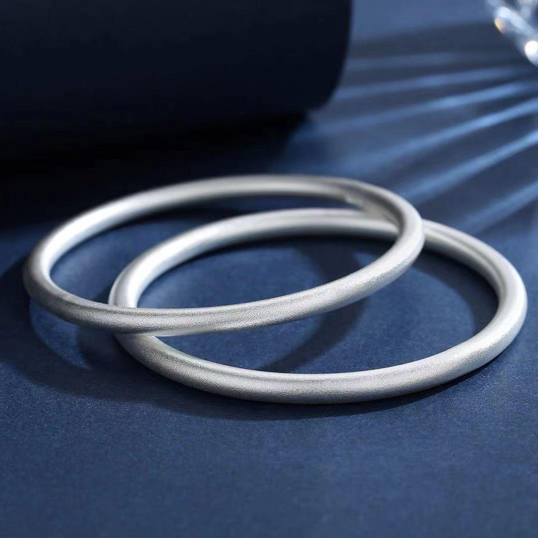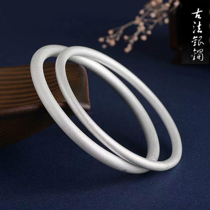 Pulsera de Cobre Blanco Plateado con Método Antiguo Retro Étnica Cerrada Esmerilada Femenina Simple Regalo para Pareja Pulsera Plateada