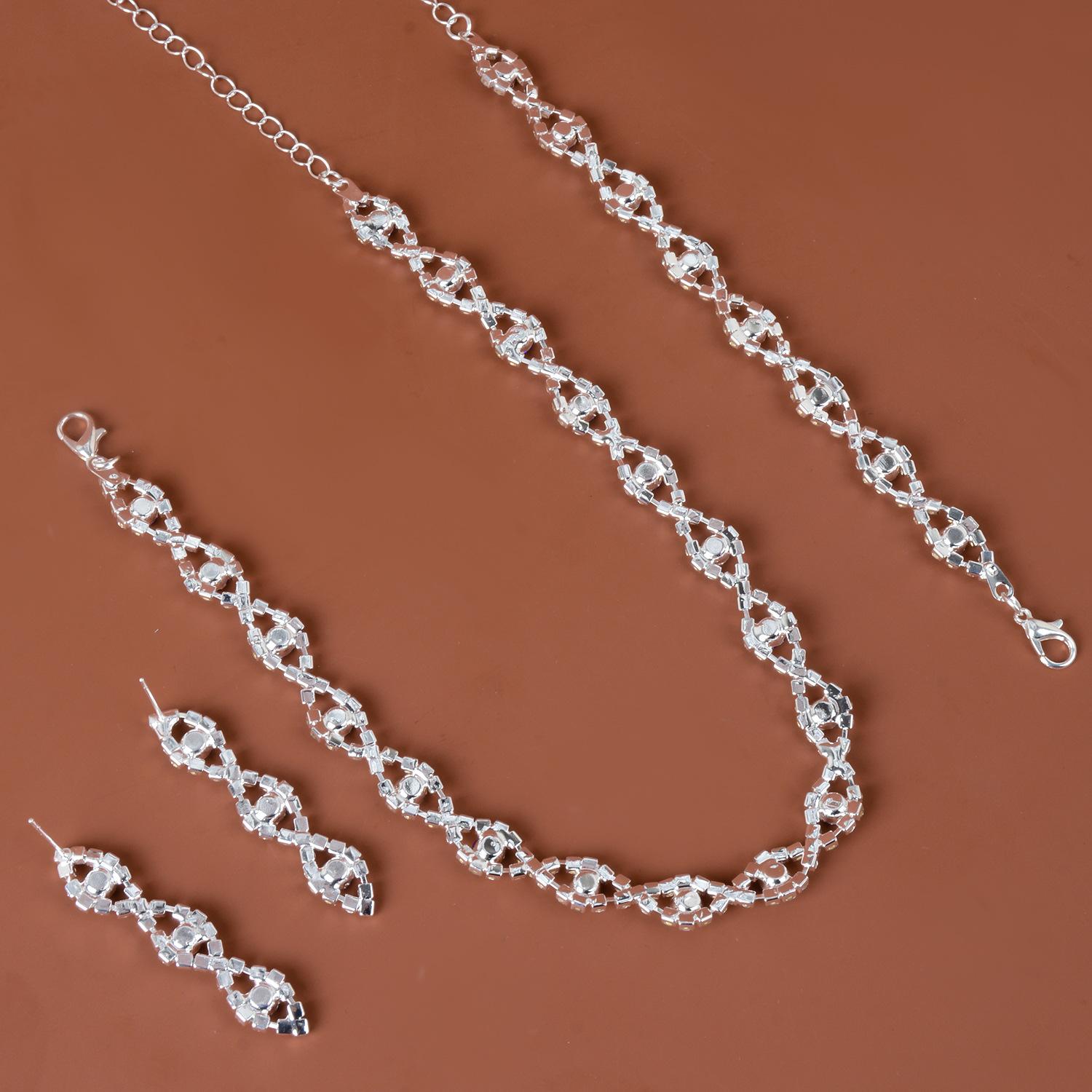 | Conjunto de adornos exagerados de Oriente Medio para mujer, collar nupcial de diamantes exagerado, accesorios de ropa versátiles, fabricantes al por mayor | Collar de serpiente con diamantes de imitación de gran venta en Oriente Medio, joyería para uso diario en bodas y fiestas, joyería nupcial. | Comercio electrónico transfronterizo de joyas para novias y niñas, collar de diamantes europeos y americanos, pendientes, conjunto de joyas de boda al por mayor | Conjunto de collar y pendientes de boda de moda europea y americana, conjunto de 3 piezas, joyería sencilla con diamantes para mujer, venta directa de fábrica al por mayor | |||