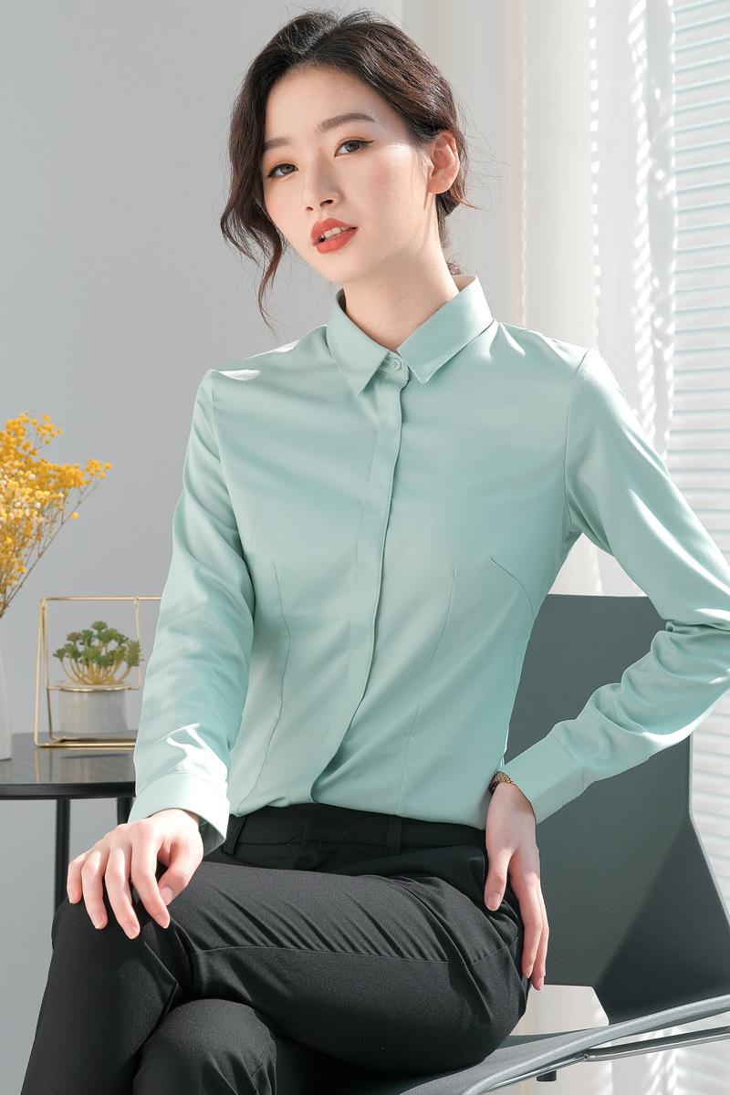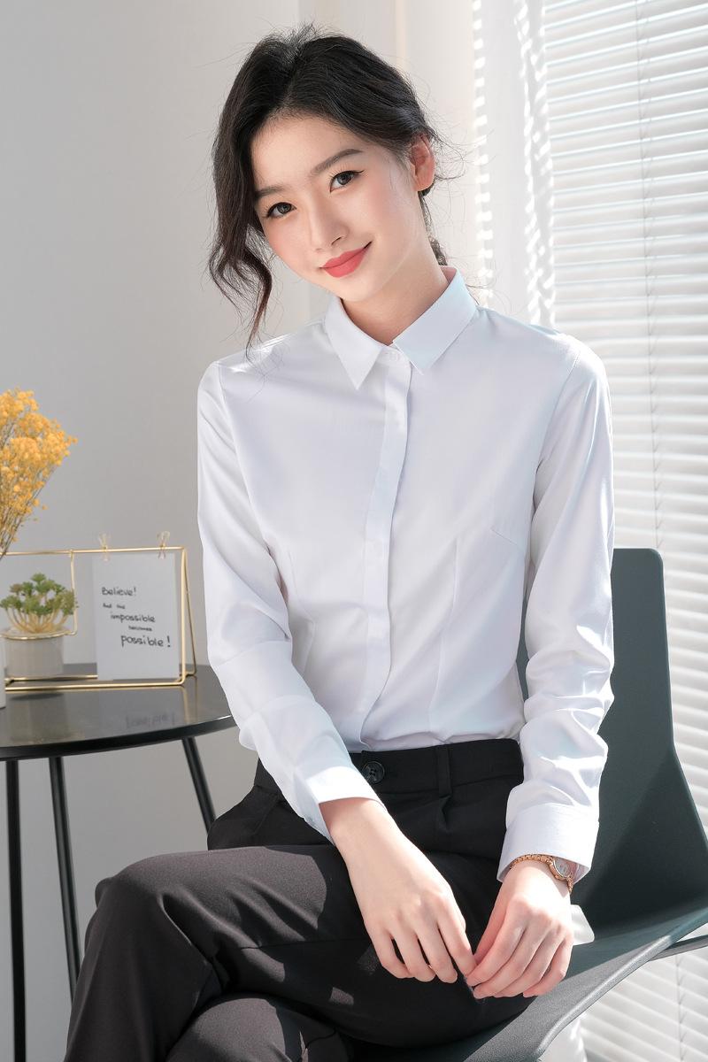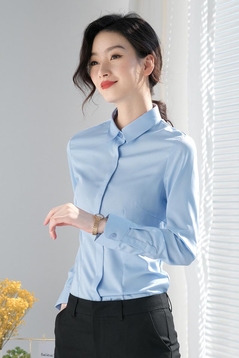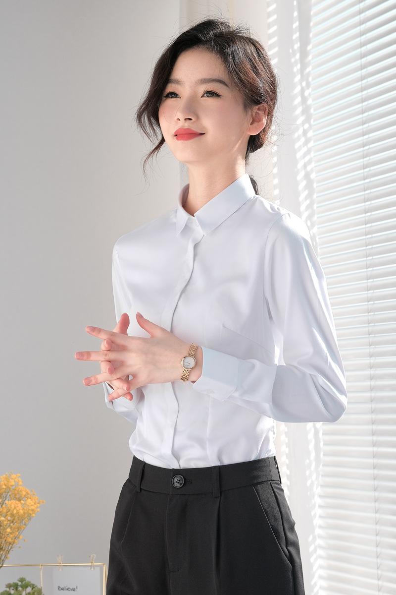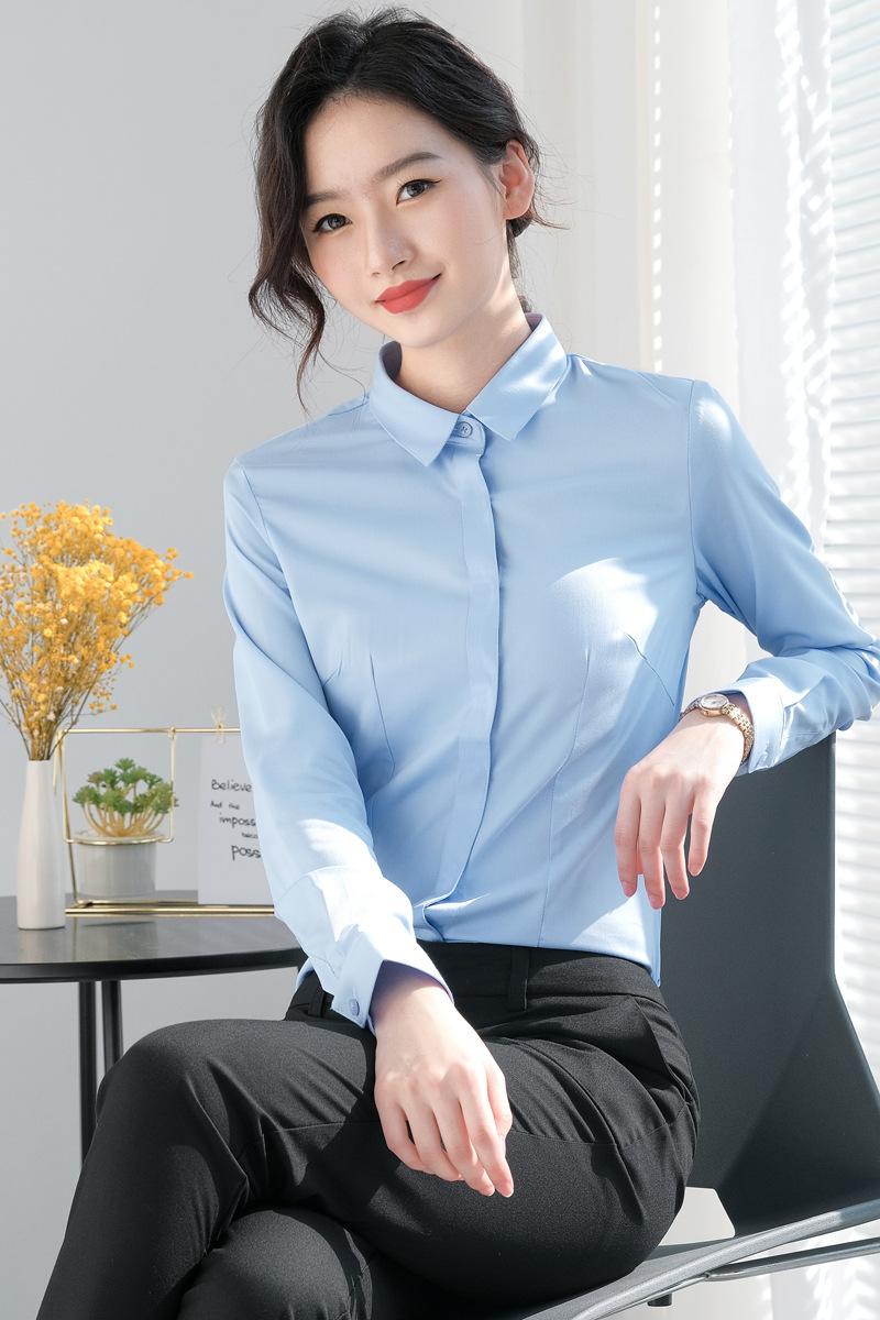 Camisa de Manga Larga de Fibra de Bambú Sin Planchado para Mujer Camisa Profesional Estilo Nuevo de Otoño Ropa de Trabajo Casual de Negocios