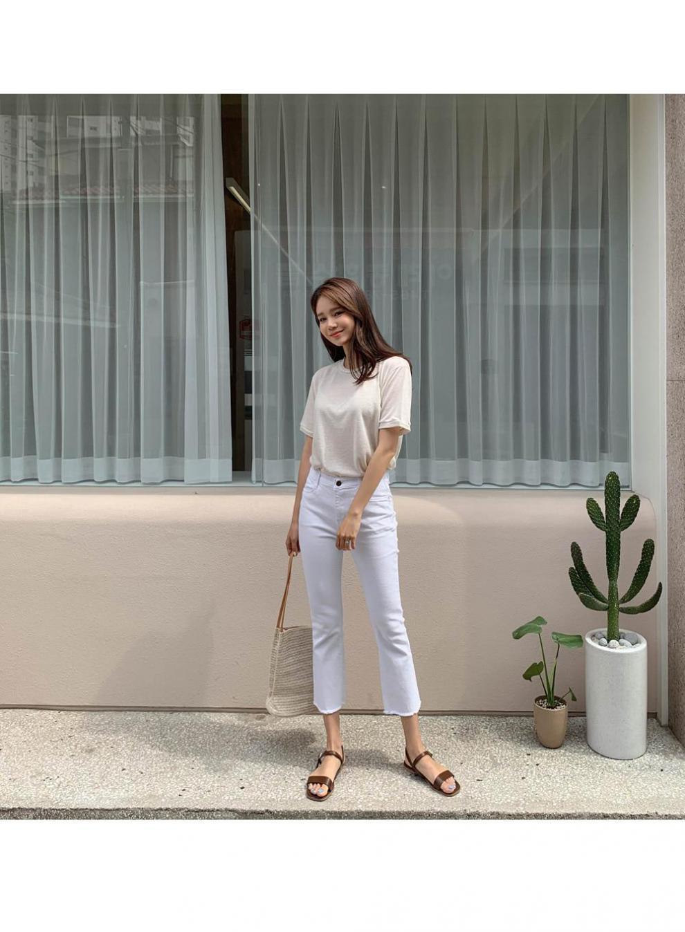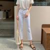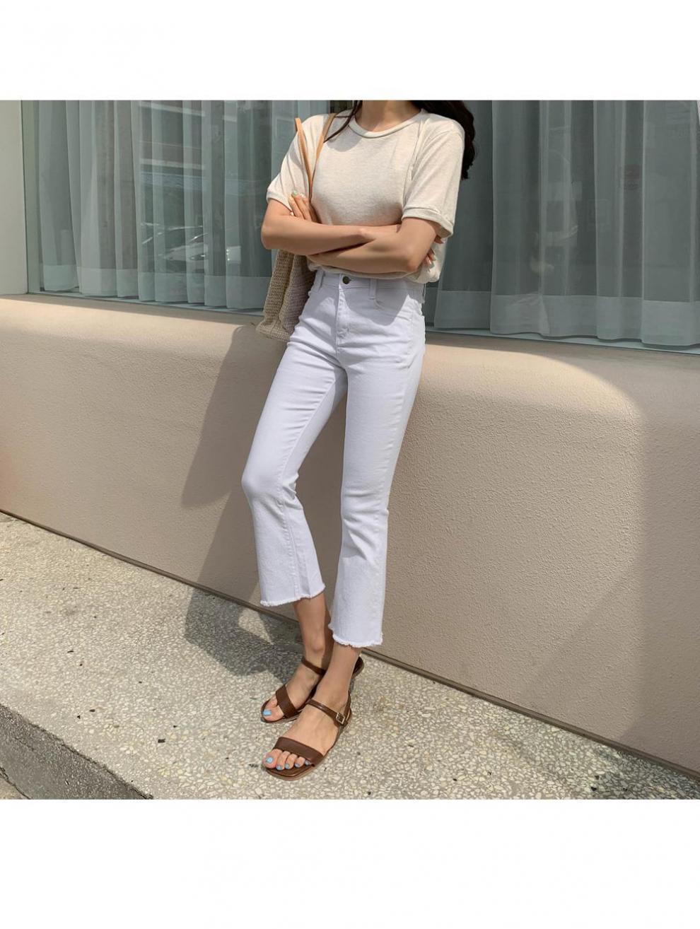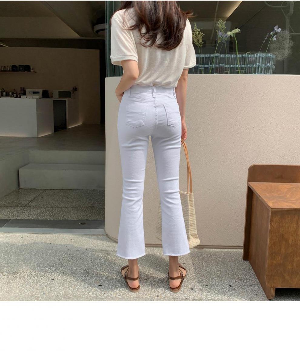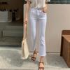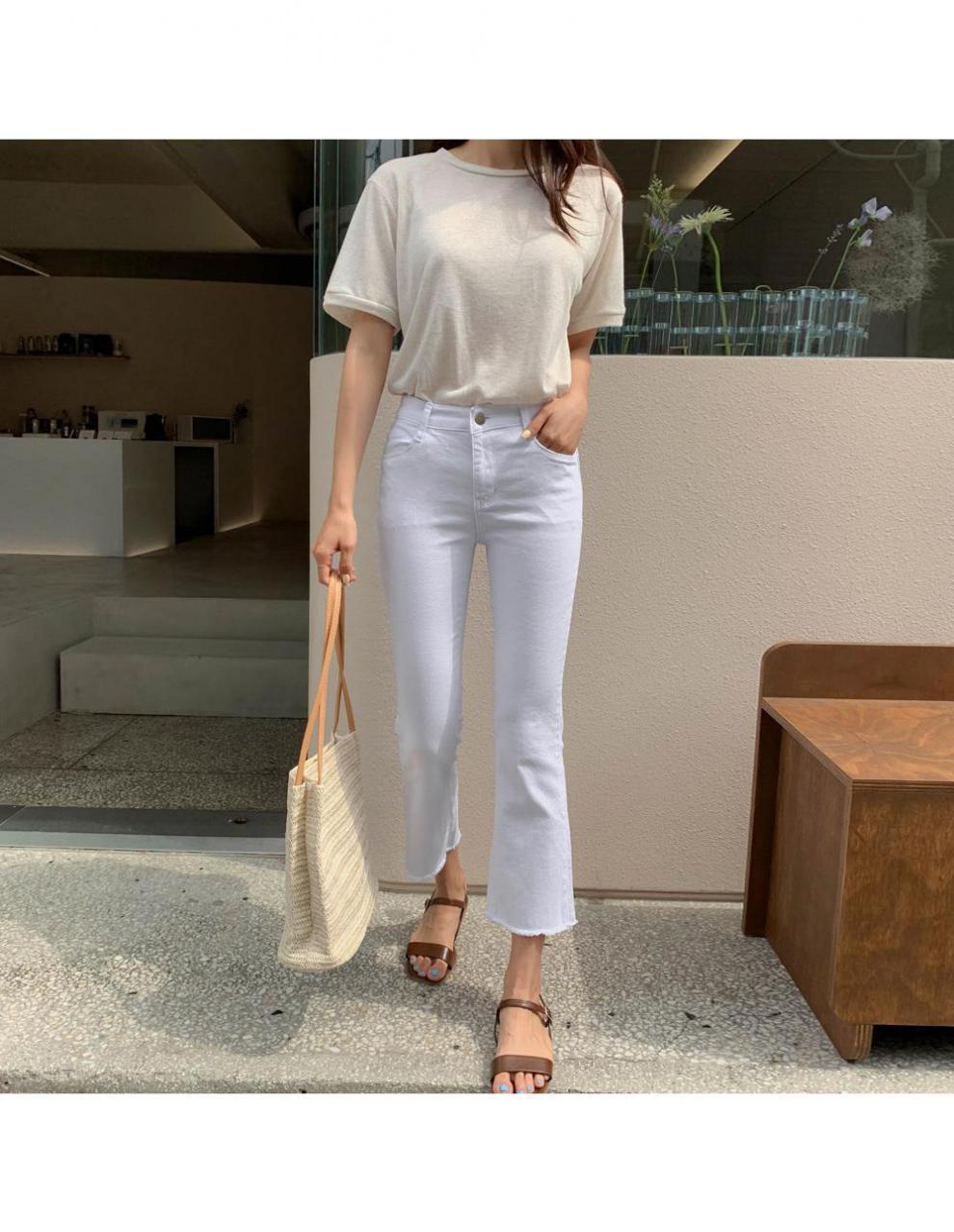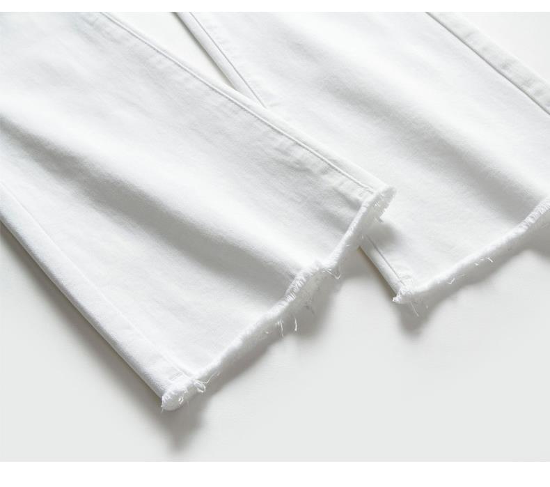 Pantalones vaqueros blancos Micro-Lam para mujer, verano 2024, informales, de cintura alta, adelgazantes, holgados, elásticos, recortados y acampanados para niños