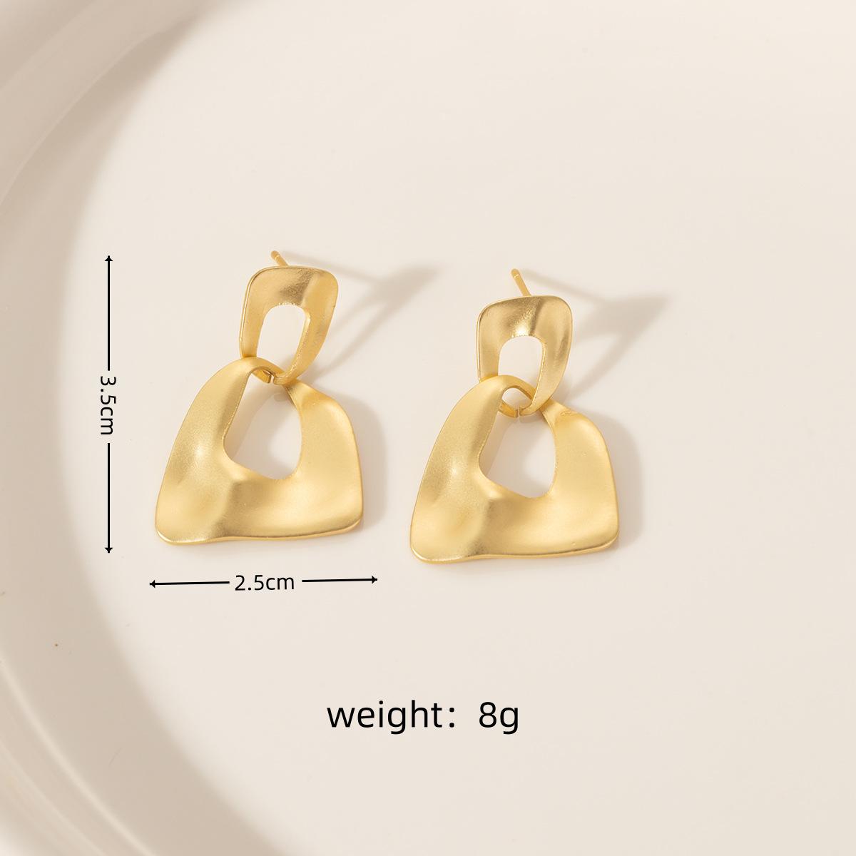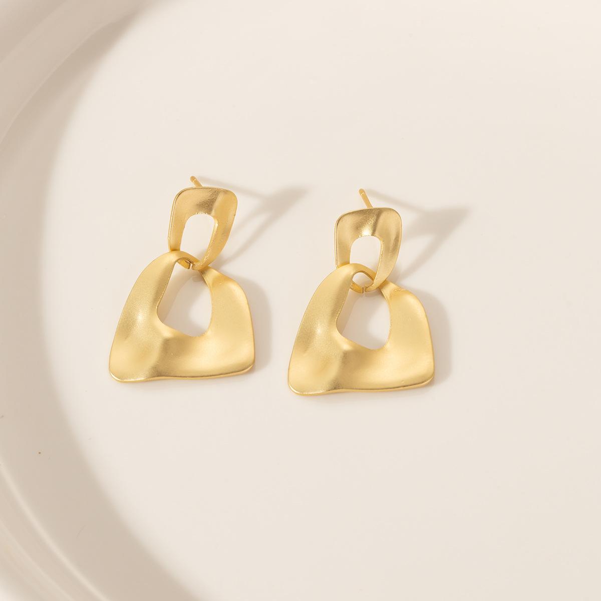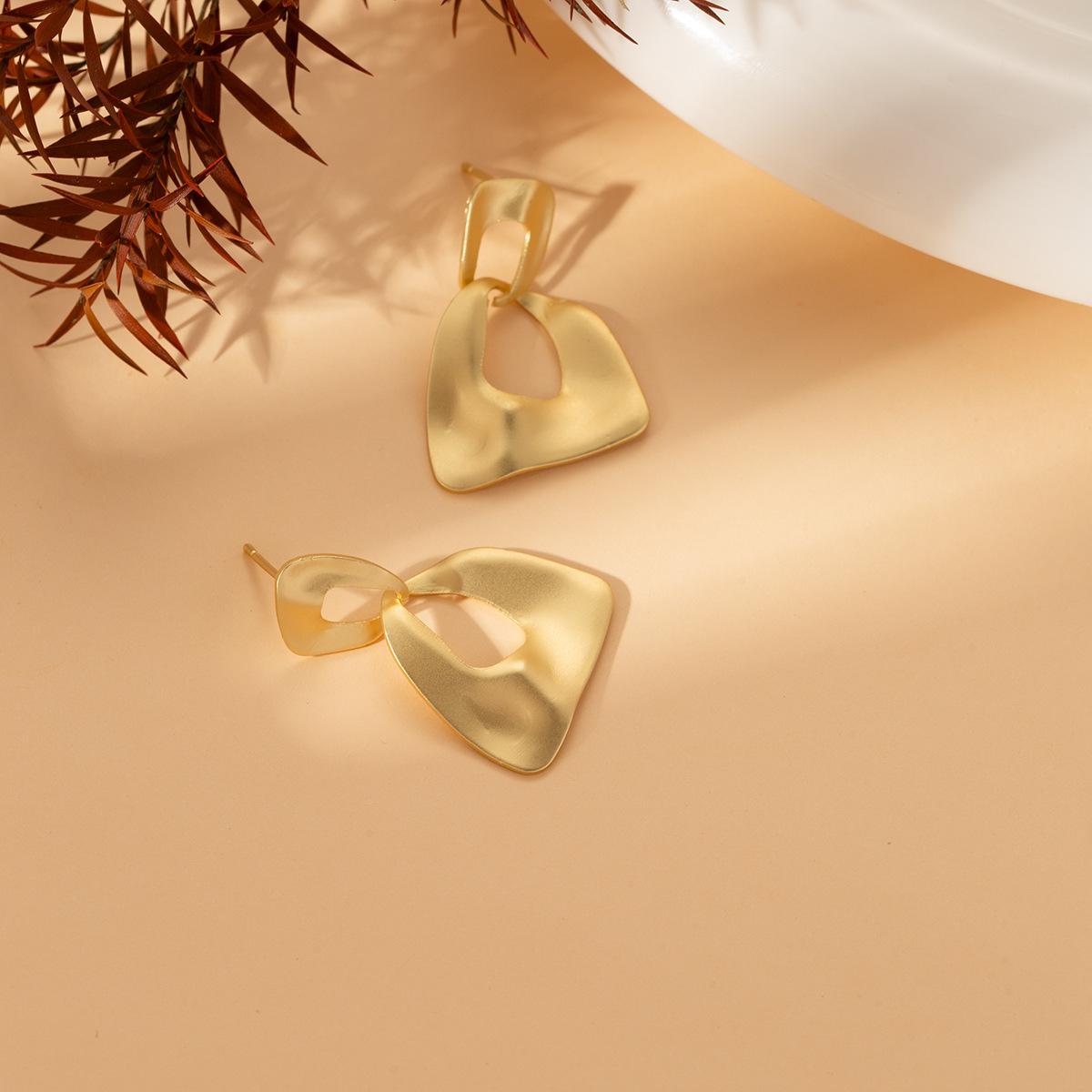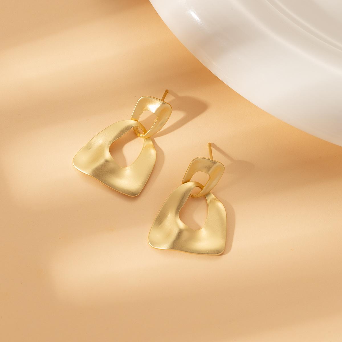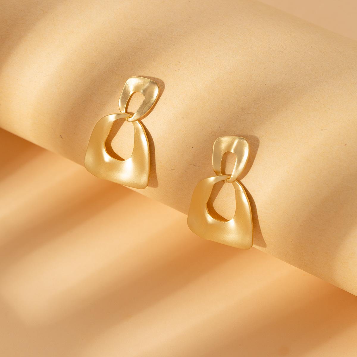 Compra Pendientes geométricos de metal transfronterizos europeos y americanos, pendientes dorados sencillos de moda para mujer, pendientes mate personalizados con temperamento de alto sentido al por mayor en Joom.pro