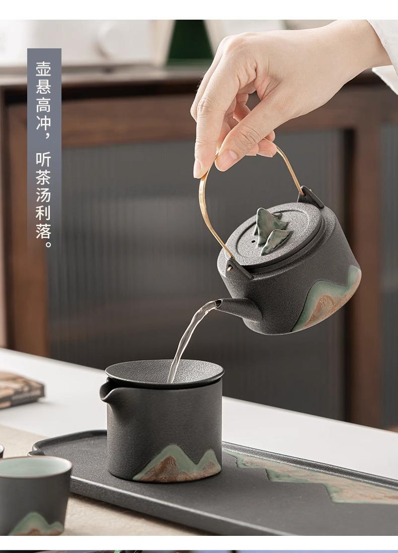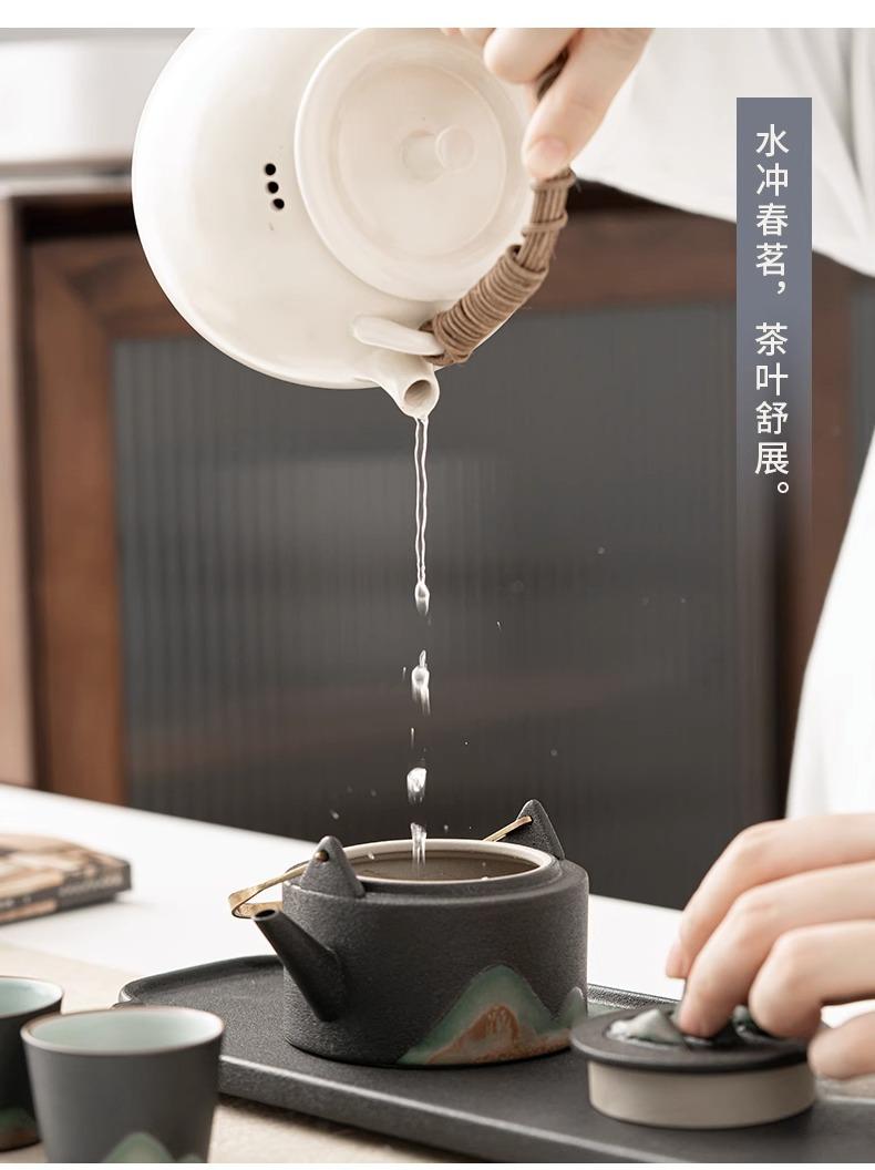 Tetera Kung Fu Taza de Té Tetera con Cola Filtro Cerámica Estilo Japonés Tetera Hogareña Separación Agua Té Una Sola Tetera Una Sola Taza Vintage