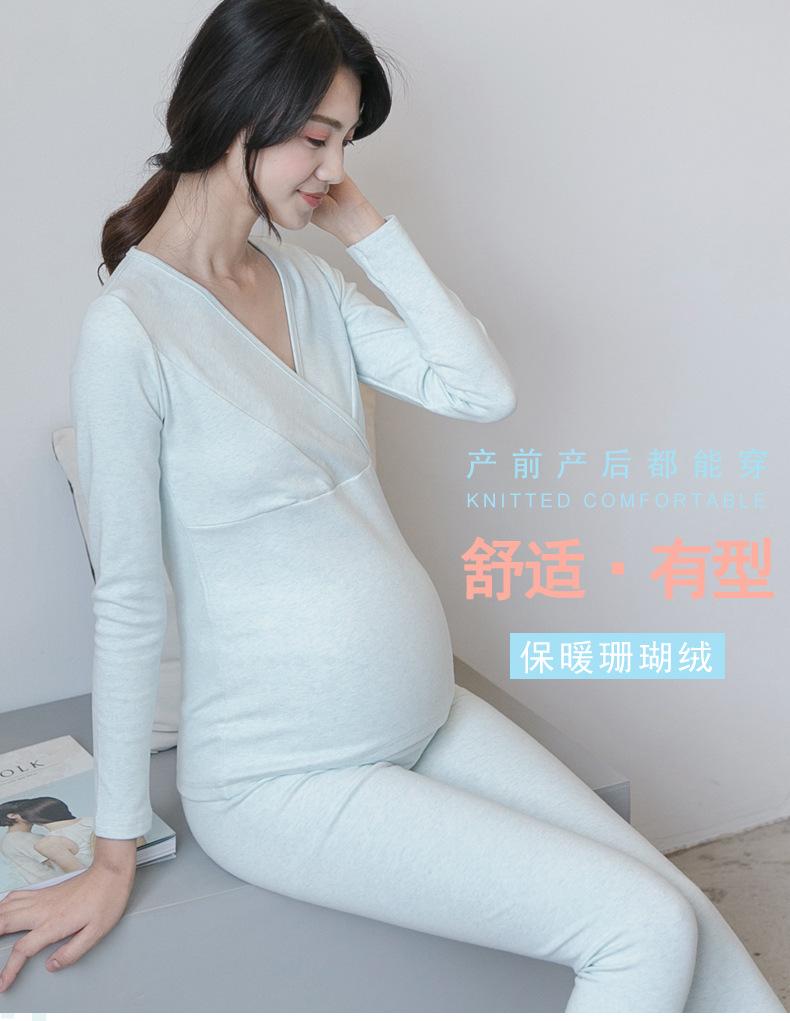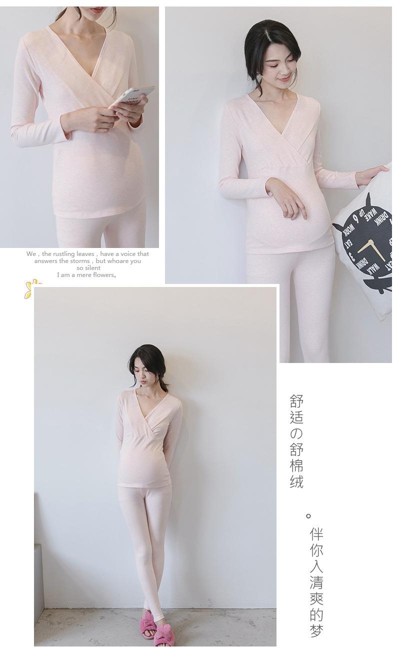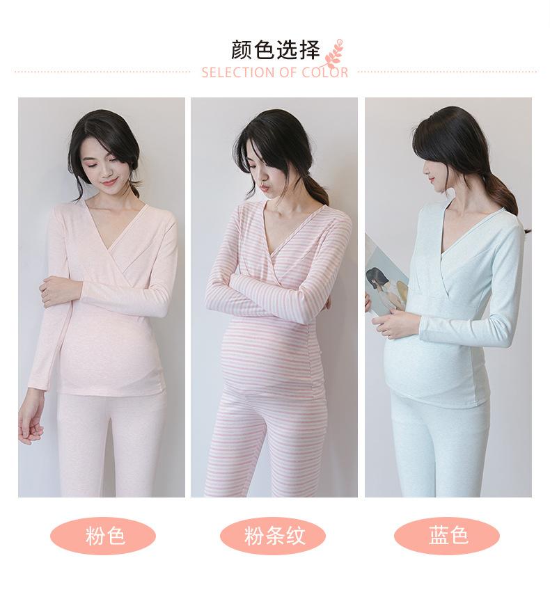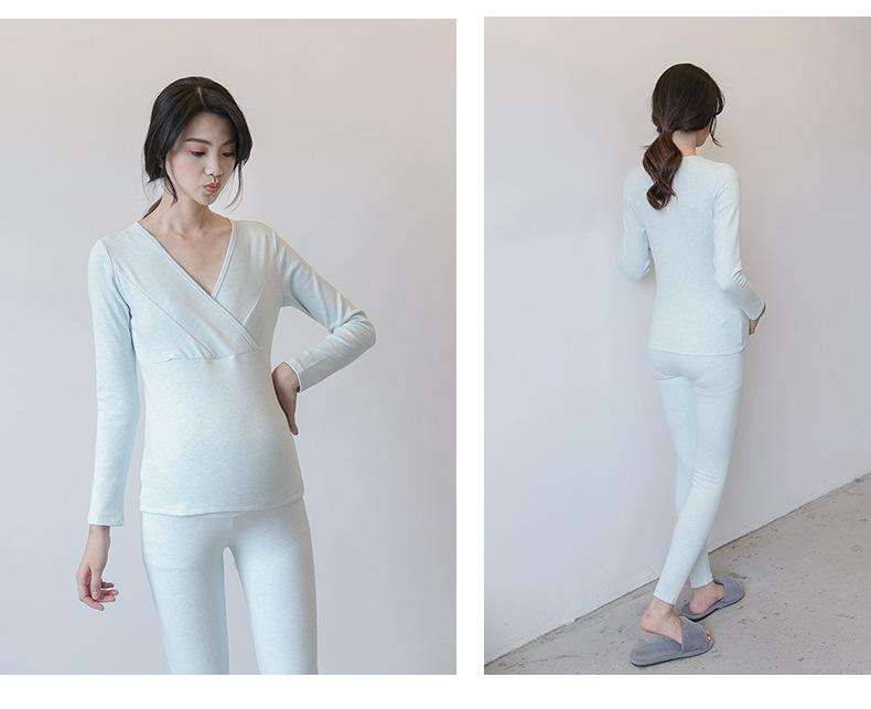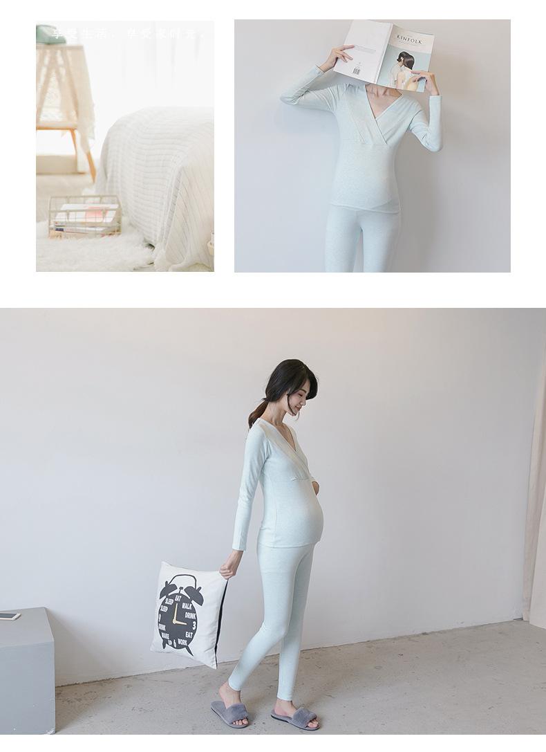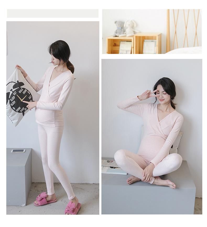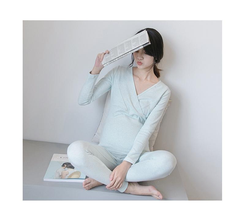 Ropa de Otoño para Maternidad Súper Suave y Set de Pantalones de Otoño Primavera y Otoño Ropa Interior Térmica Pijama de Lactancia Postparto Ropa para el Confinamiento del Embarazo 01167