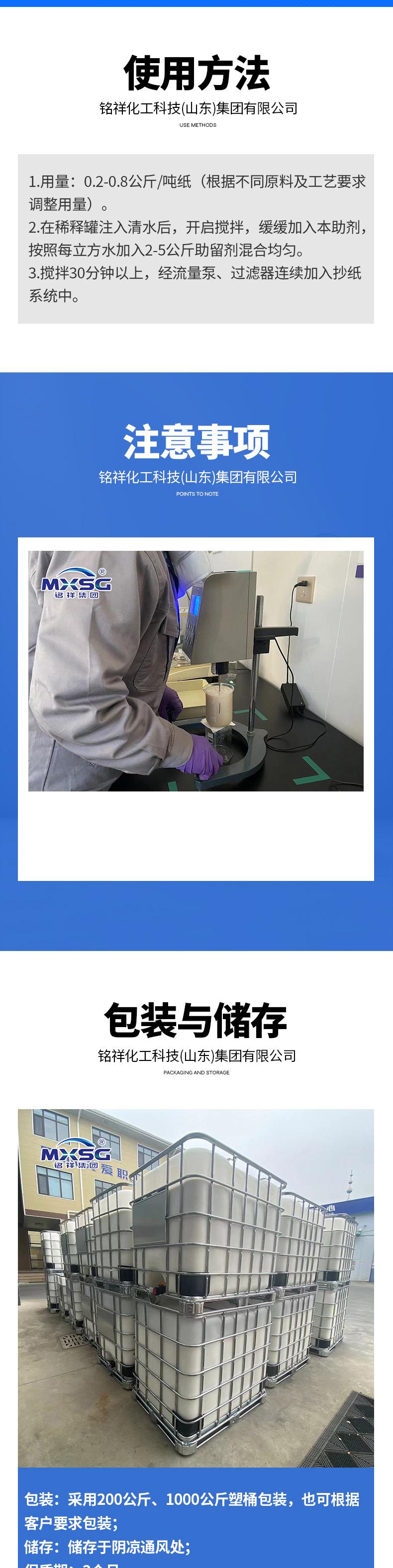 Auxiliar de retención Auxiliar de retención para la fabricación de papel Mingxiang Mejora la filtración de agua Aumenta la resistencia en húmedo Auxiliar de retención de emulsión