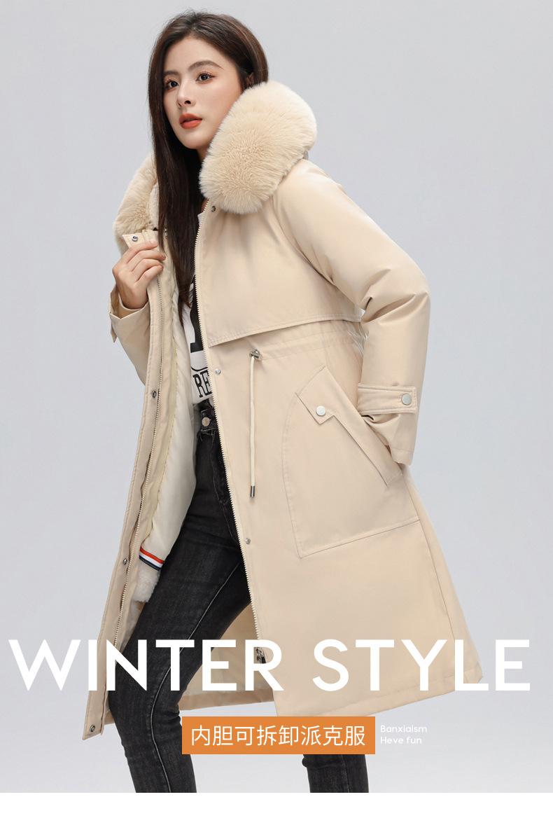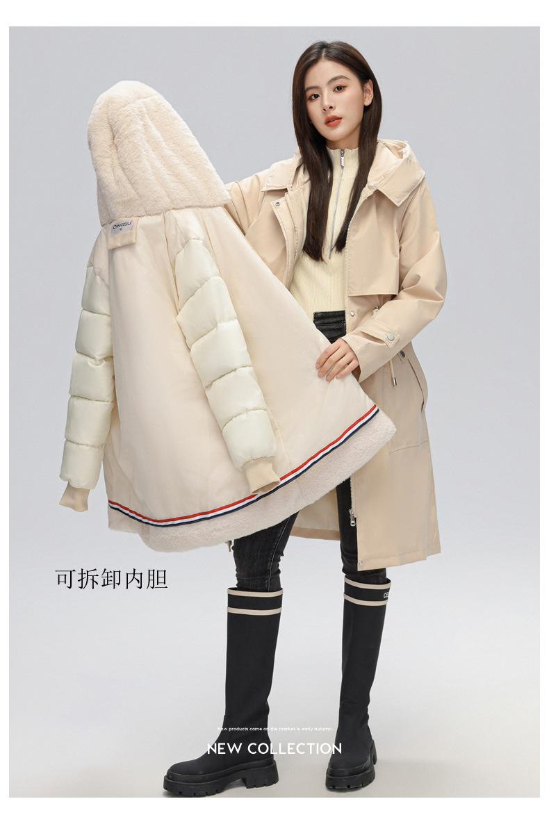 Chaqueta de Algodón Acolchada de Largo Medio para Mujer 2024 Nueva Chaqueta Acolchada de Algodón de Invierno Fuera de Temporada Parka Holgada Desmontable Chaqueta Cálida