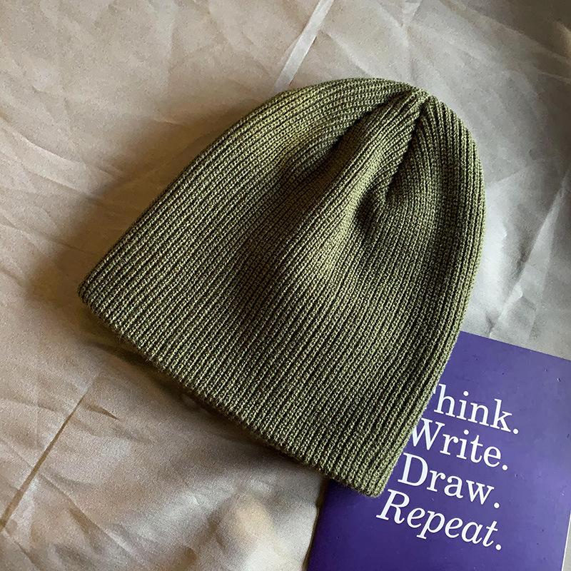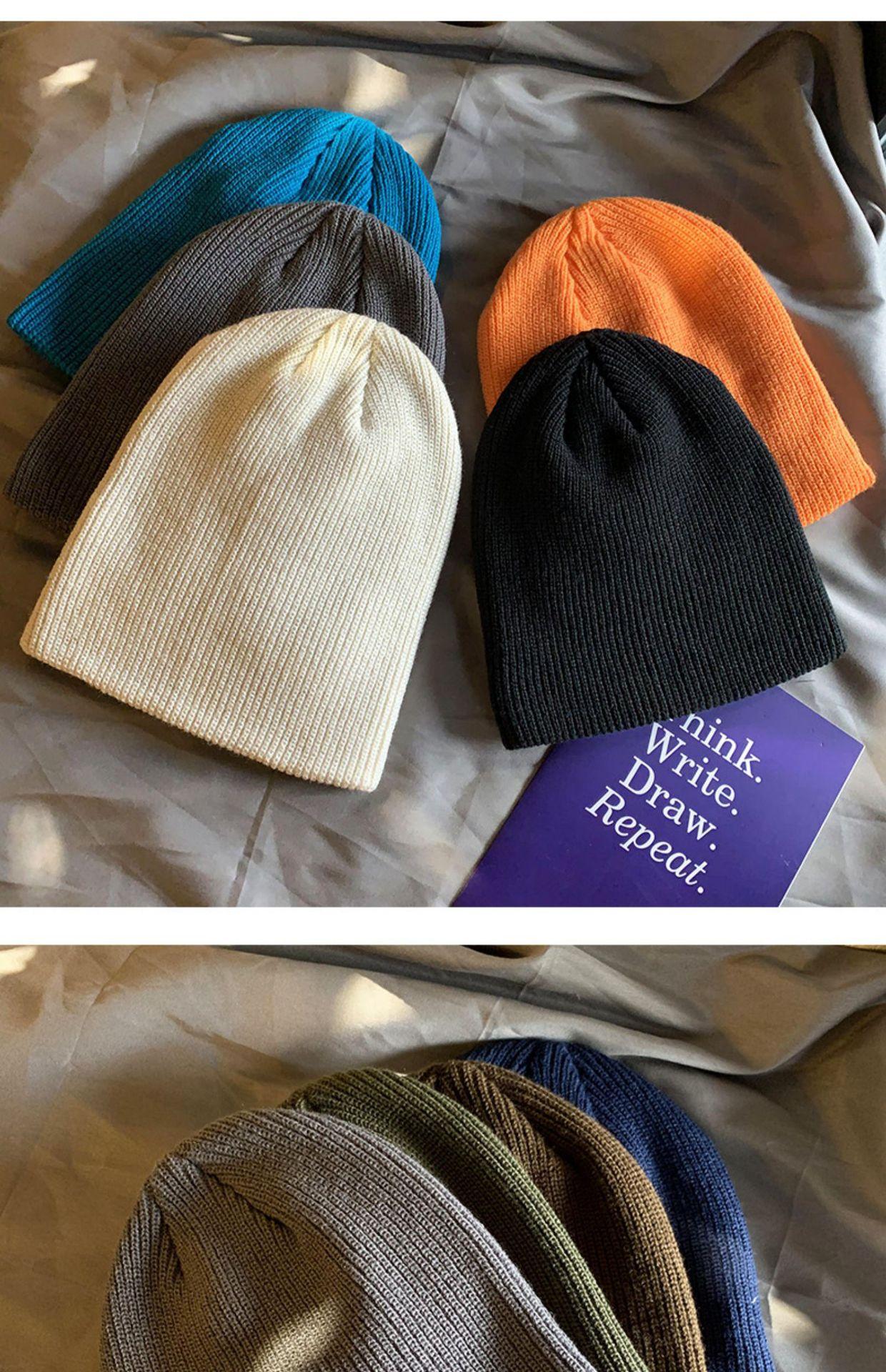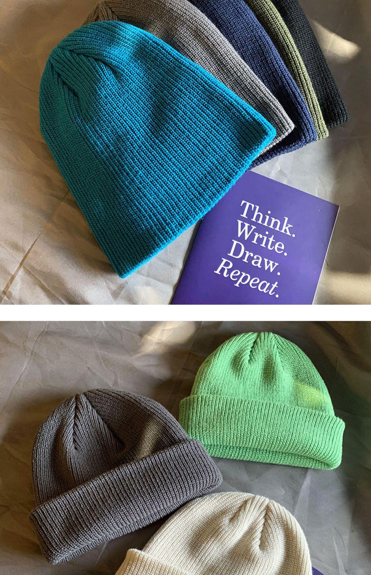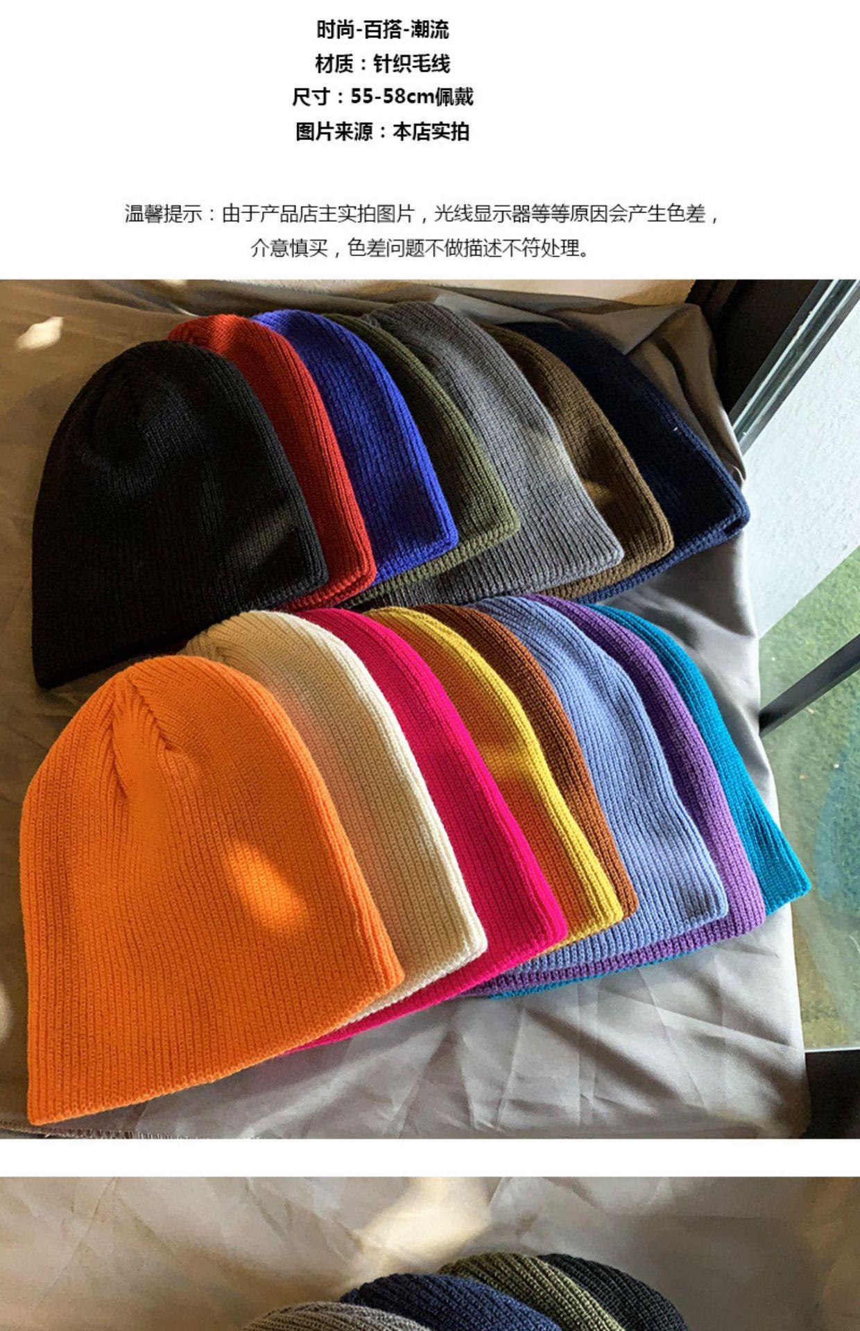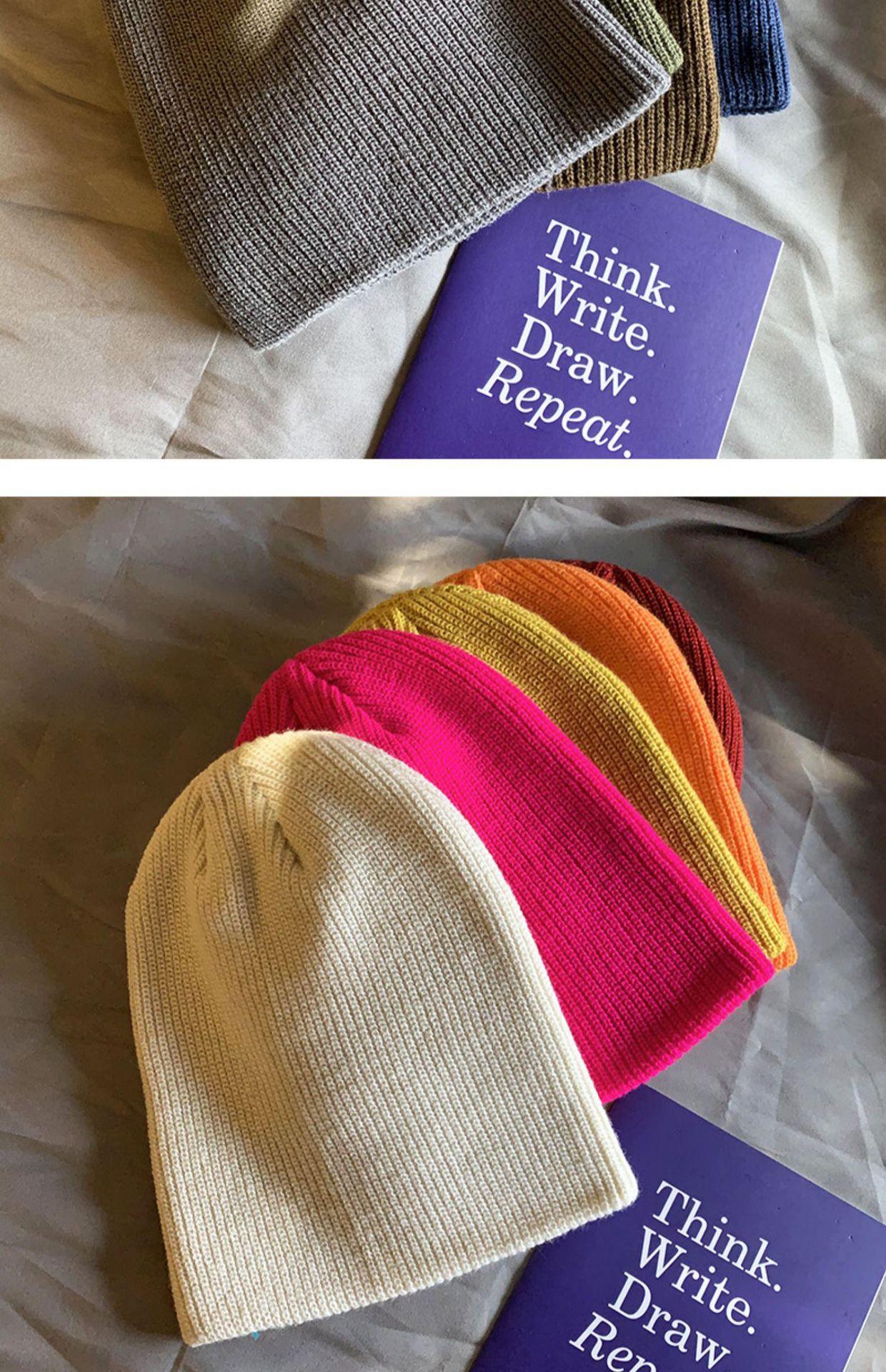 Gorro frío de lana gruesa y cálida de moda retro de color puro para otoño e invierno, moderno para hombres y mujeres, versátil y popular para parejas de punto de calle.