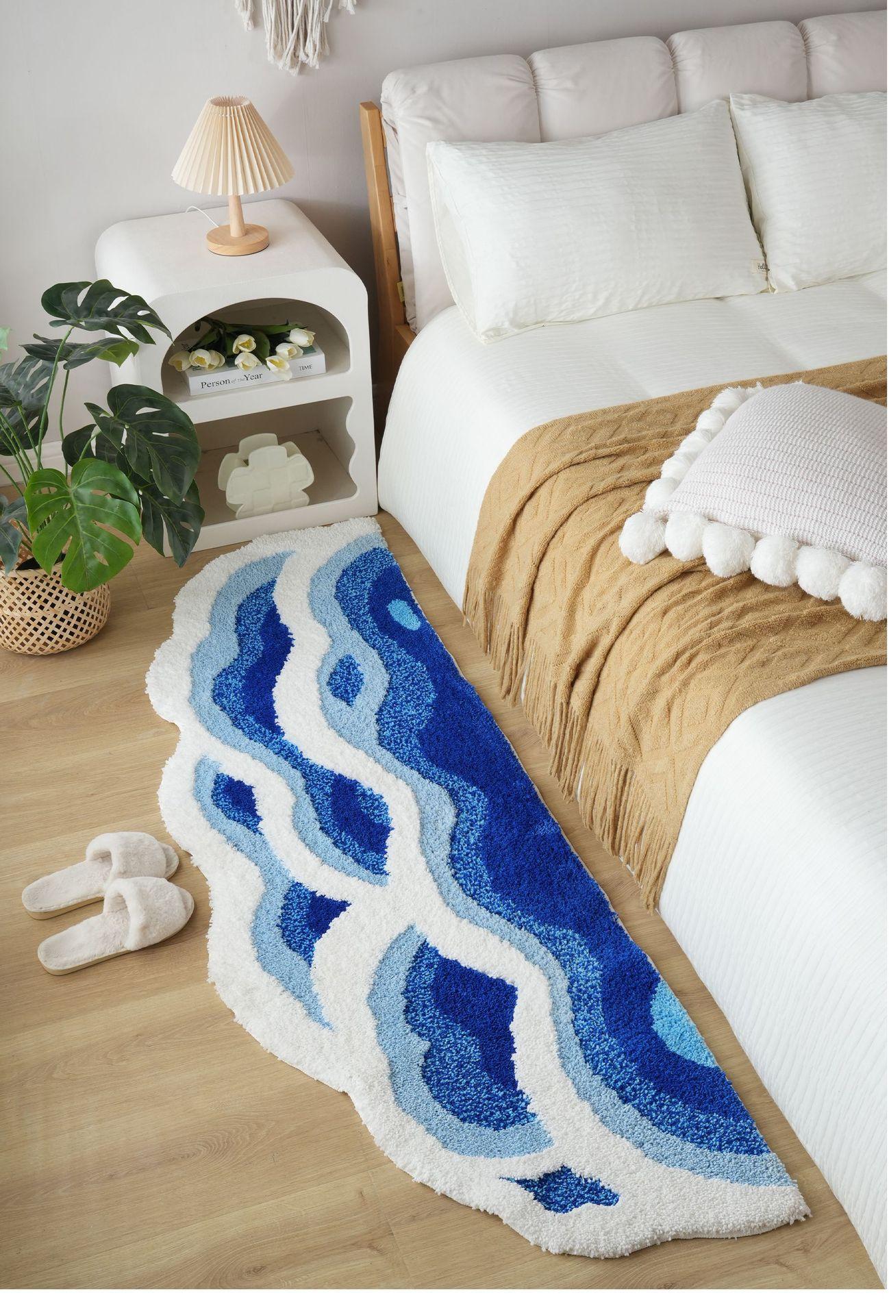 Alfombra transfronteriza para dormitorio, manta de noche con ondas en forma de hogar, alfombra flocada para sala de estar, sofá, mesa de centro, manta al por mayor