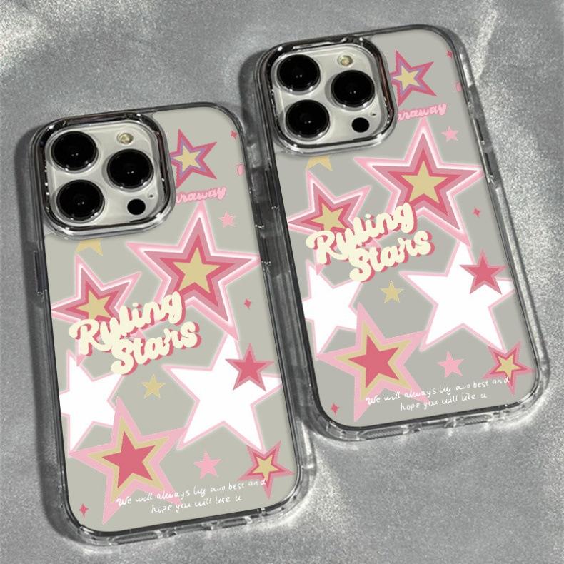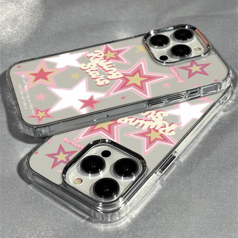 Marco de Fotos Metálico Transparente Dulce Cool Estrella Funda para Teléfono 15Pro Adecuada para Apple 14Promax Lindo Iphone13
