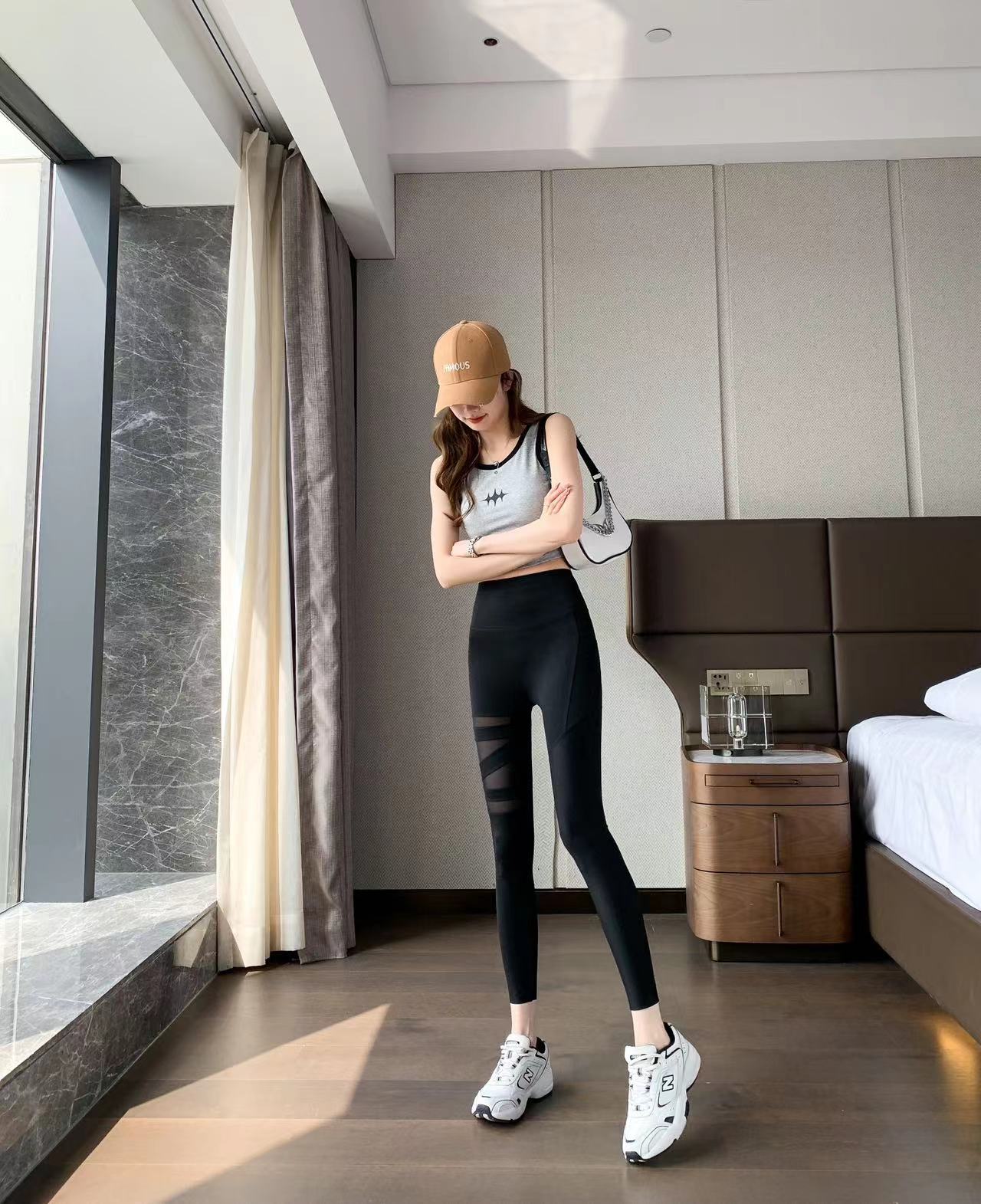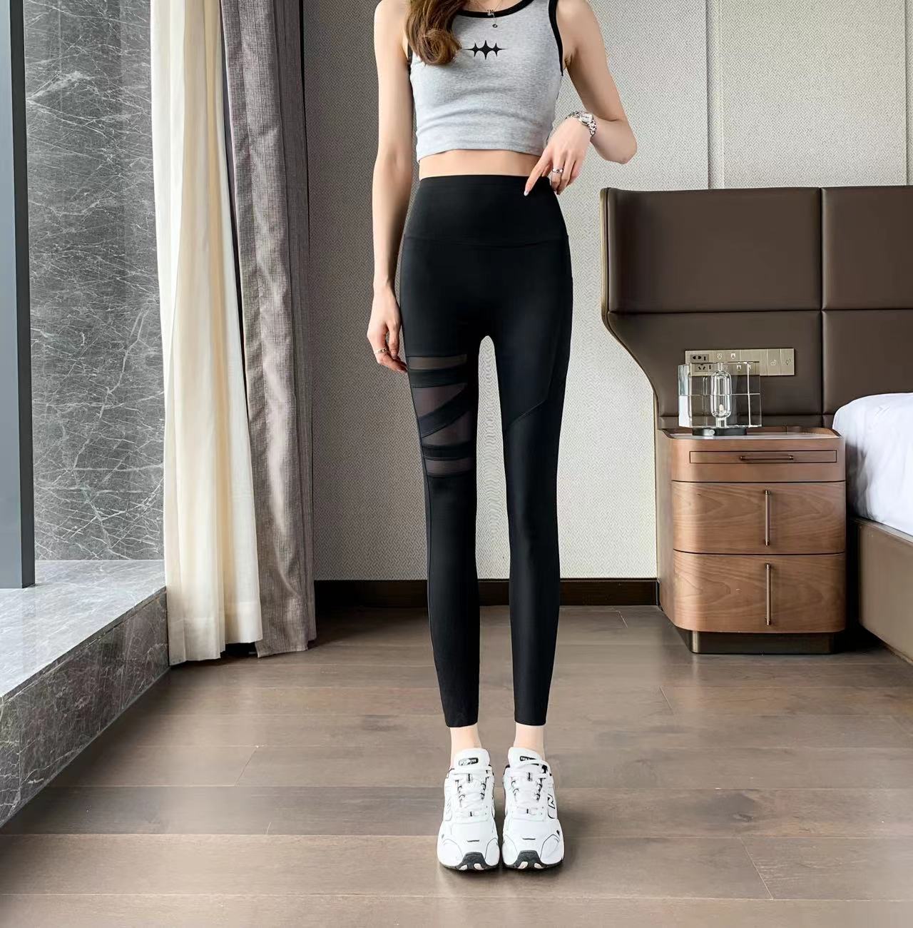 Pantalones de yoga negros sexys y transpirables con bolsillo, de malla, deportivos, informales, ajustados, de cintura alta, para levantar la cadera, leggings de fitness para mujer