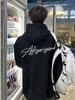 Sudadera con capucha estilo urbano de otoño e invierno con logotipo de letras bordado con efecto de pintura salpicada goteando, suéter negro con capucha a la moda