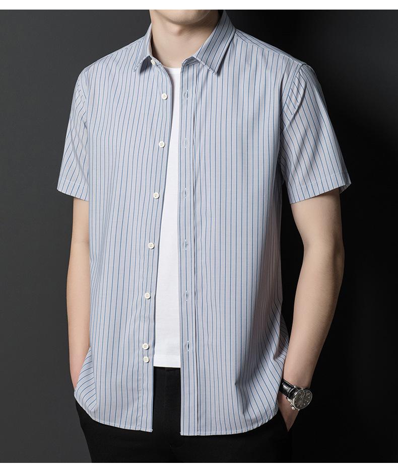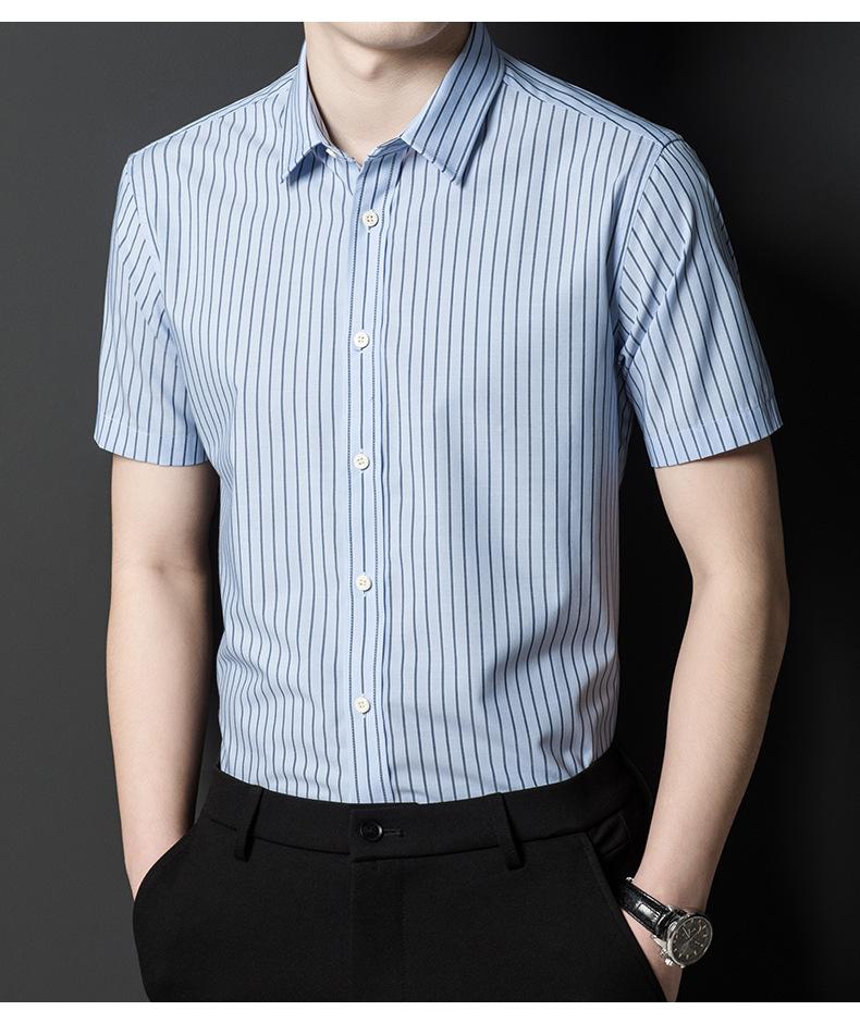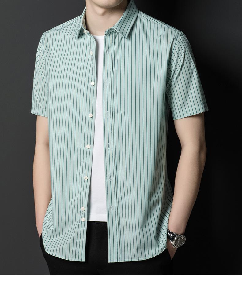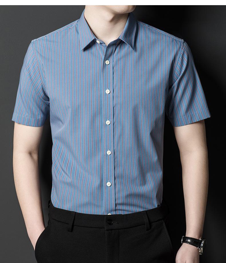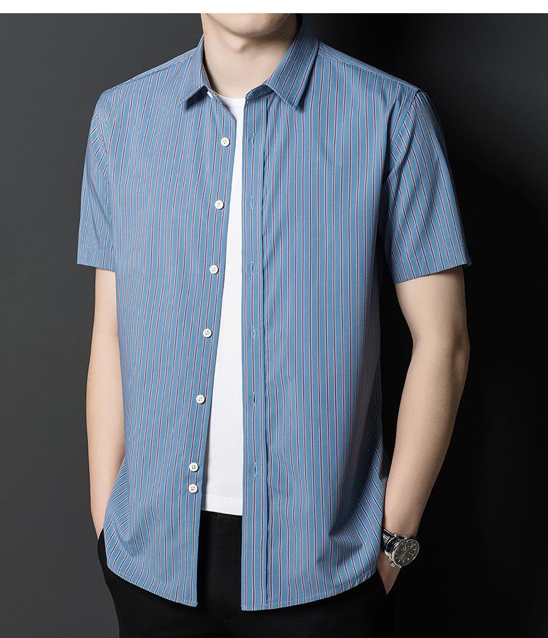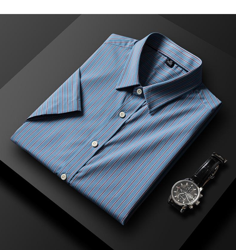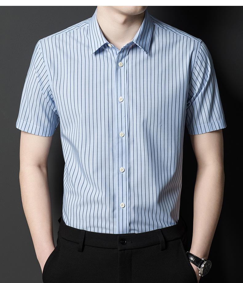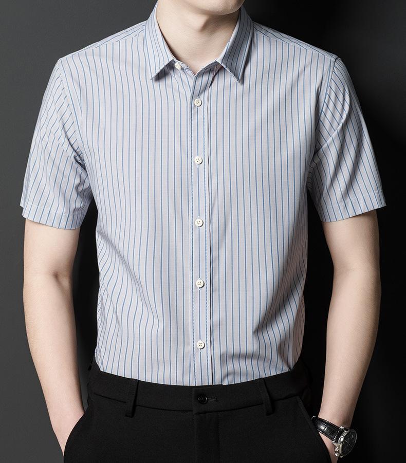Camisa informal a rayas de manga corta de verano para hombre, camisa informal de negocios de media manga, fina, sin planchado, para papá