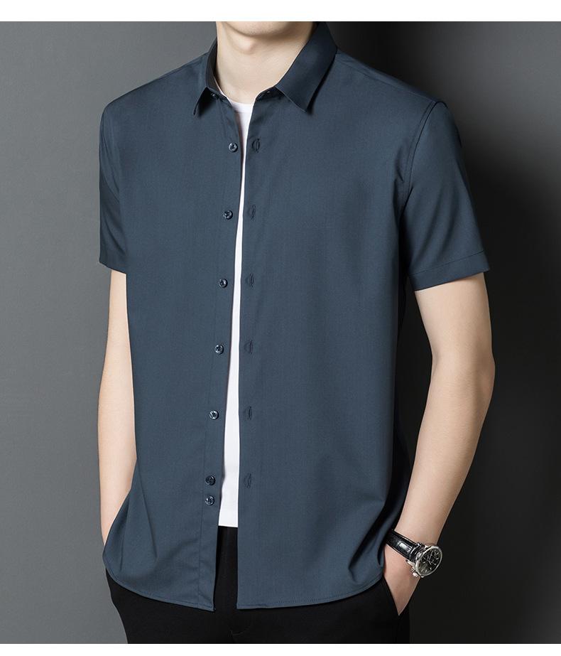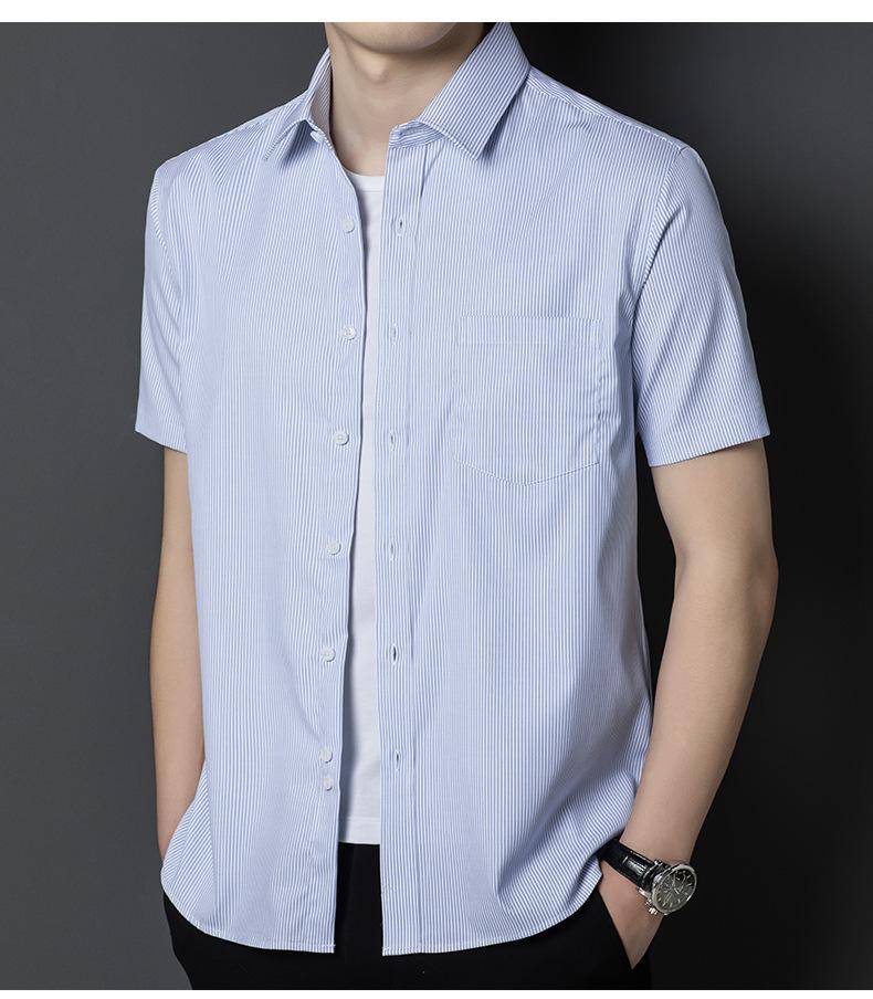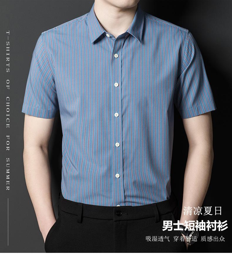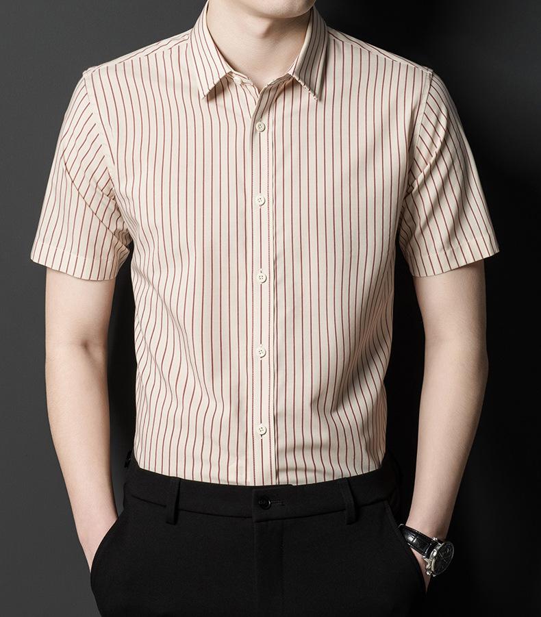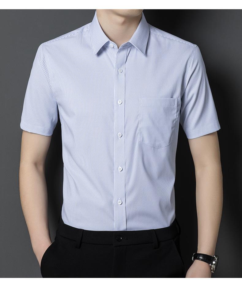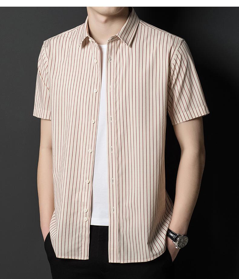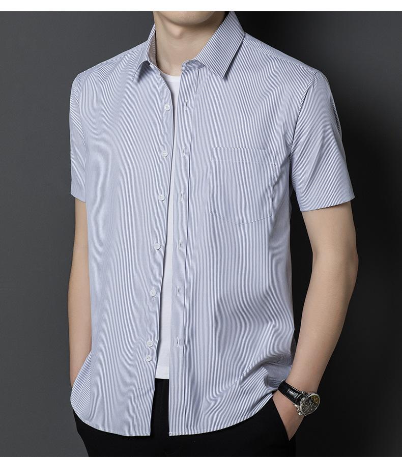 Camisa informal a rayas de manga corta de verano para hombre, camisa informal de negocios de media manga, fina, sin planchado, para papá