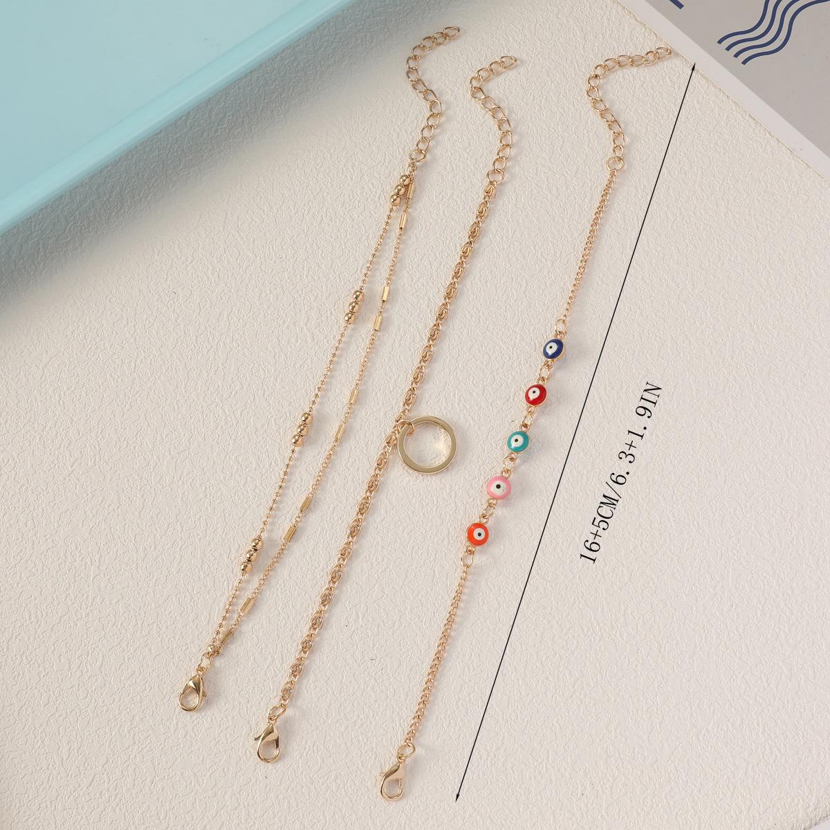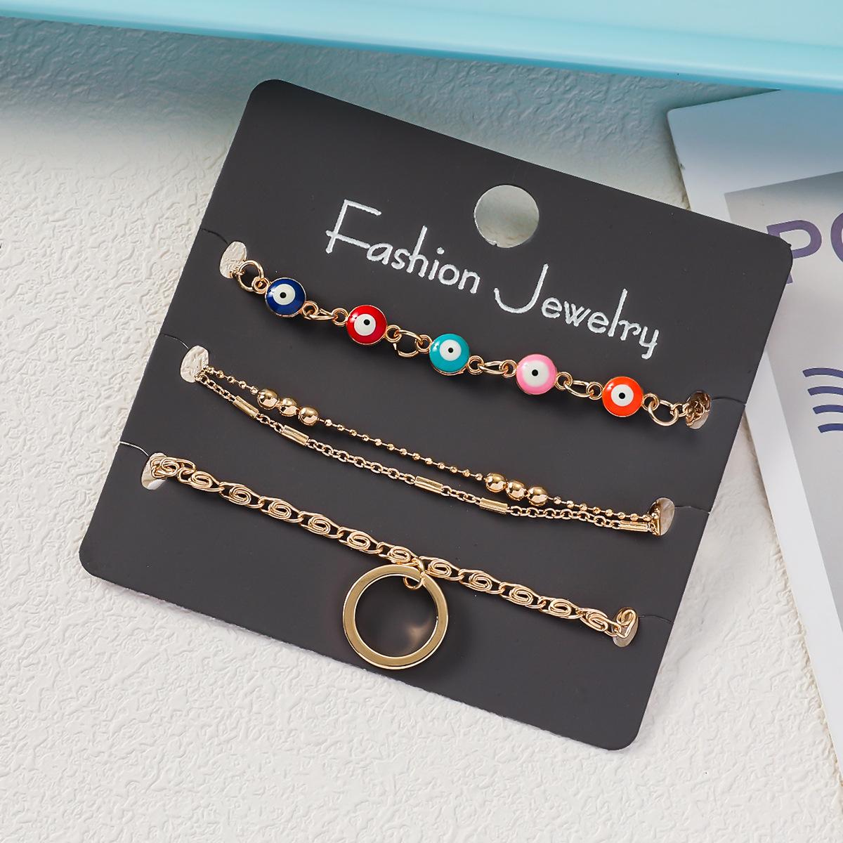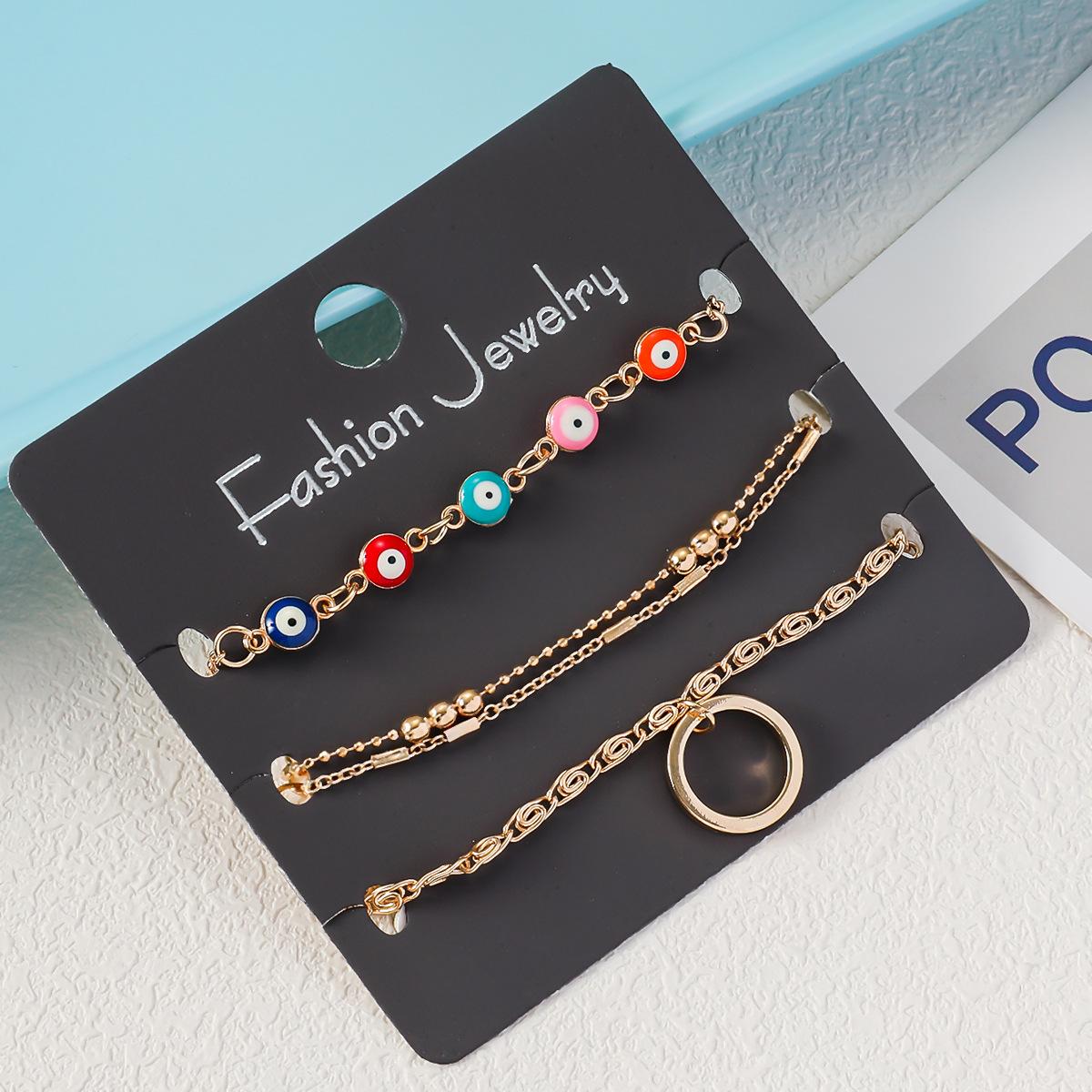 Pulsera de tres piezas para mujer, de aleación de ojo de diablo, con anillo de cobre y colgante, cadena de tres bolas grandes, regalo gratis