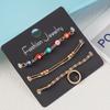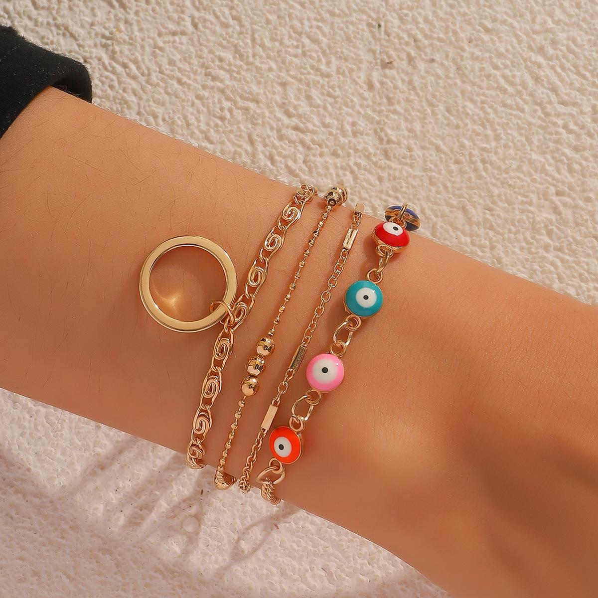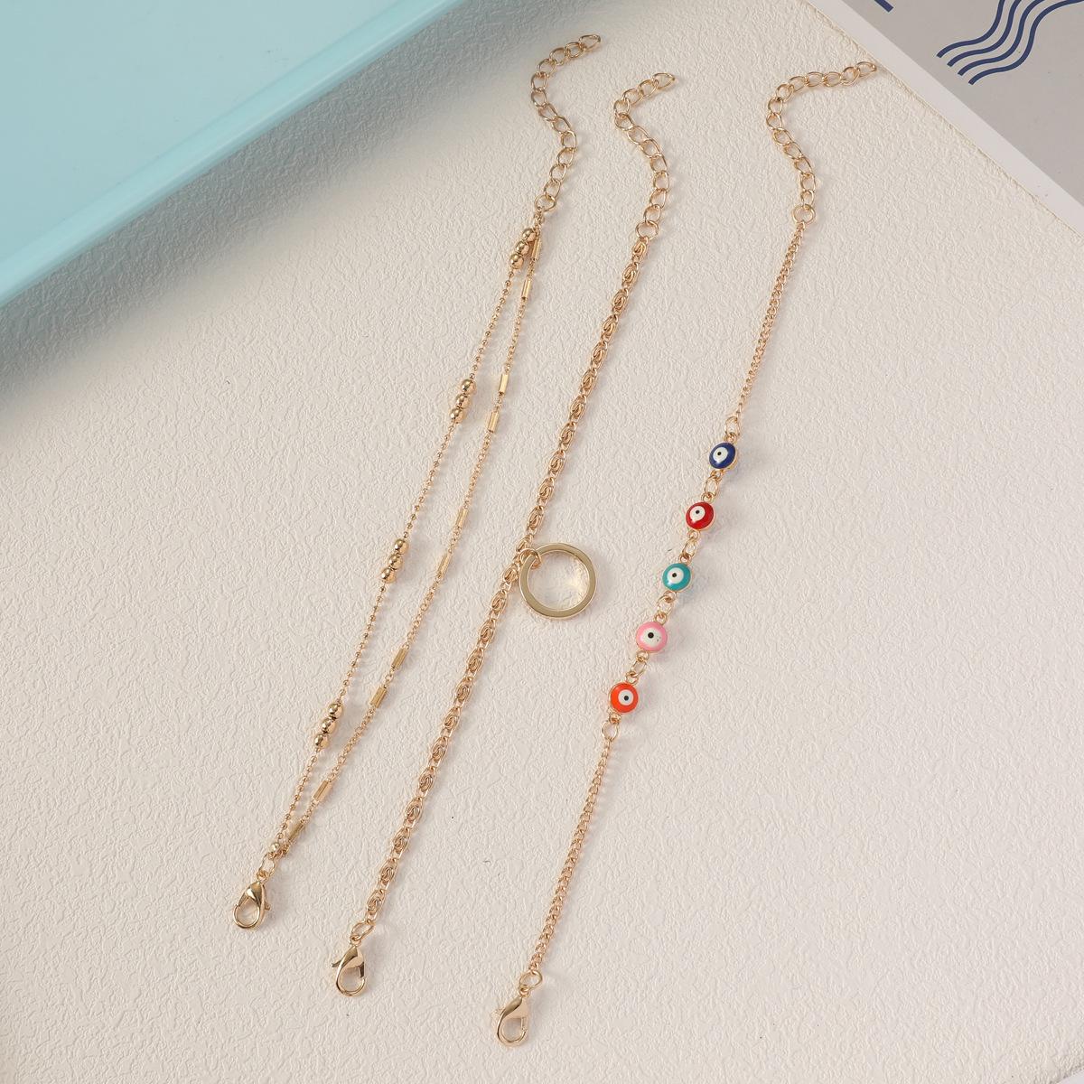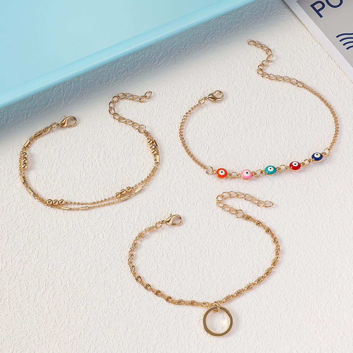 Pulsera de tres piezas para mujer, de aleación de ojo de diablo, con anillo de cobre y colgante, cadena de tres bolas grandes, regalo gratis