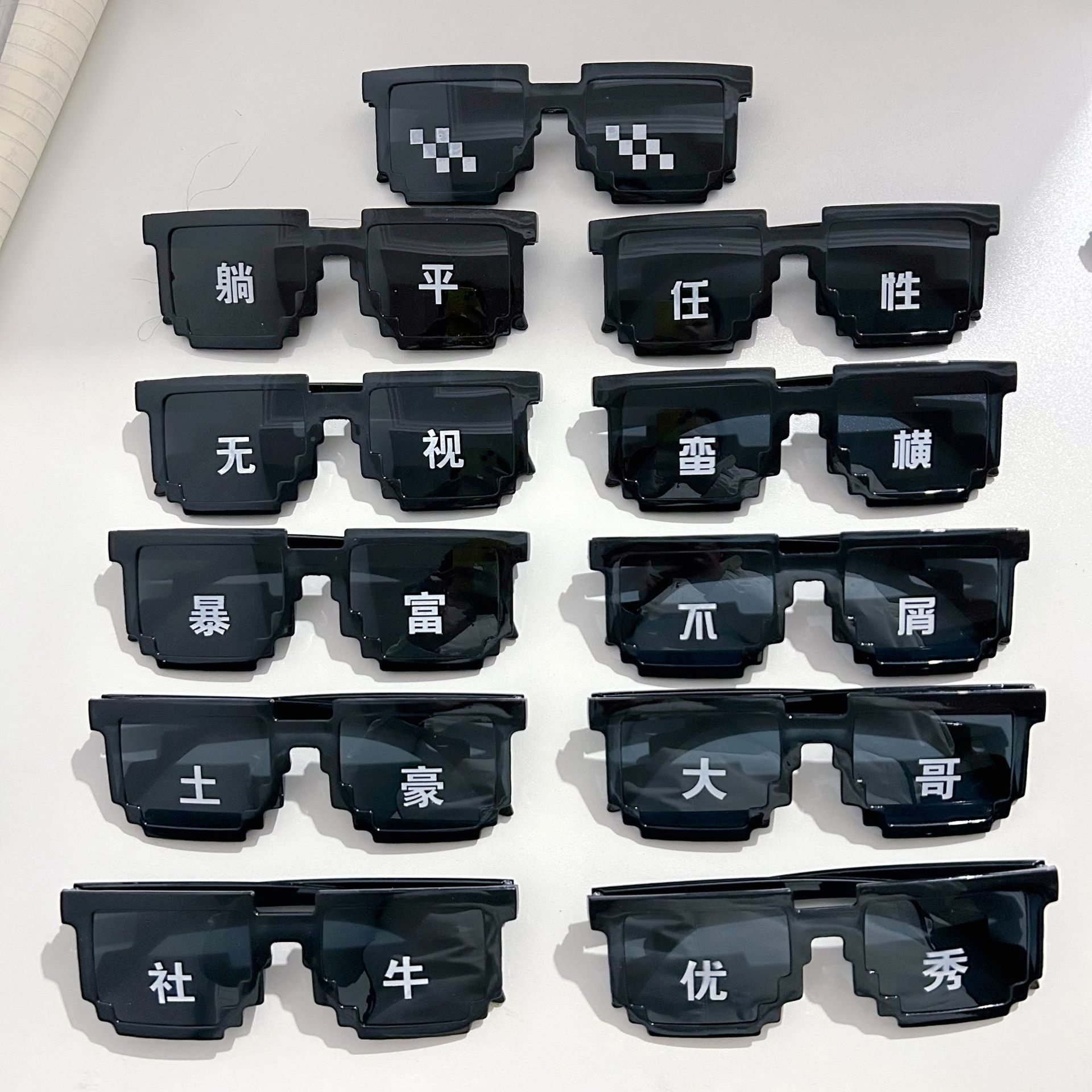Gafas de Sol Bidimensionales Peculiares, Gafas Divertidas de Mosaico, Gafas de Sol Oversized de Moda para Celebridades de Internet TikTok con Monturas Grandes