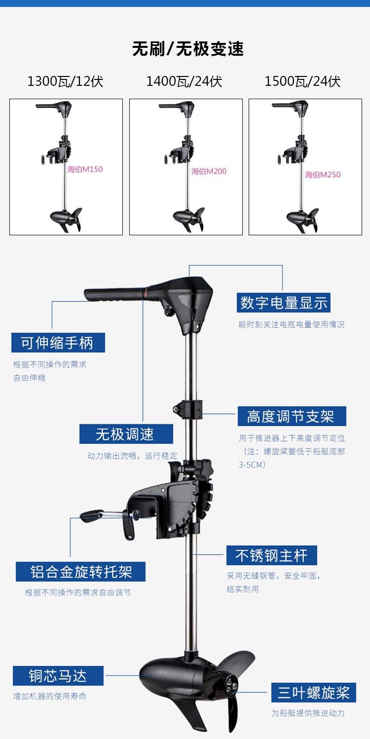 Motor fuera de borda hélice eléctrica 12v continuamente variable 24v Motor fuera de borda Luya hélice para bote de asalto motor sin escobillas