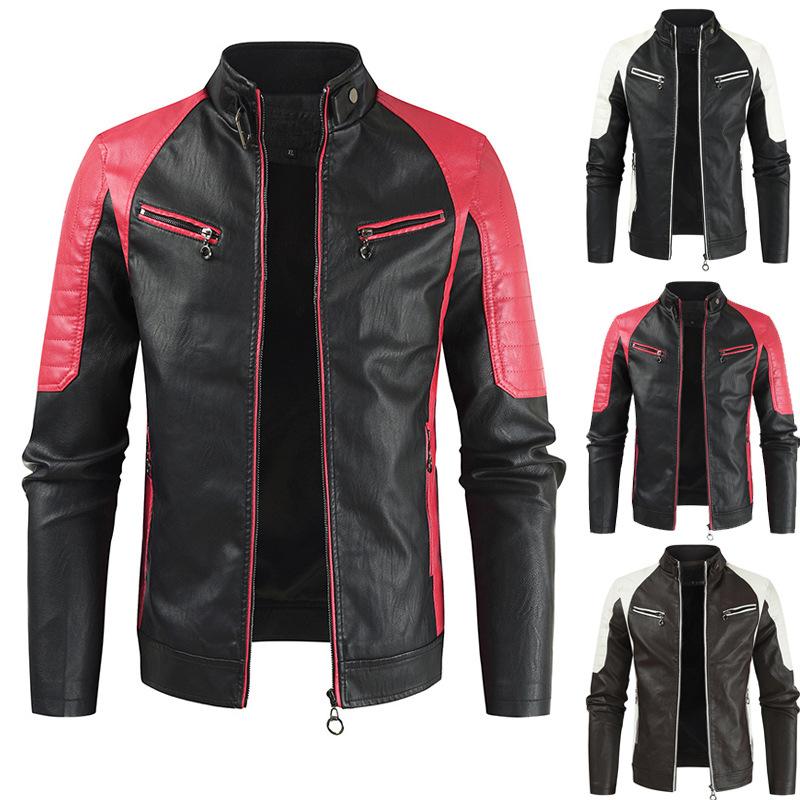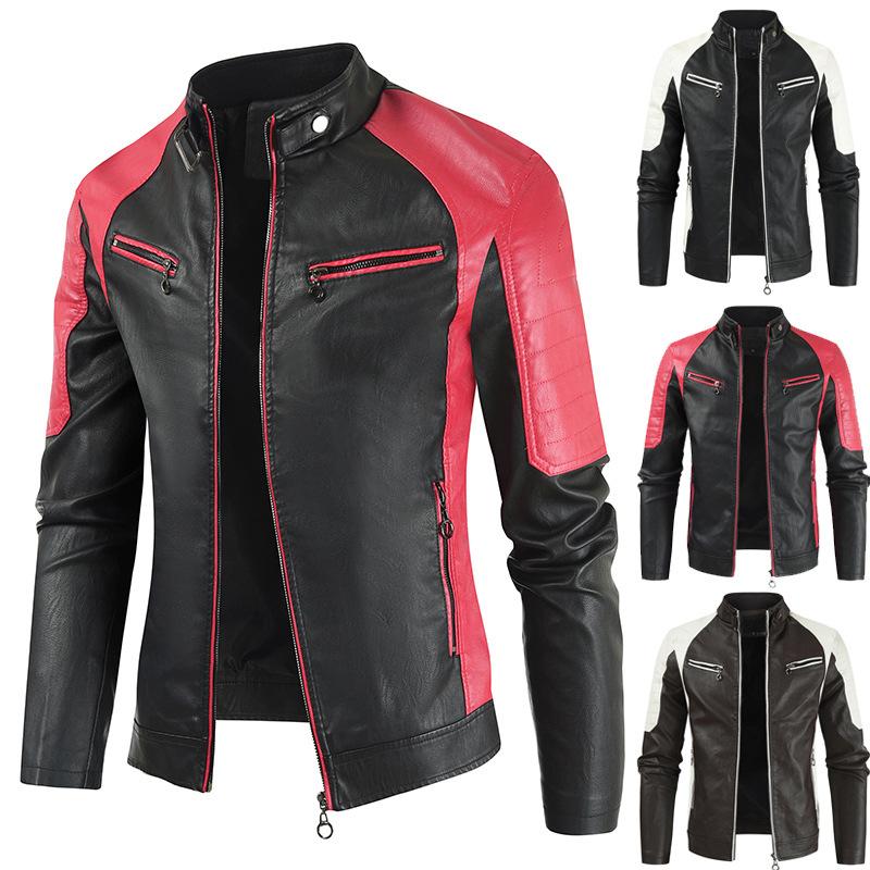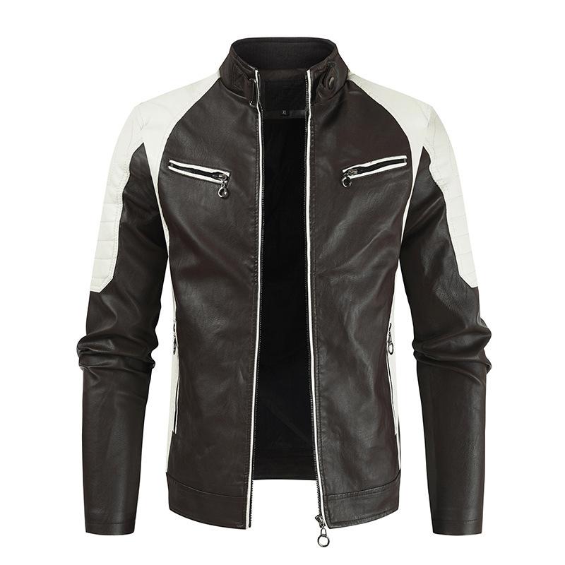 2023 comercio exterior primavera nuevo para hombre chaqueta de cuero PU con cuello alto, cremallera, casual, top de cuero