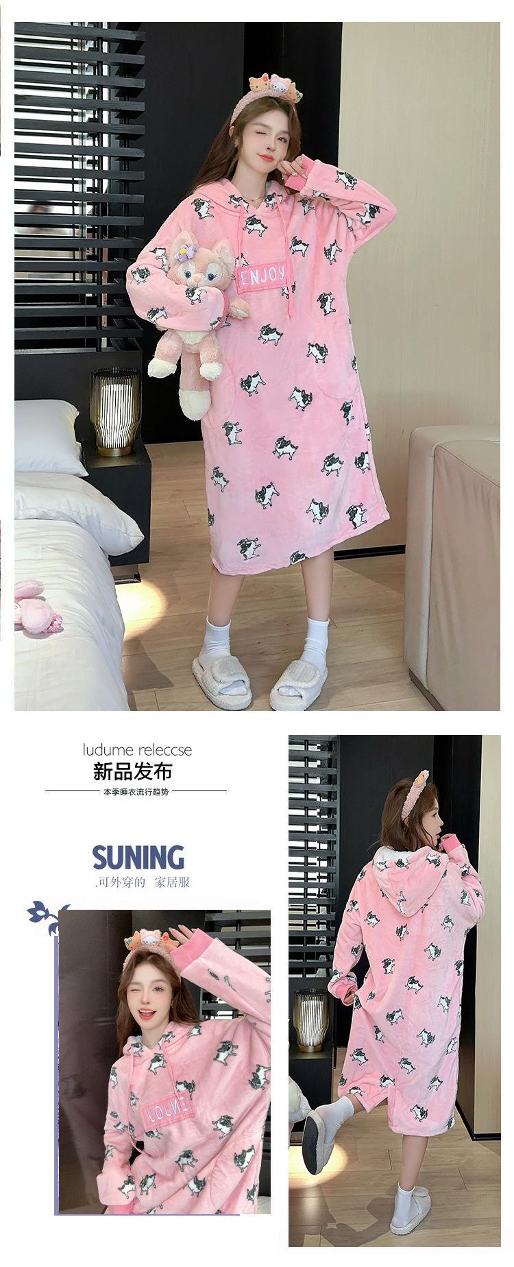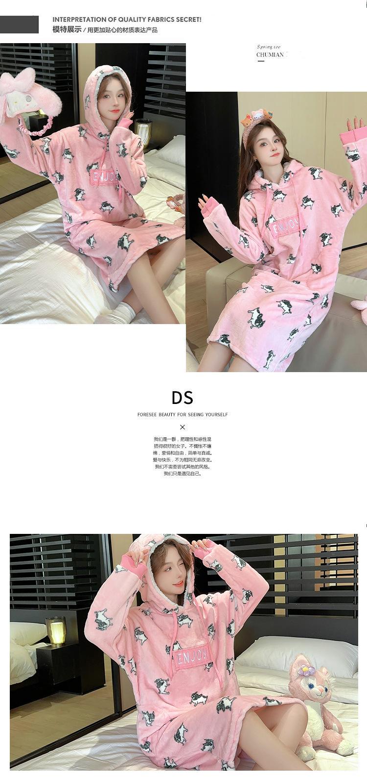 Compra Camisón de franela de otoño e invierno para mujer, lindo de dibujos animados con capucha, manga larga, grueso, de forro polar coral, ropa exterior cálida para el hogar al por mayor en Joom.pro