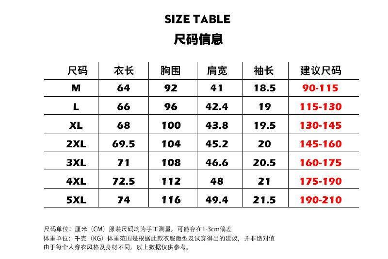 M, L, XL, 2XL, 3XL, 4XL, 5XL